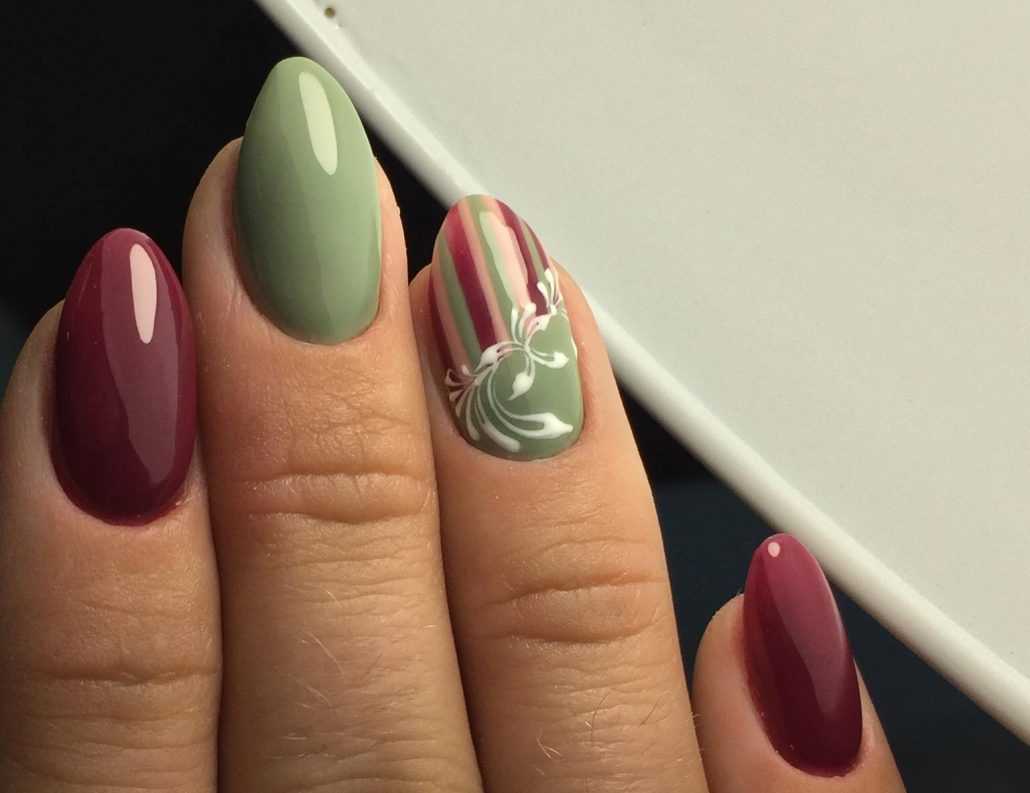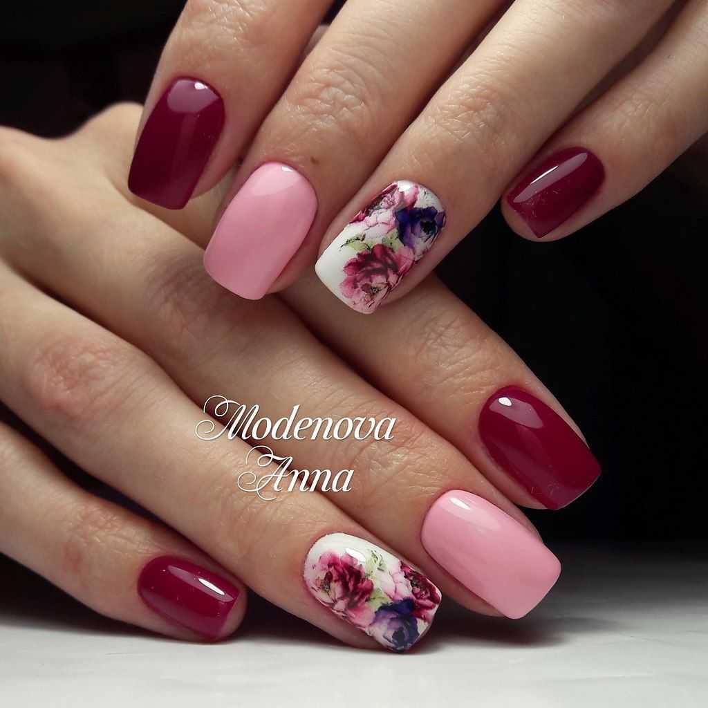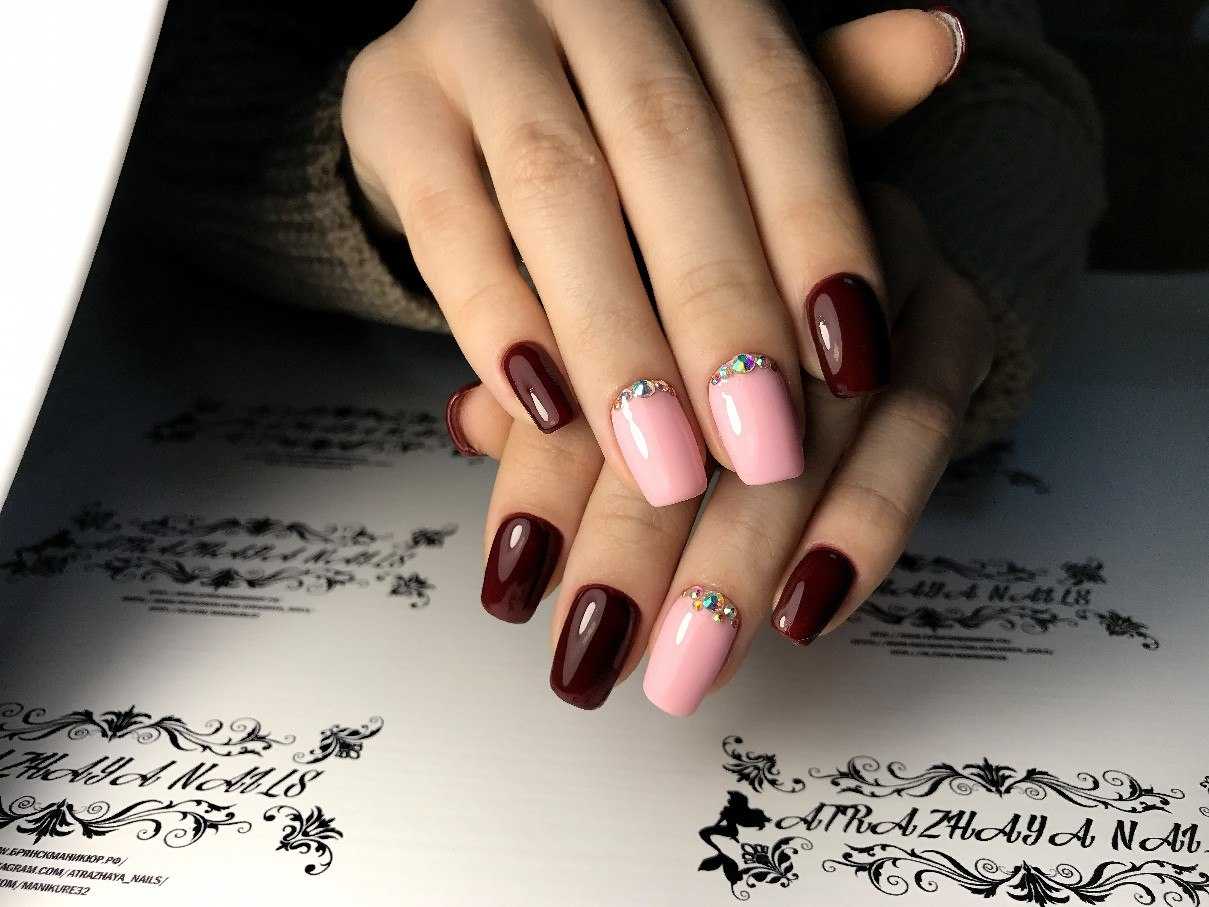 Тем, кто хочет себе более светлый маникюр, могут совместить бордовый с бежевым, розовым или любым другим из пастельной палитры.
