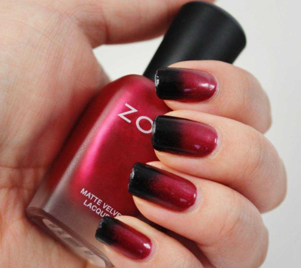 Добавляя черный к бордовому, можно получить красивый эффект омбре. Такой маникюр позволительно оставить и для повседневной носки.