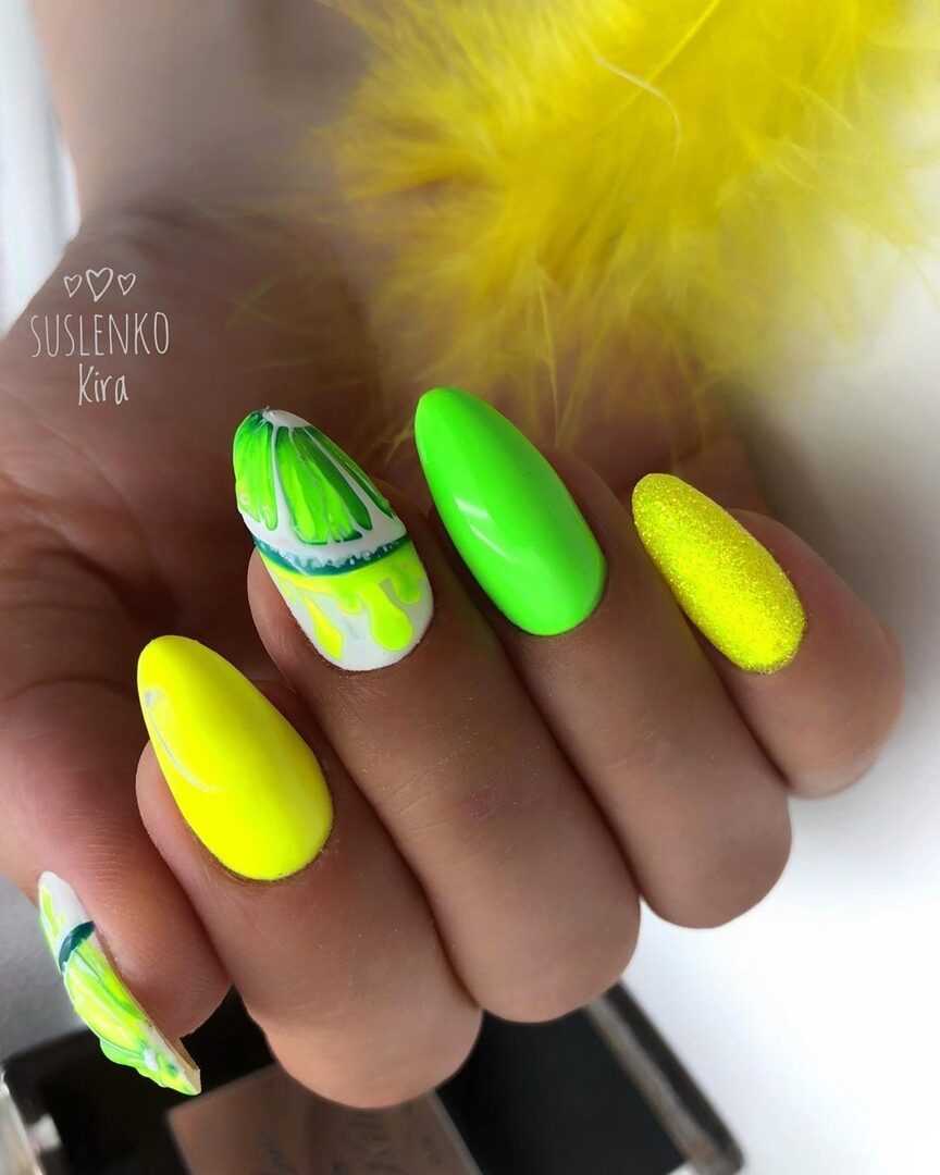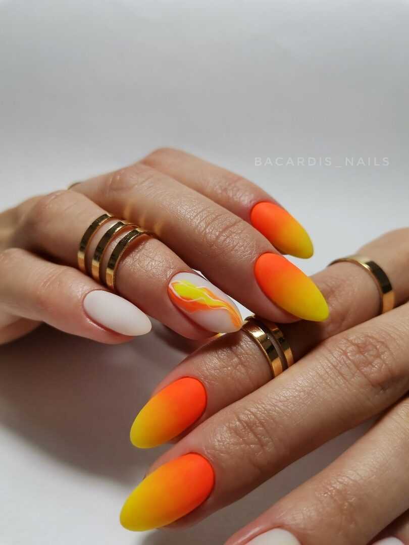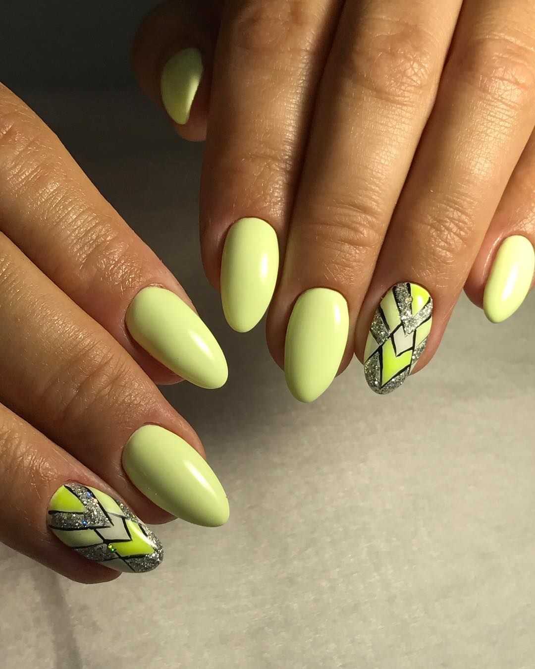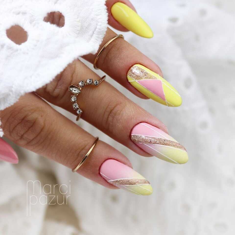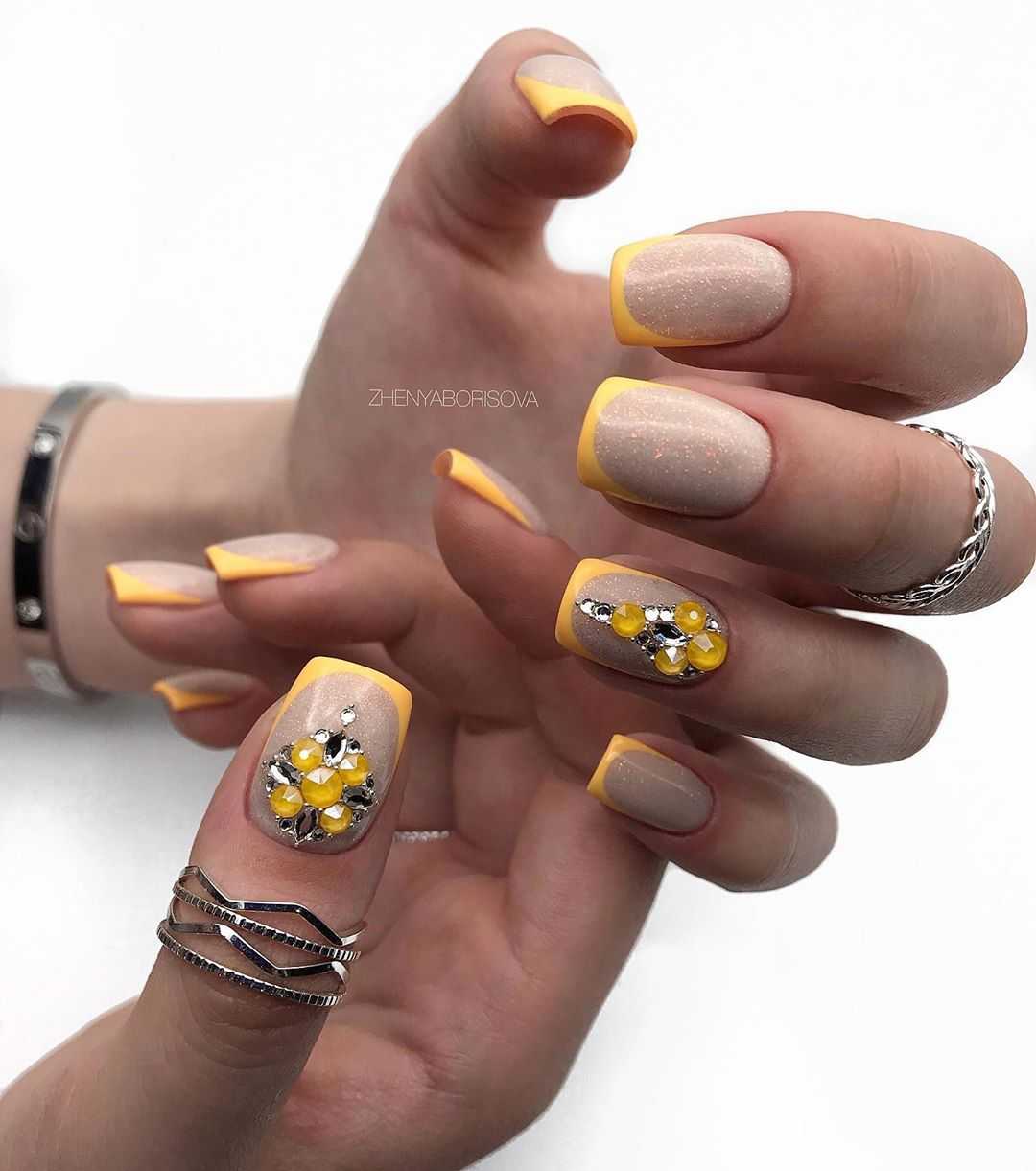 Матовый маникюр в черно-желтом цвете можно выполнить в нескольких вариантах: