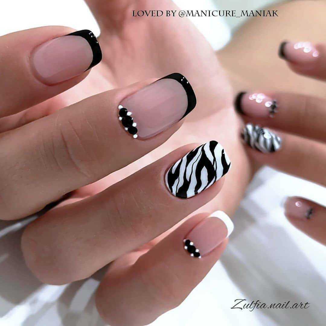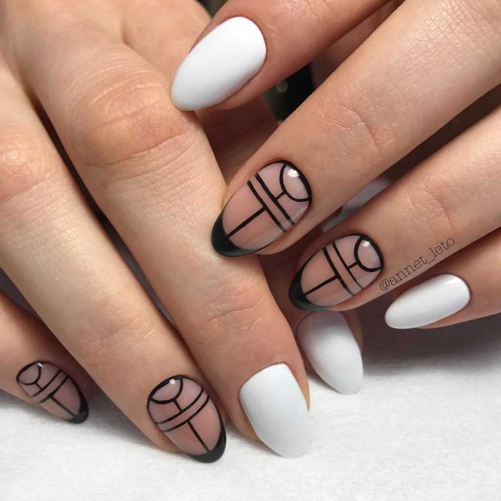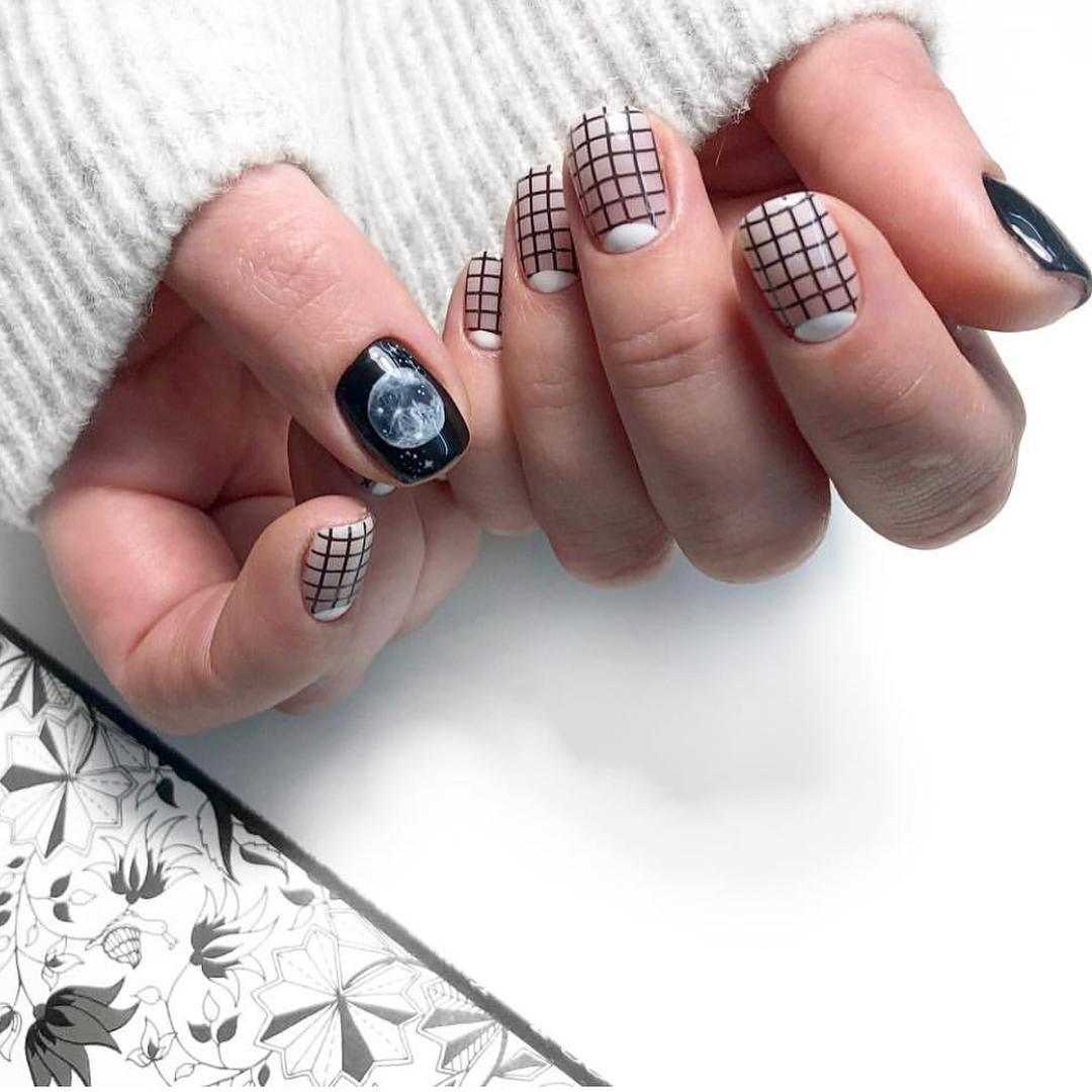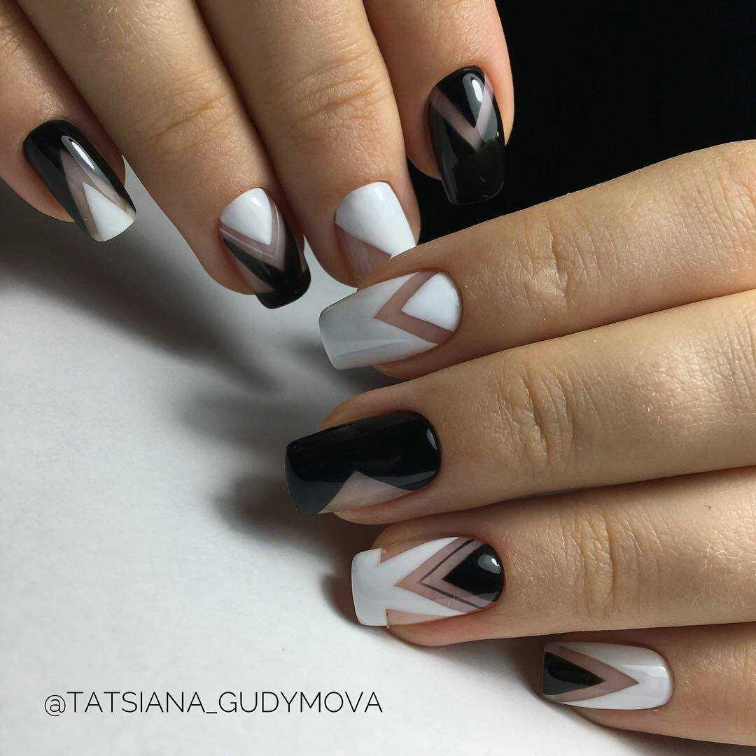 Востребован всегда, ведь он универсален и подходит всем без исключения. Он отлично впишется в офисную обстановку. Если же существует необходимость придать такому модному маникюру праздничную нотку, то его можно дополнить декоративными элементами, например, блестками или стразами. Зачастую, мастера выбирая черно-белую гамму, имитируют шкуру зебры, при чем полоски могут быть любыми: волнистыми, прямыми, горизонтальными или вертикальными. Также оригинально смотрится на ногтях «шахматная доска», таким рисунком можно украсить лишь 1-2 ногтя, остальные же покрыть черным гель-лаком.
