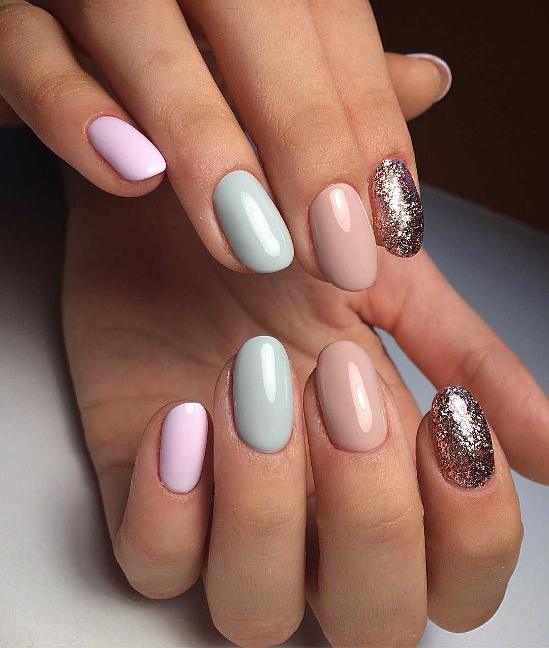 Нежные оттенки великолепно смотрятся в сочетании с серебряными, золотыми, разноцветными втирками. Создавайте не только мягкие пастельные нейл-арты, но и выбирайте в качестве основного фона розовый, нежно-голубой, сиреневый, мягкий желтый и другие яркие тона. Они также смотрятся на ногтях нежно и сдержанно, позволяют использовать стразы и камни необычной формы и расцветки.
