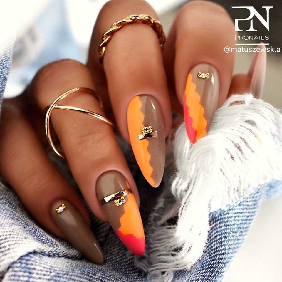 Здесь важно не переборщить с деталями в образе, не забывая, что на руках уже присутствует яркий акцент. Такой маникюр — беспроигрышный способ быть в центре внимания