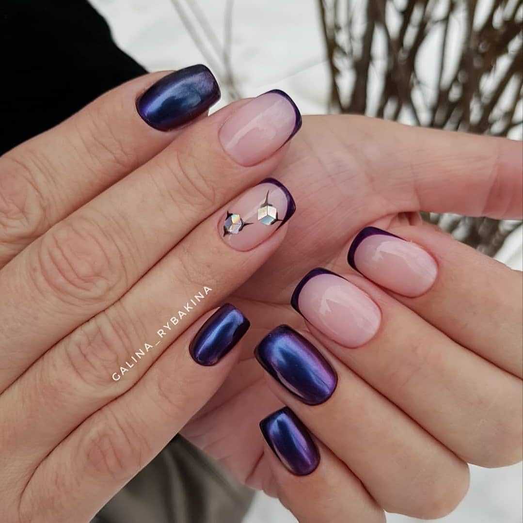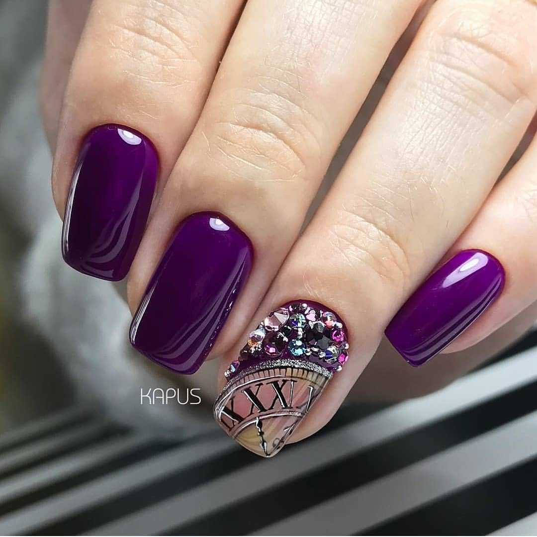 #4 Фиолетовый маникюр с блестящим декором 2020