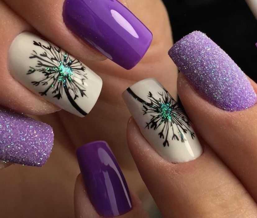 Фиолетовый маникюр с рисунком 2021 фото новинки