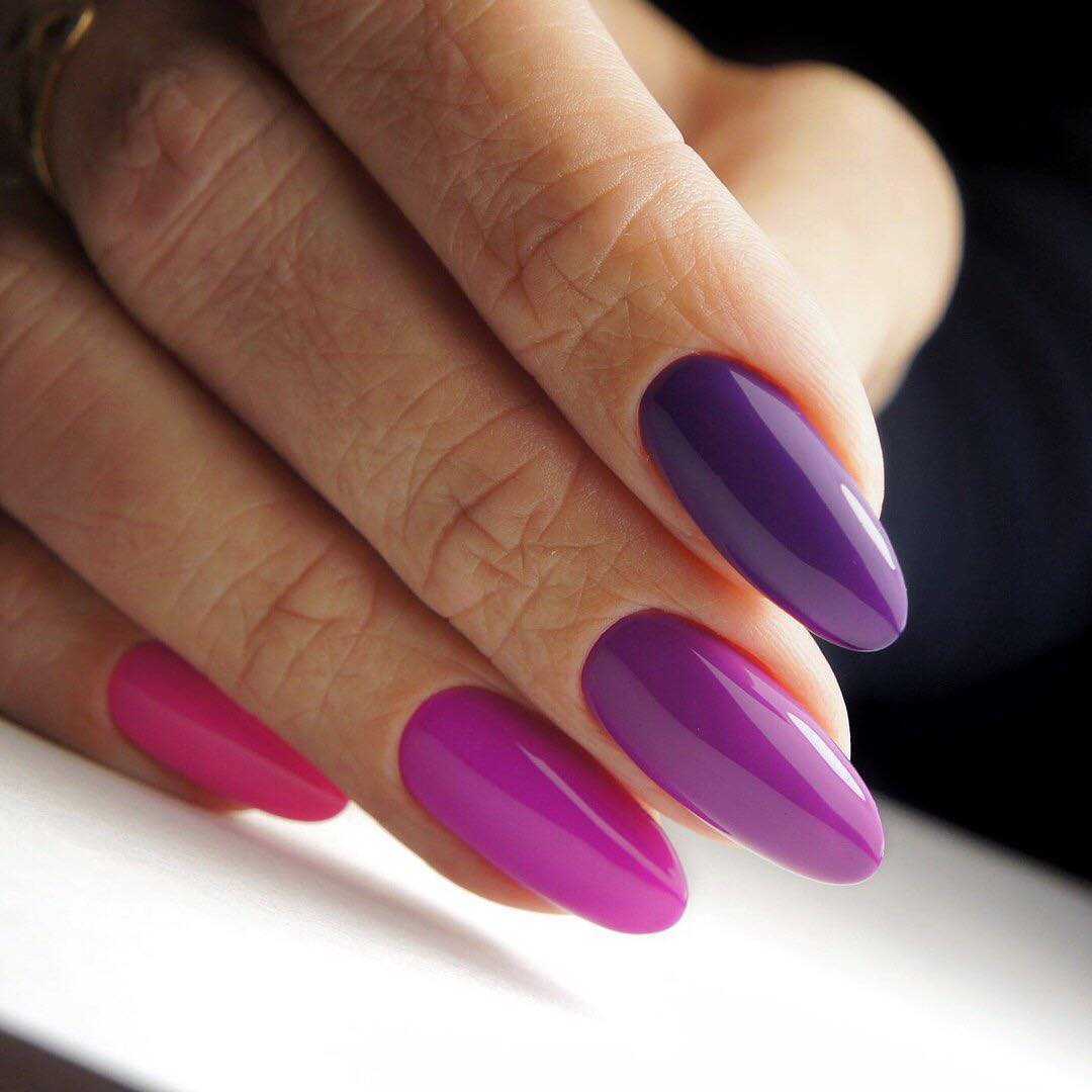 Для выполнения градиентного фиолетового маникюра можно в качестве дополнительного цвета использовать малиновый или пурпурный.