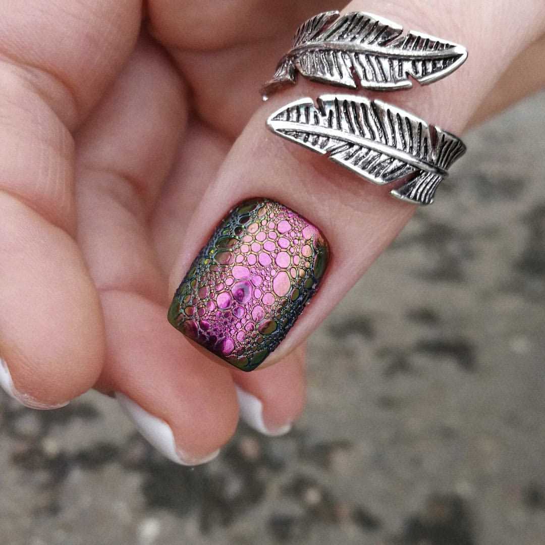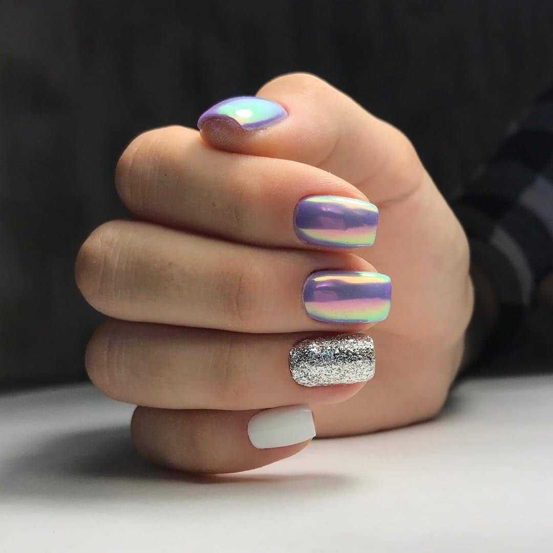 Рекомендую присмотреться и к блестящему переливающемуся маникюру. Лучшие мастера маникюра уже давно используют это в практике.