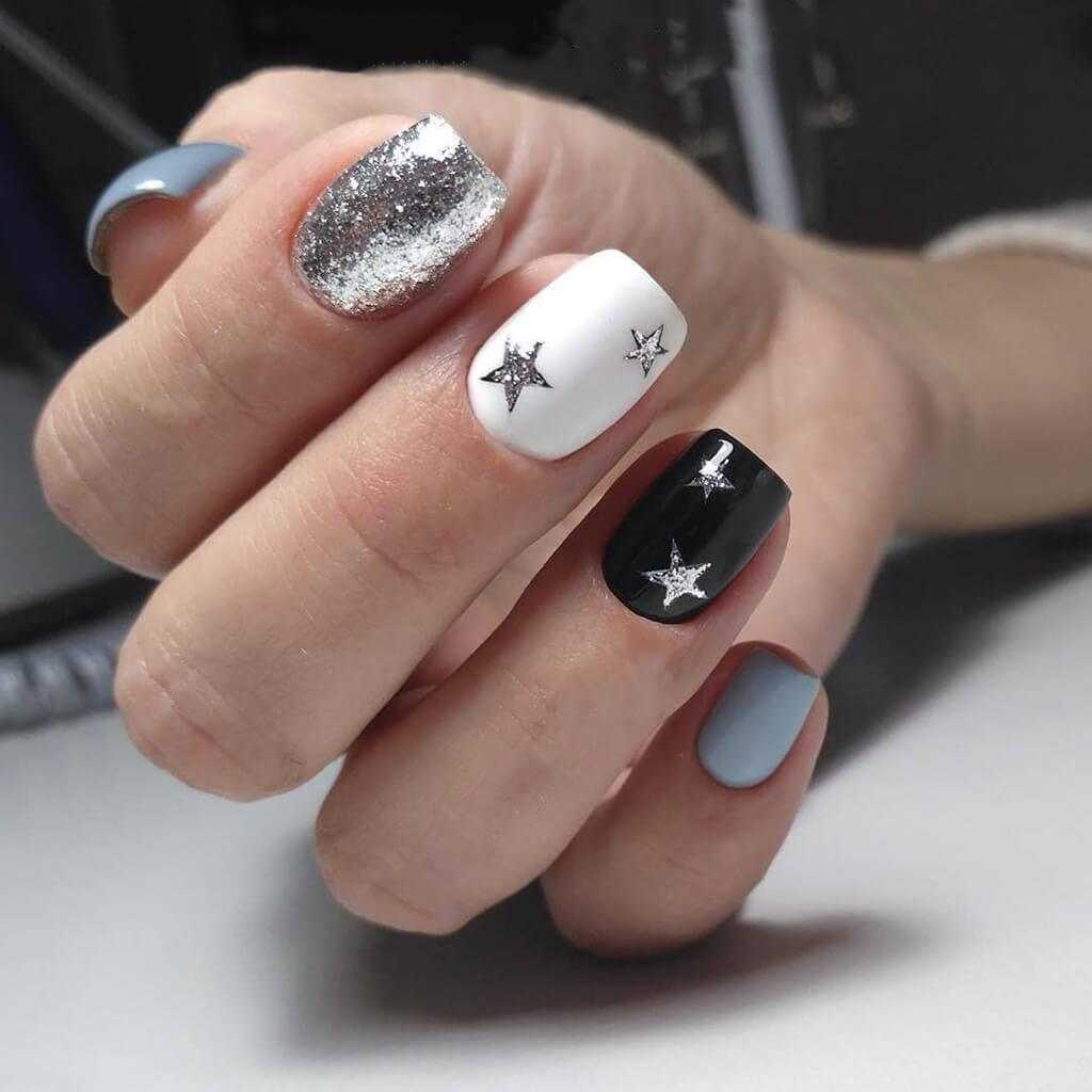Также, в этом году очень популярными остаются рисунки с абстрактными силуэтами и лицами. Они могут быть выполнены в сочетании с дизайном «разные руки», покрыты матовым или глянцевым топом, и украшены фольгой или блестками.