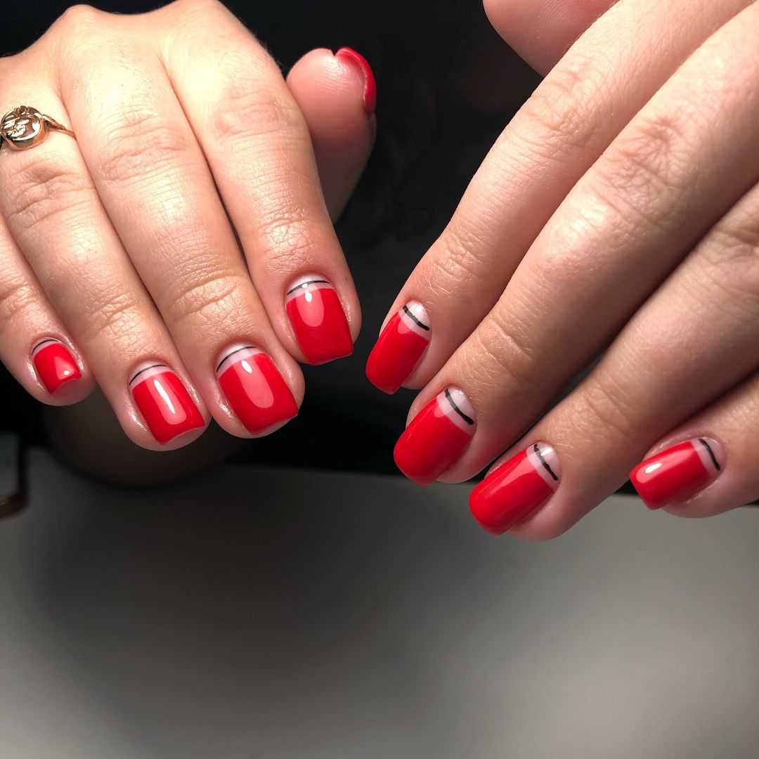 Также, на коротких ноготках очень красиво и элегантно смотрится красный френч с белой или прозрачной основой.