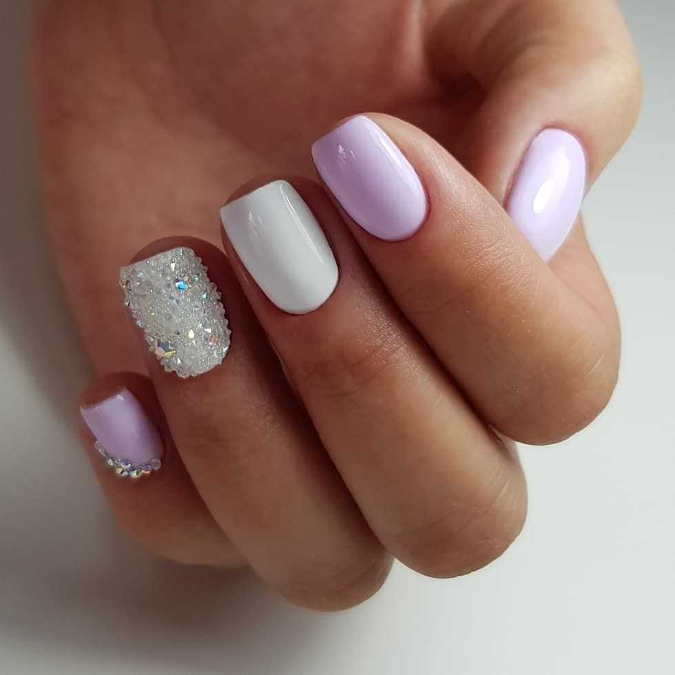 Оформление стразами и блестящим песком добавит шарма и лоска. Стоит взять на вооружение эту модную тенденцию.