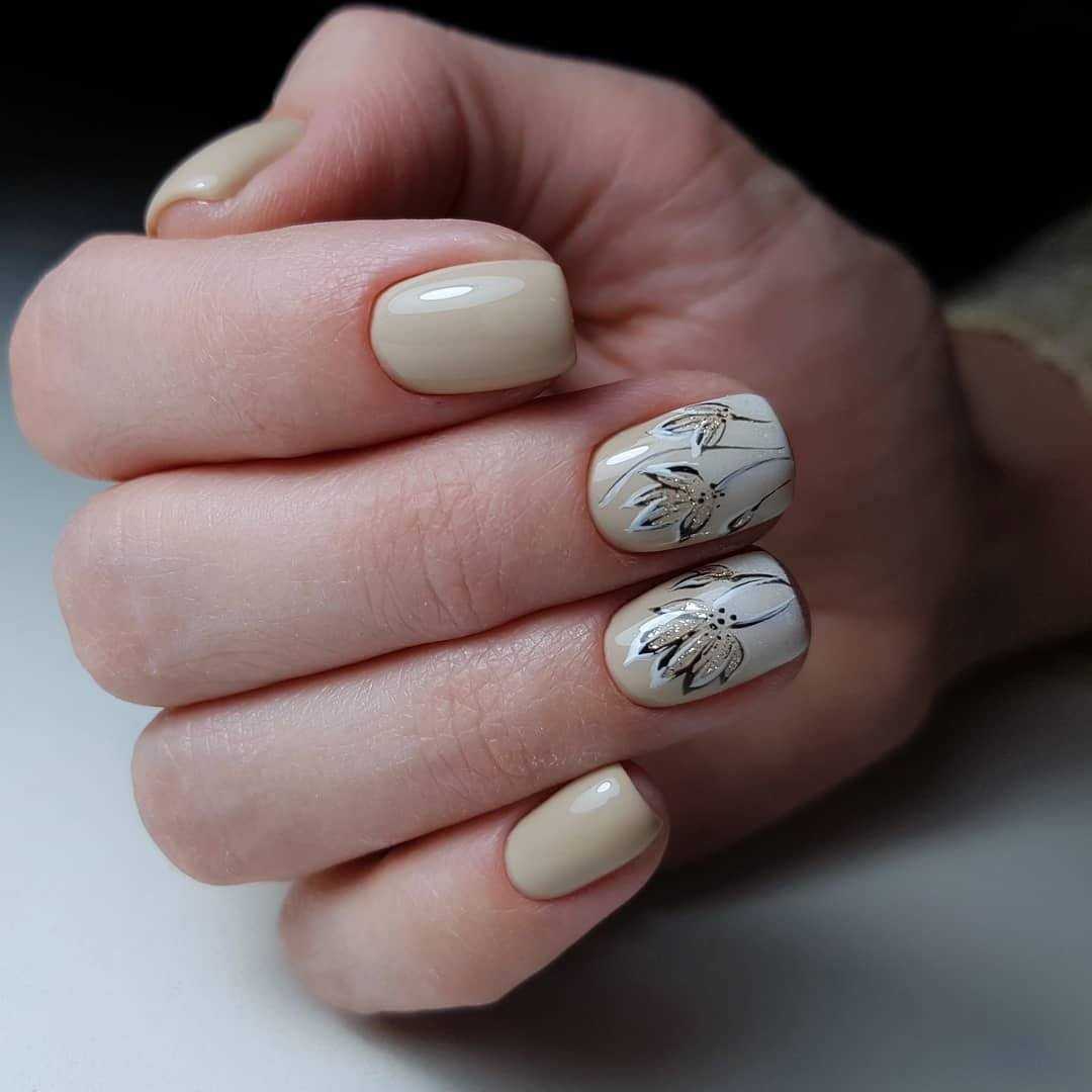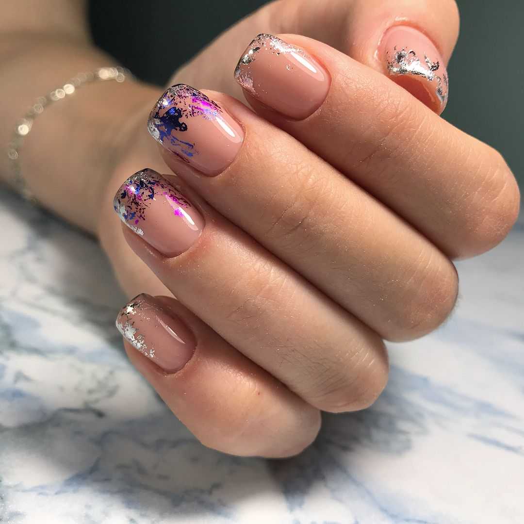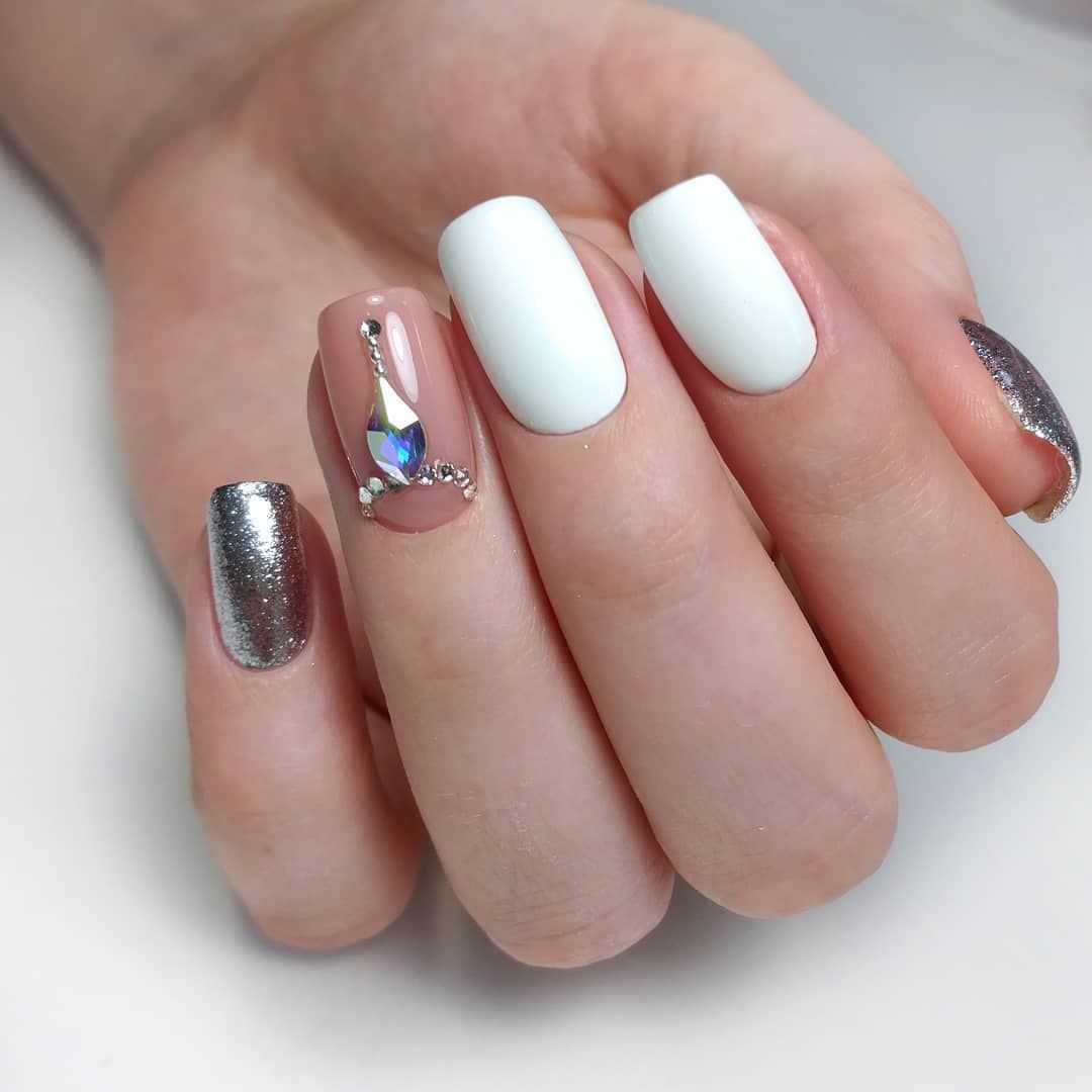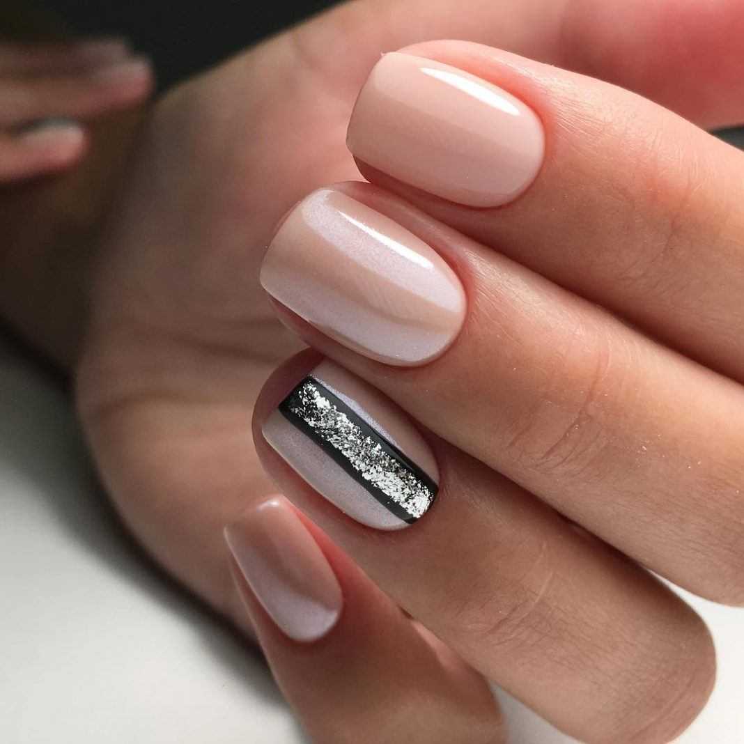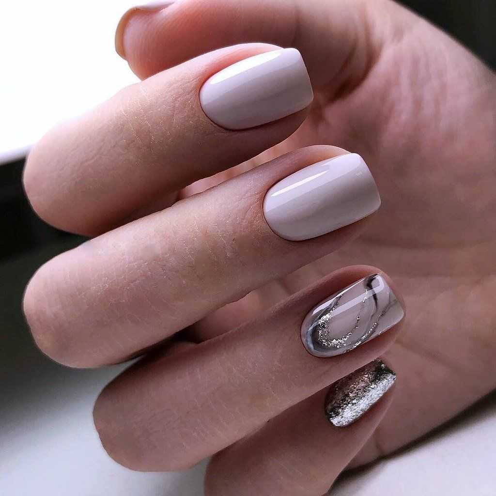 Правильное сочетание нюдовых оттенков и серебра. Популярнейшая идея маникюра.