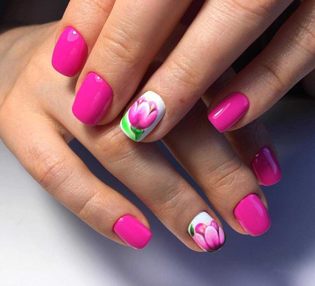 Среди романтичных натур популярны рисунки цветов, сердечек и бабочек. Лучше всего такие рисунки смотрятся на белой, молочной или нюдового цвета основе. Очень элегантно и романтично смотрятся рисунки роз, тюльпанов, маков и различных других красивых цветов.