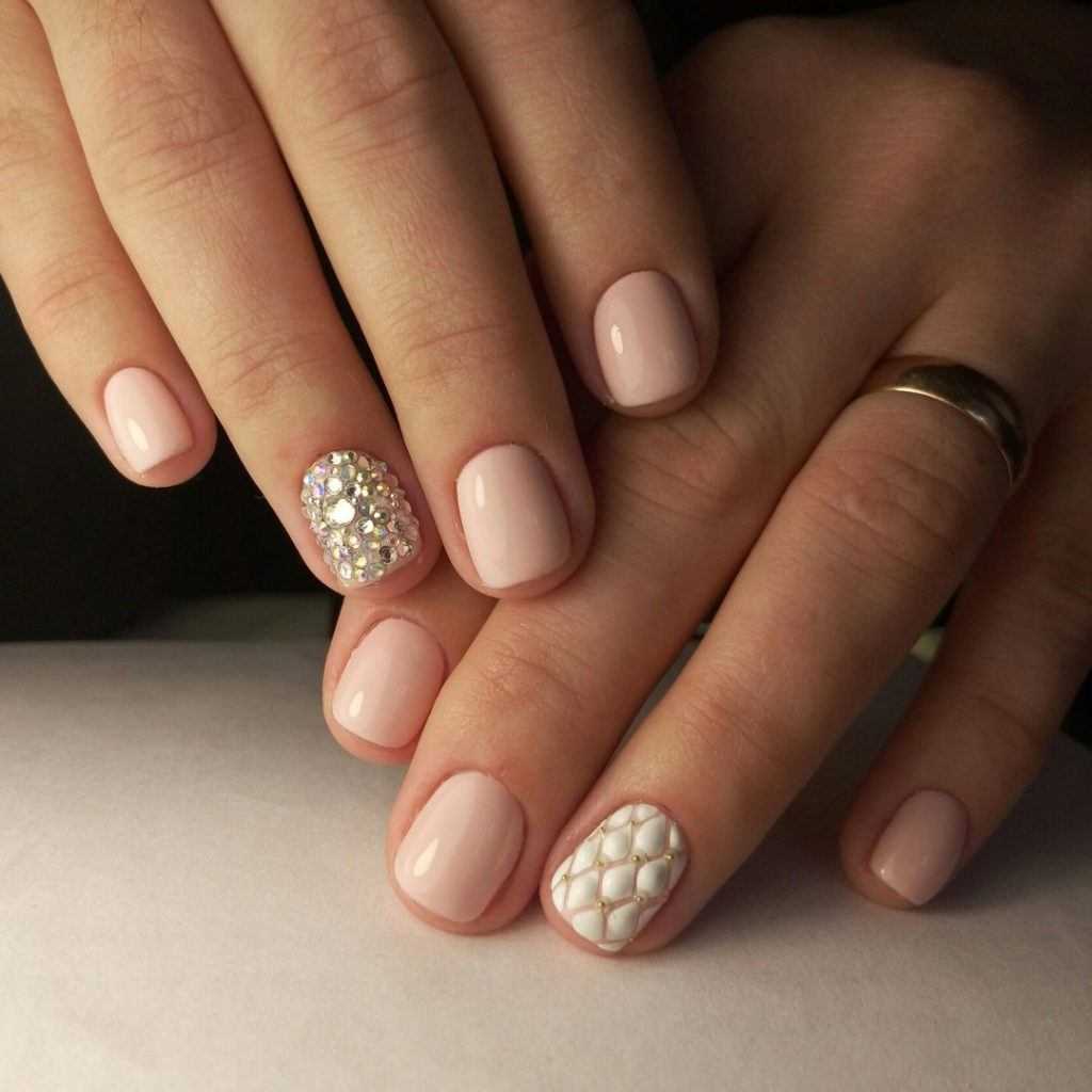 Цветные стразы эффектно дополняют нюдовый образ. Такая идея прочно закрепилась среди лучших мастеров маникюра.