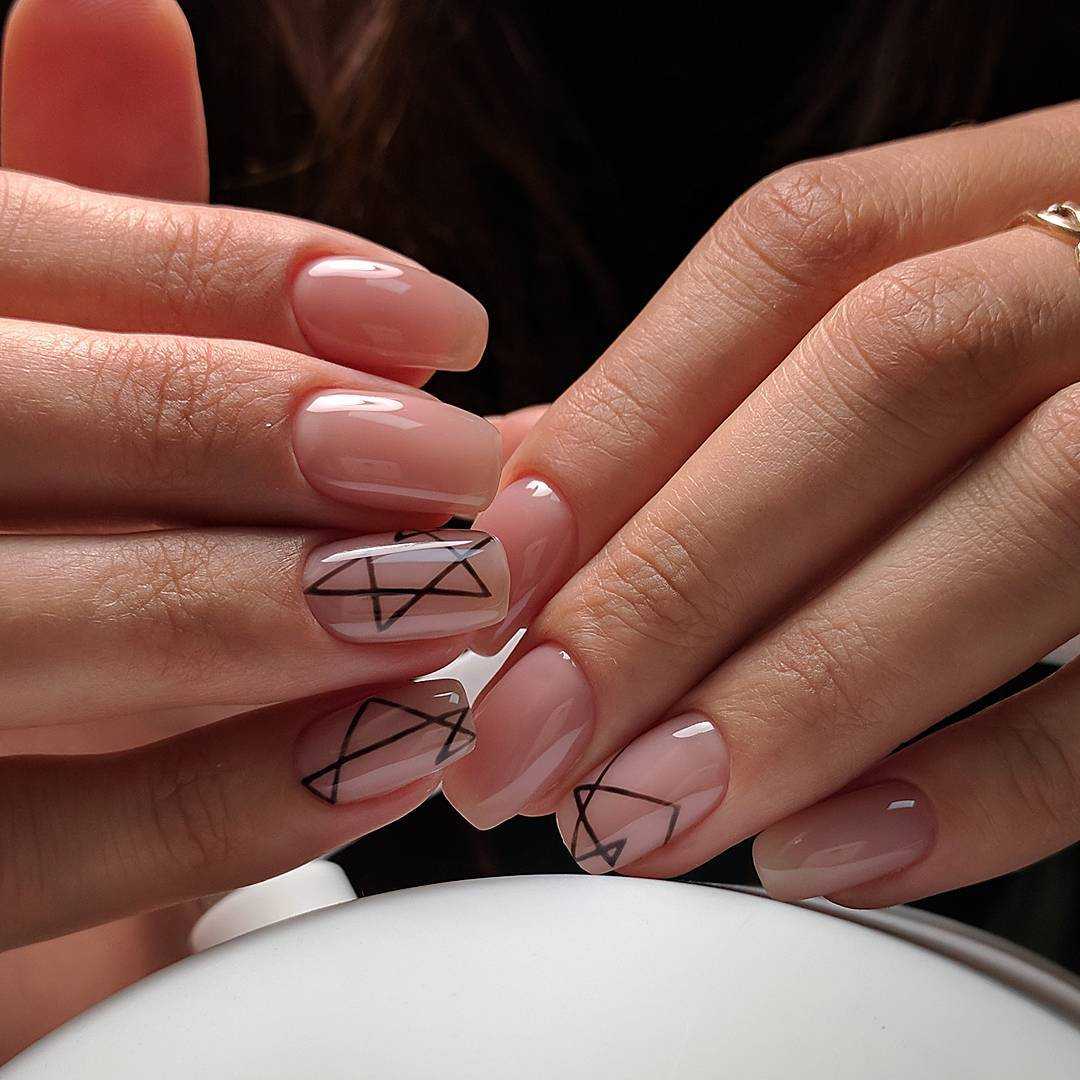 Модный дизайн маникюра в 2021-2022 — нюдовое покрытие и оригинальное оформление.