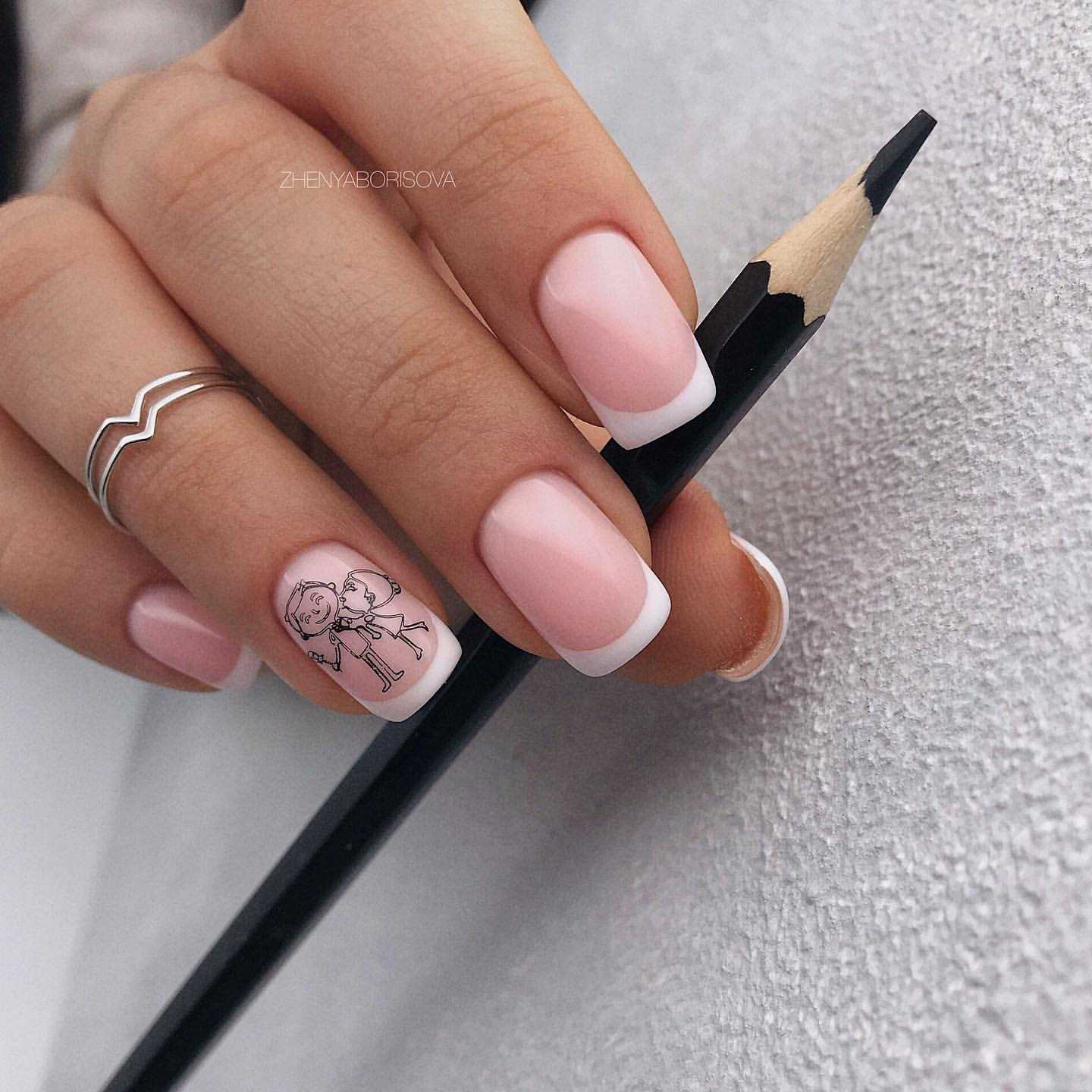 Рекомендую обратить внимание и на такой трендовый маникюр. Небольшие ненавязчивые рисунки на ногтях очень стильно смотрятся