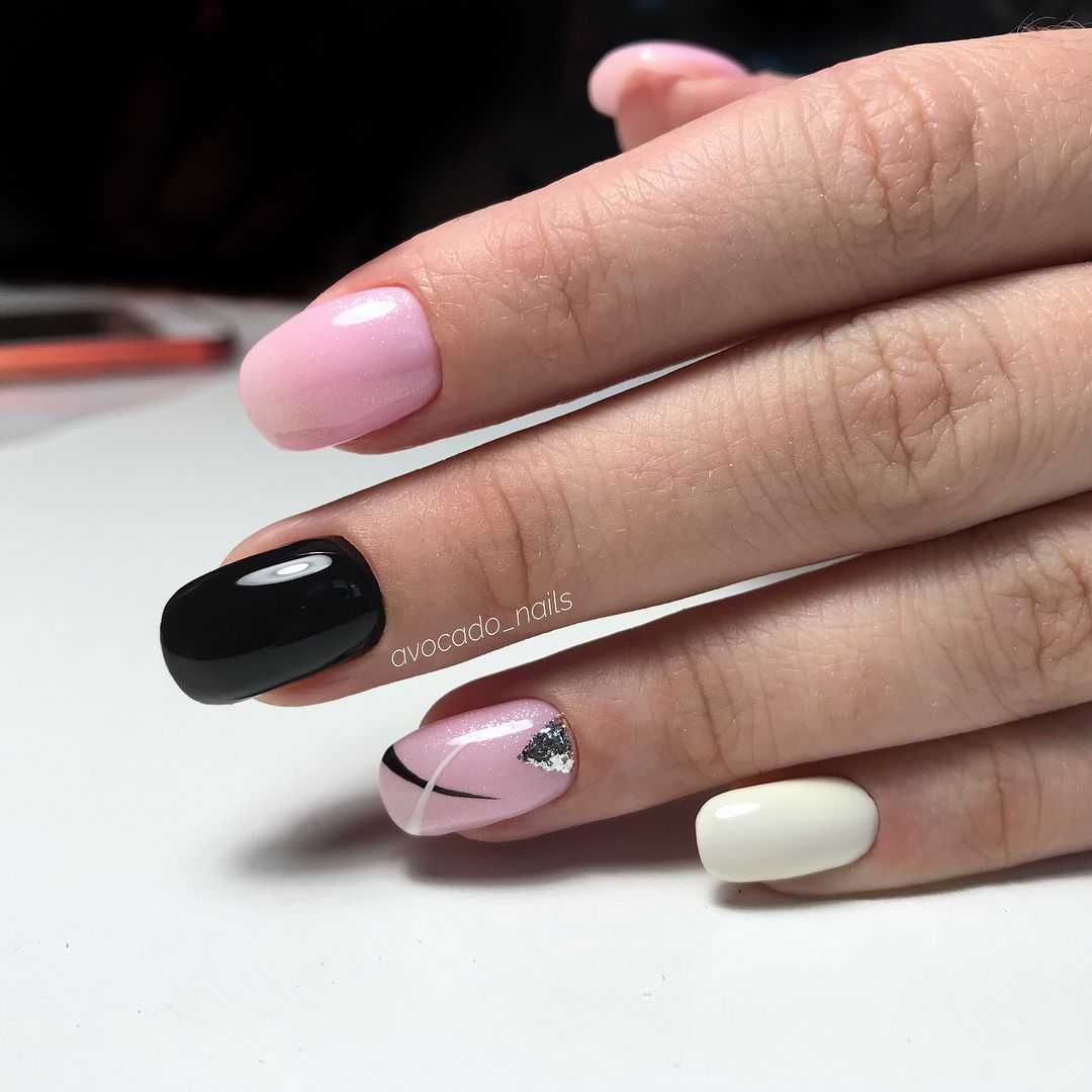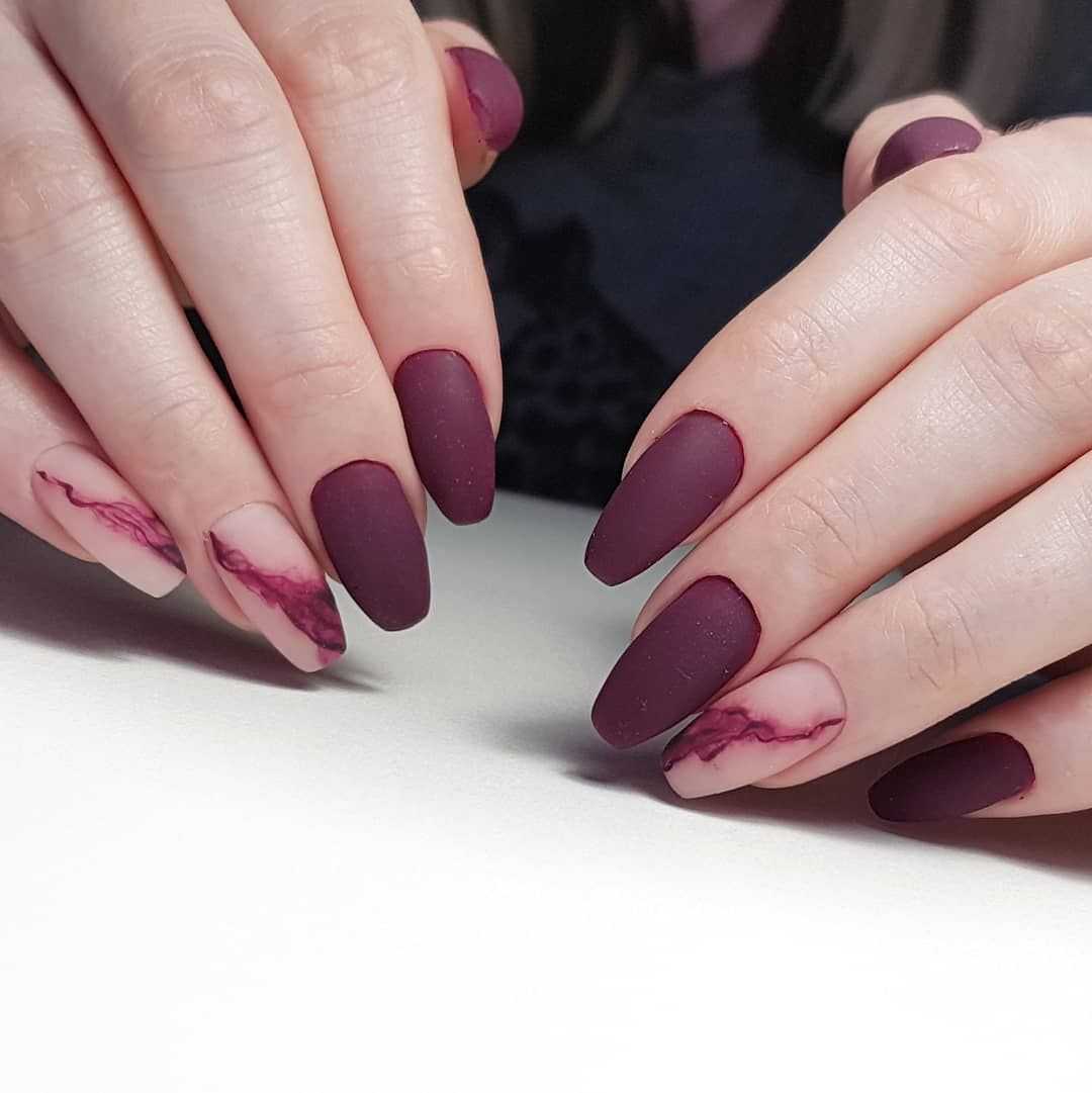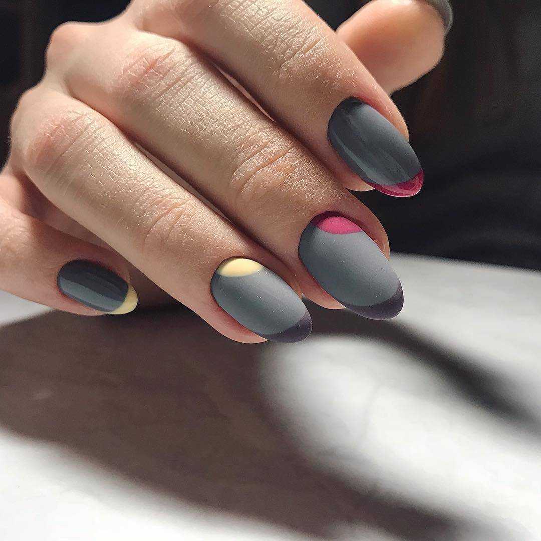 Темные оттенки гель-лака также находят своих поклонниц, которые чаще всего используют их для создания дизайна с геометрией, однотонного покрытия в сочетании со светлыми тонами.