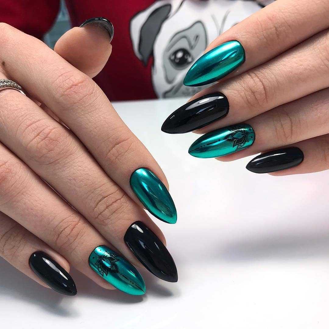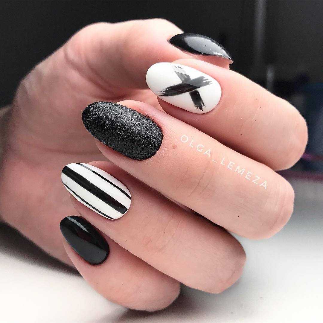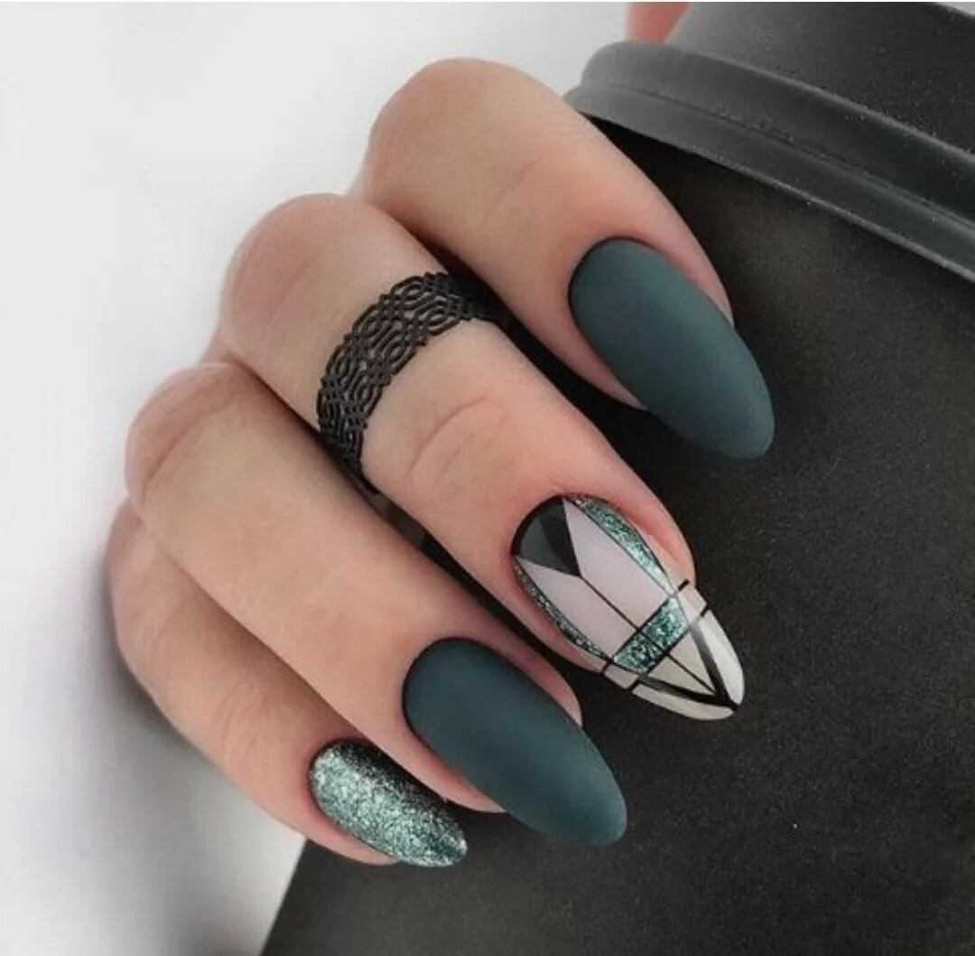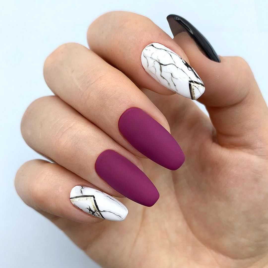 Темные оттенки гель-лака также находят своих поклонниц, которые чаще всего используют их для создания дизайна с геометрией, однотонного покрытия в сочетании со светлыми тонами.