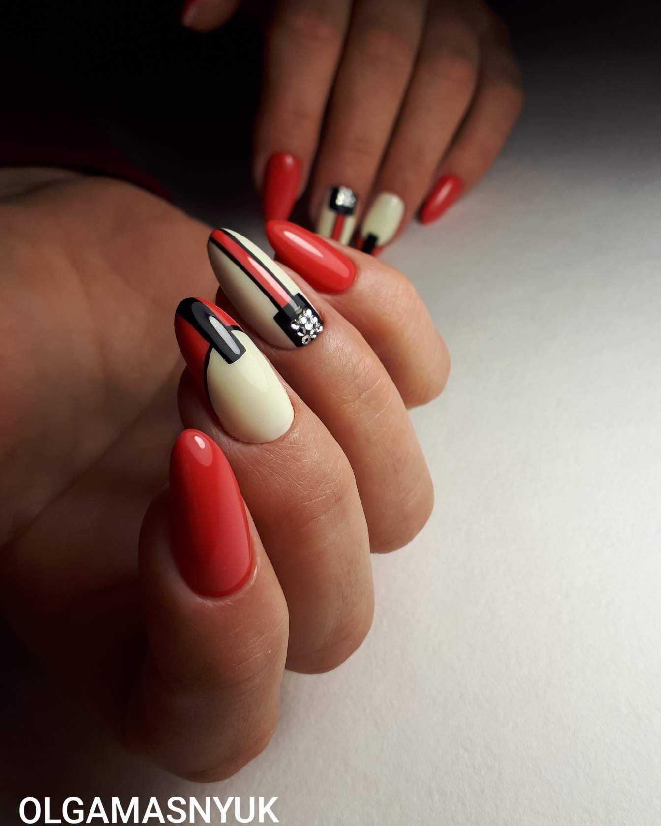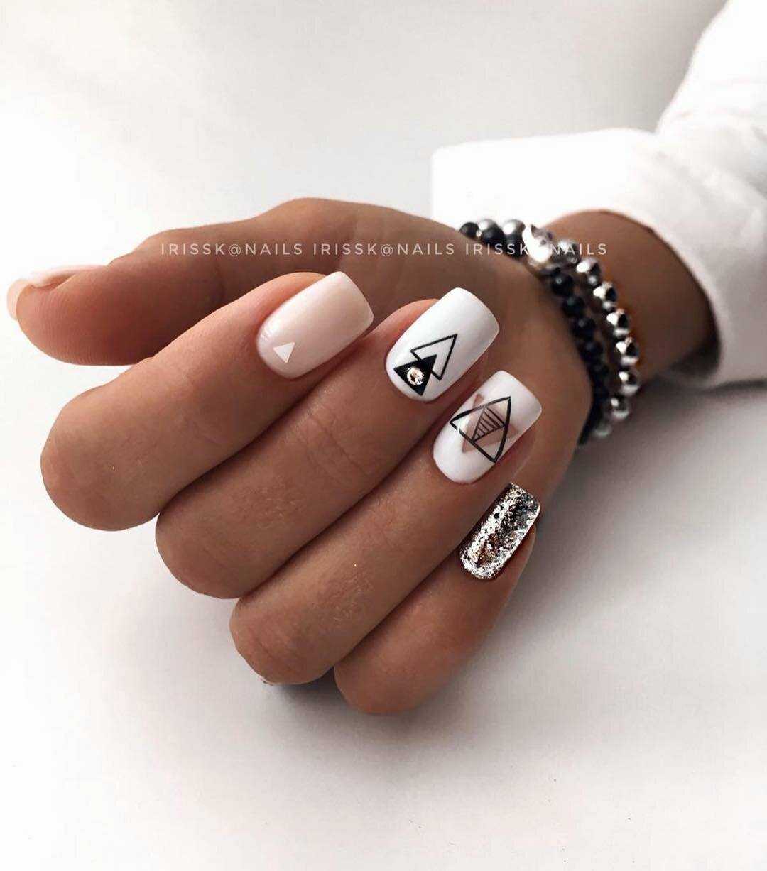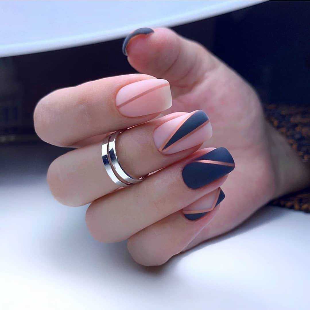 Геометрические не перестают нас радовать своей новизной и уникальностью. Многих девушек привлекает этот стиль своими идеально ровными линиями, колор-блоками, квадратами и треугольниками. И это не напрасно, ведь из них можно выполнить очень эффектный и индивидуальный маникюр. Весной 2020 года на пике популярности сочетание минимализма с геометрией. Для модного дизайна достаточно всего лишь выполнить пару ровных полосок на одном или нескольких ноготках. Обязательной составляющей такого маникюра стал серебряный или золотой лак. Он служит для заполнения полостей от геометрического узора.
