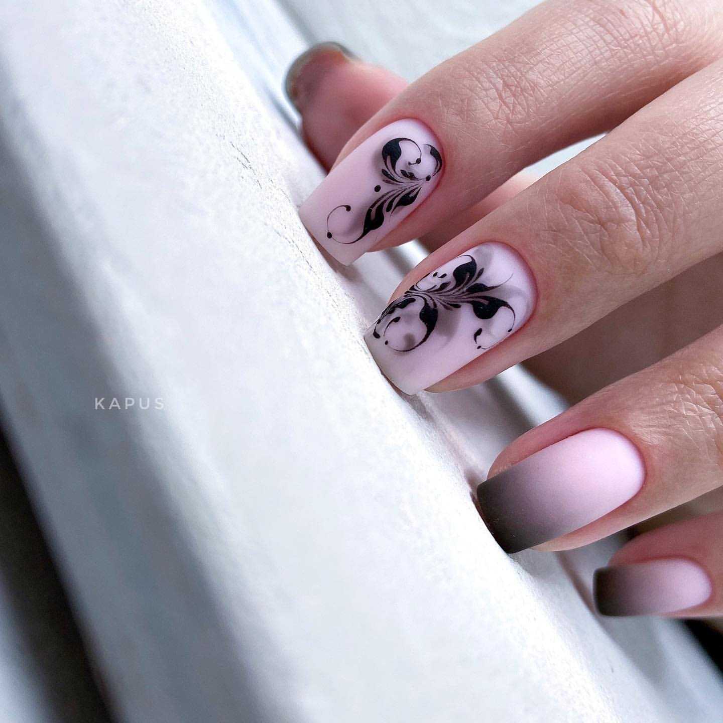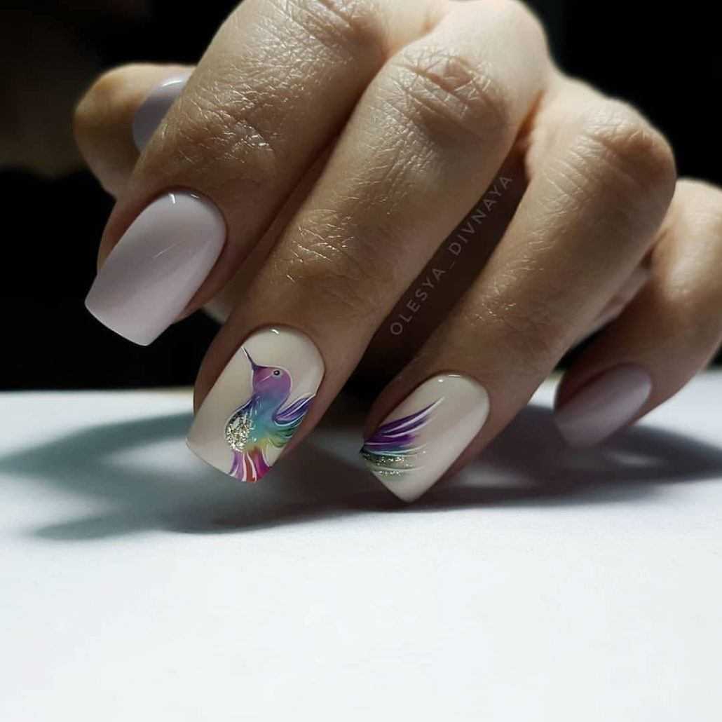 Что касается декора, то тут также стоит придерживаться стиля минимализм. В тренде односложные узоры такие как флористика с веточками, бутонами, нежными стебельками, геометрическими животными, узорами стемпинг. Маникюр с яркими слайдерами пока не актуальны, на их смену пришли нежные нейл-арты в светлых матовых тонах.