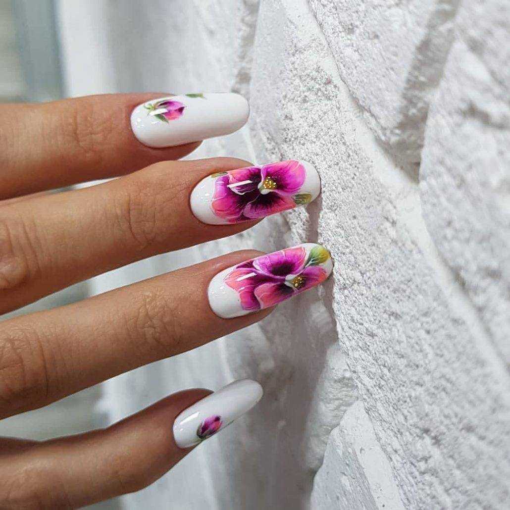 Маникюр с цветами будет наиболее популярными в весенний период.