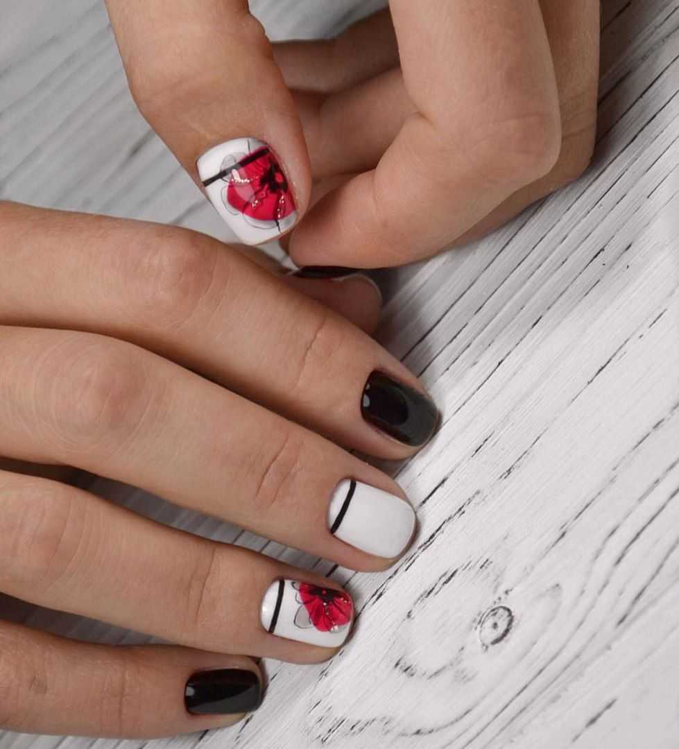 Цветы помогут украсить любой маникюр. Такой дизайн может придать большей нежности нюдовому маникюру или сделаем менее агрессивным темные покрытия.
