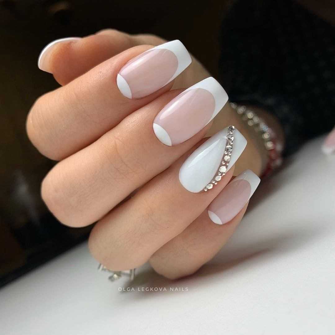 Если вы решили сделать камни и стразы основным акцентом дизайна, то добавляйте их в однотонный дизайн или французский маникюр. Помните, что камни будут занимать бОльшую часть вашего дизайна, поэтому не стоит добавлять в маникюр какой-либо другой декор, например, слайдеры, надписи, стемпинг.