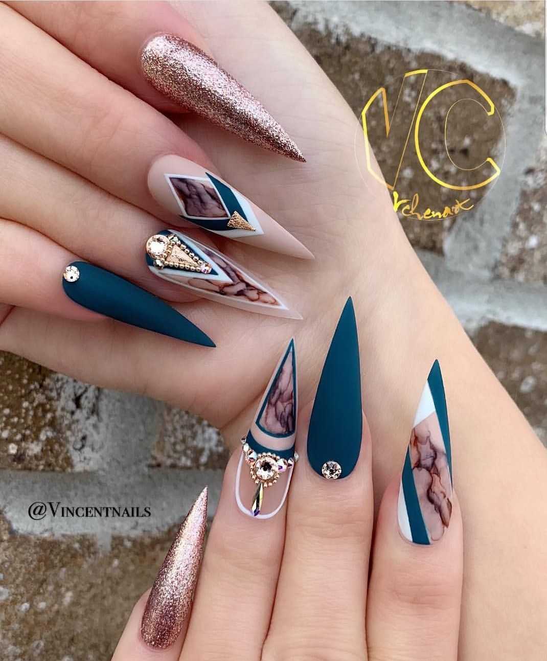 Важно гармонично соединить камни разной формы и размера, чтобы на ногтях они смотрелись лаконично и красиво