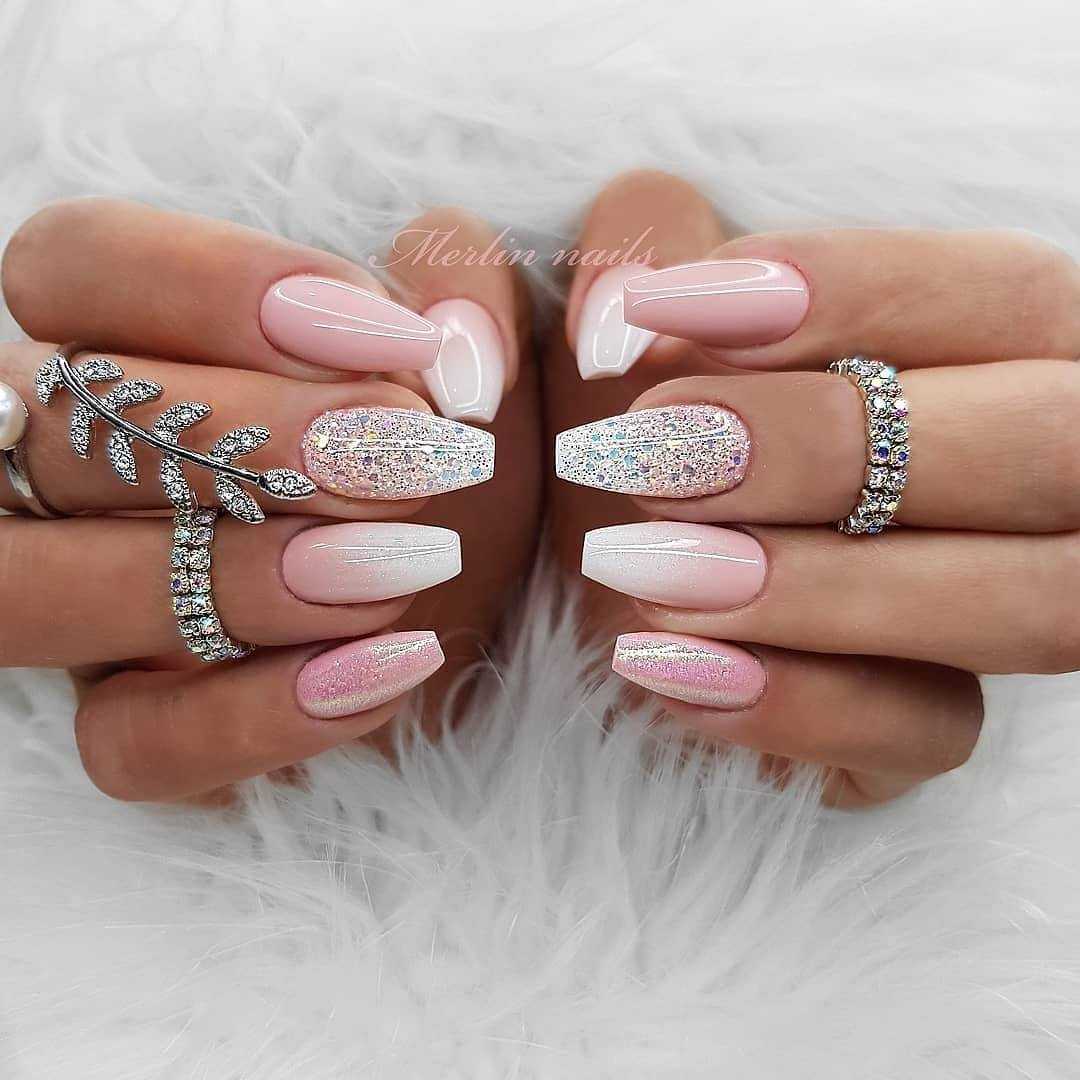 Таким образом, они уделяют особое внимание не только стилю одежды, но и немаловажному элементу образа – маникюру. Именно в таких случаях мастера маникюра предлагают в дизайне ноготков использовать блестящие или мерцающие декорирования. При их помощи женский образ приобретает нарядный, праздничный, а самое главное впечатляющий вид