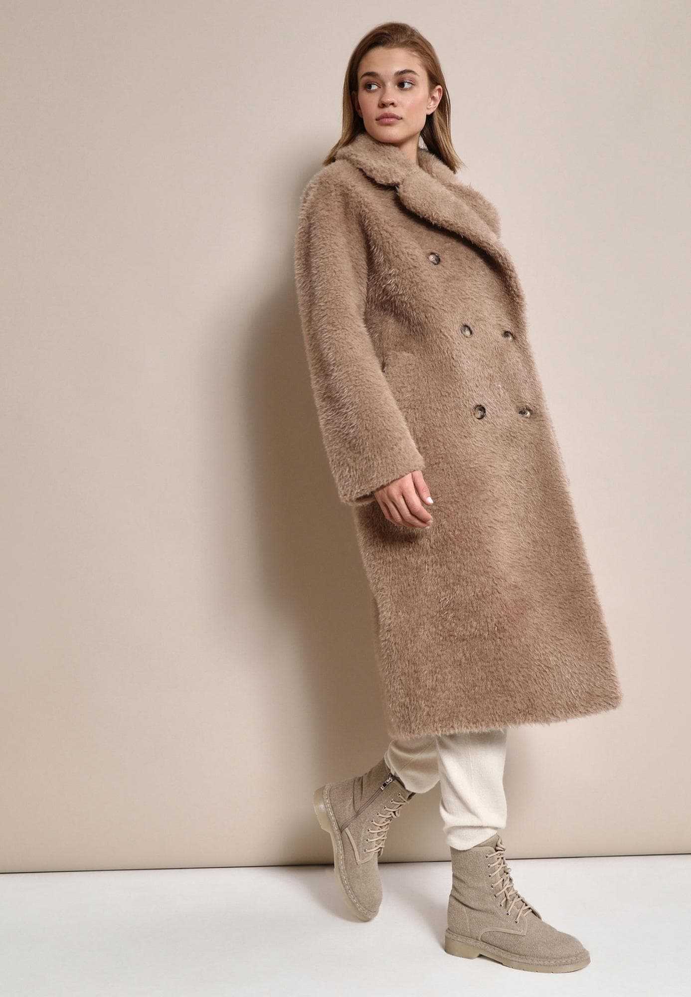 Именно пальто из эко-меха, а не шуба правит бал в этом году. Объемные пушистые шубы и полушубки потеряли свои позиции в модном топе, уступив пальму первенства пальто классического кроя, правда, из меха тедди. Прямое пальто ниже колена с отложным воротником – вот тот канонический силуэт, который следует искать в первую очередь.
