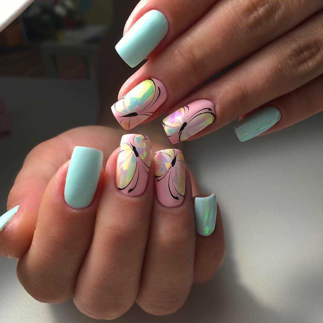 По сути, в выборе рисунков вас никто не ограничивает. Ногти могут украшаться маленькими птичками, нежным горошком, анималистичными принтами — допустимо все, что вам нравится. Для создания маникюра могут использоваться наклейки — это достаточно удобно. Также принты рисуются от руки, но для этого нужно мастерство и аккуратность, поэтому лучше доверить такой маникюр мастеру.