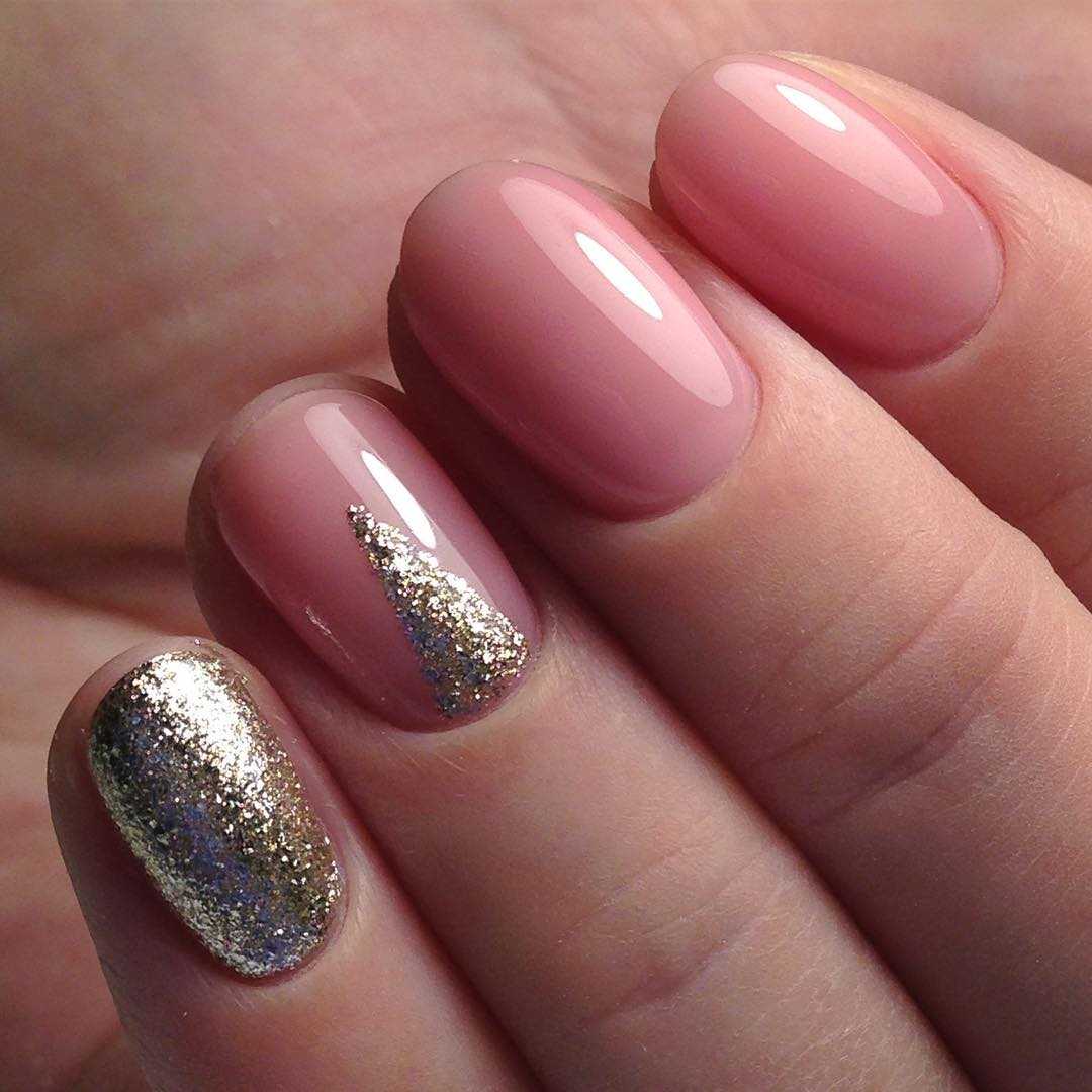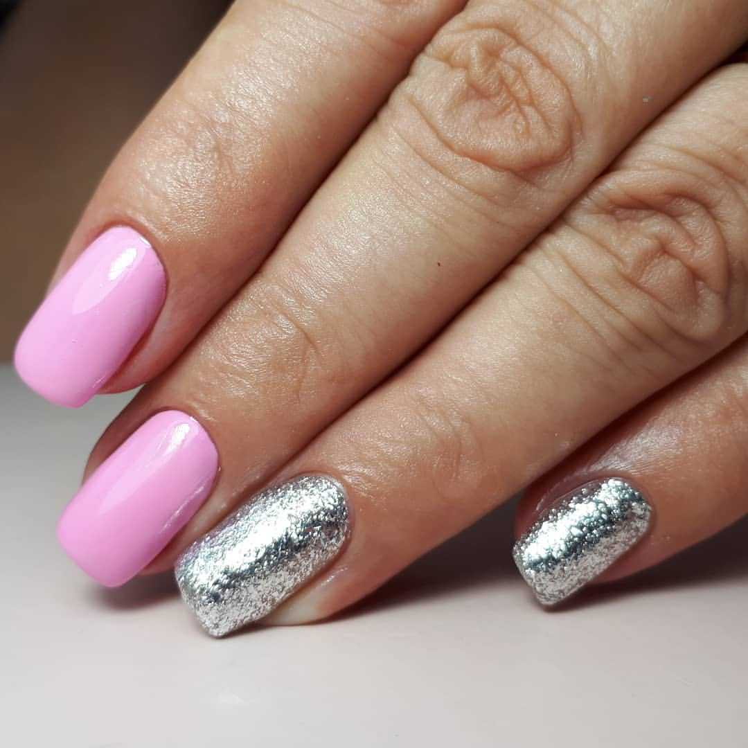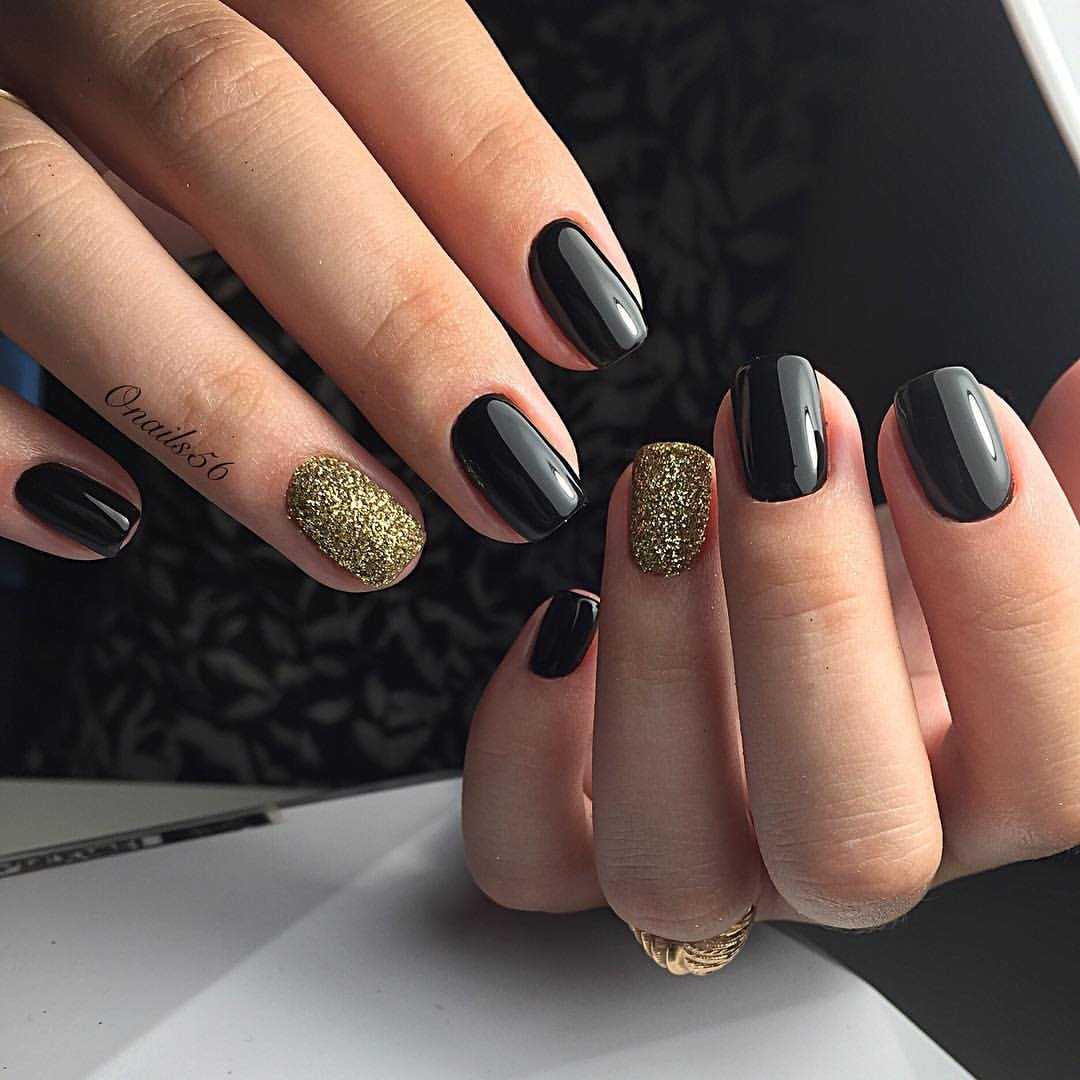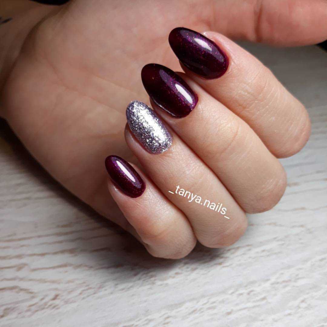 Лучшим решением для однотонного маникюра станет золотой или серебряный лак на безымянной пальце. Такой дизайн представляет собой симбиоз минимализма, лаконичности и стиля. Используйте глиттер, фольгу, акрил или меланж и ваш монохромный маникюр заиграет новыми красками.