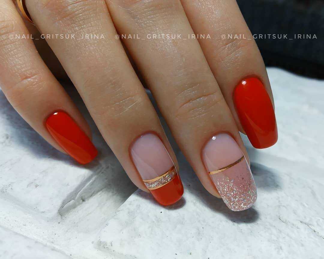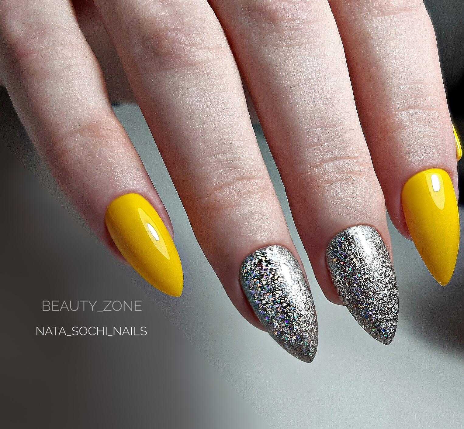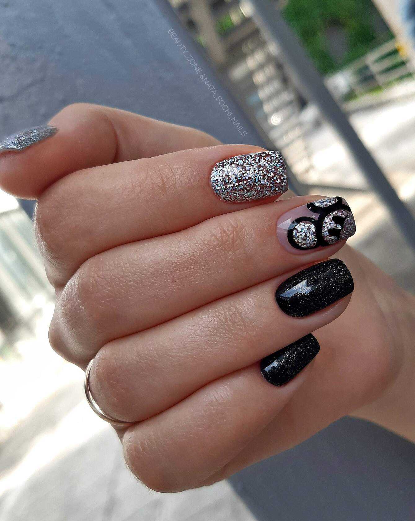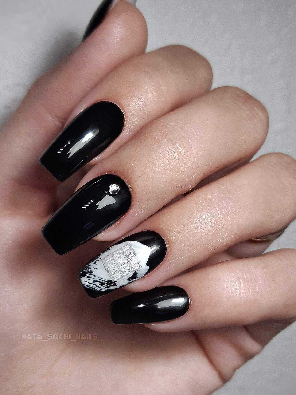 Лучшим решением для однотонного маникюра станет золотой или серебряный лак на безымянной пальце. Такой дизайн представляет собой симбиоз минимализма, лаконичности и стиля. Используйте глиттер, фольгу, акрил или меланж и ваш монохромный маникюр заиграет новыми красками.
