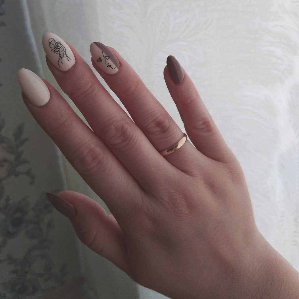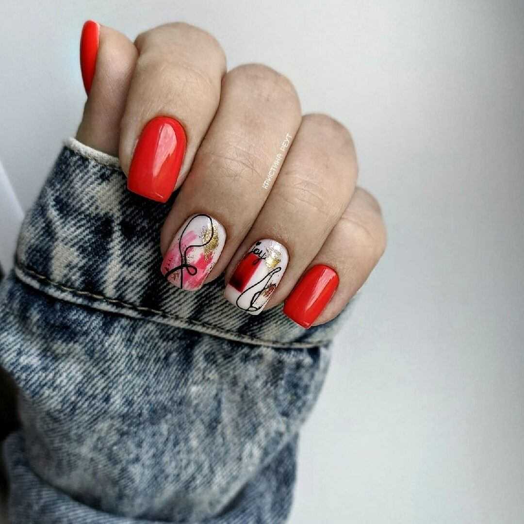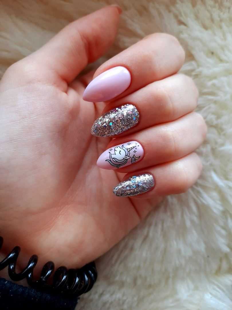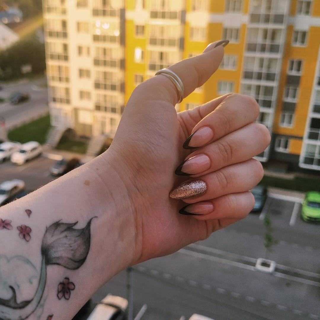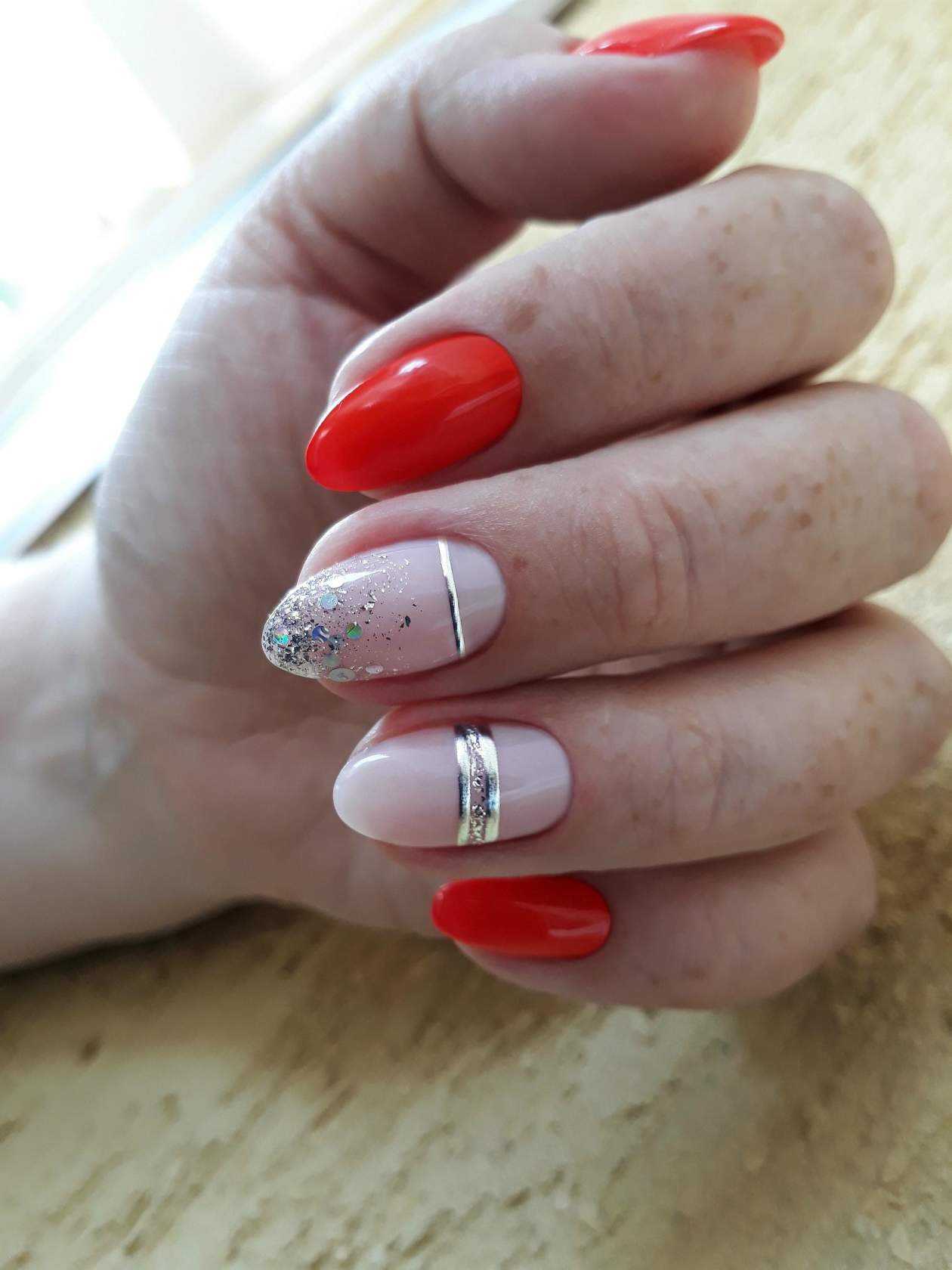 Лучшим решением для однотонного маникюра станет золотой или серебряный лак на безымянной пальце. Такой дизайн представляет собой симбиоз минимализма, лаконичности и стиля. Используйте глиттер, фольгу, акрил или меланж и ваш монохромный маникюр заиграет новыми красками.