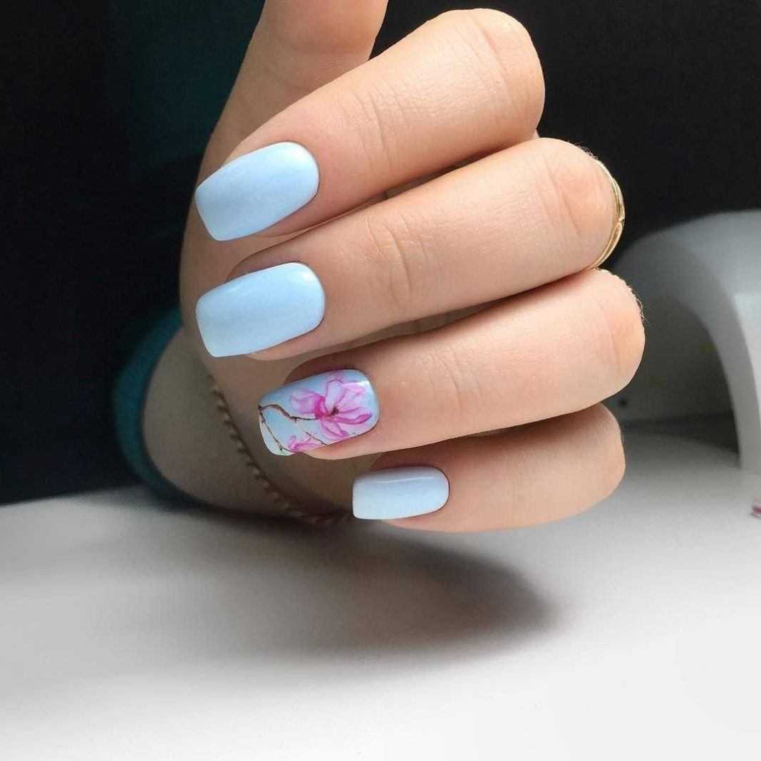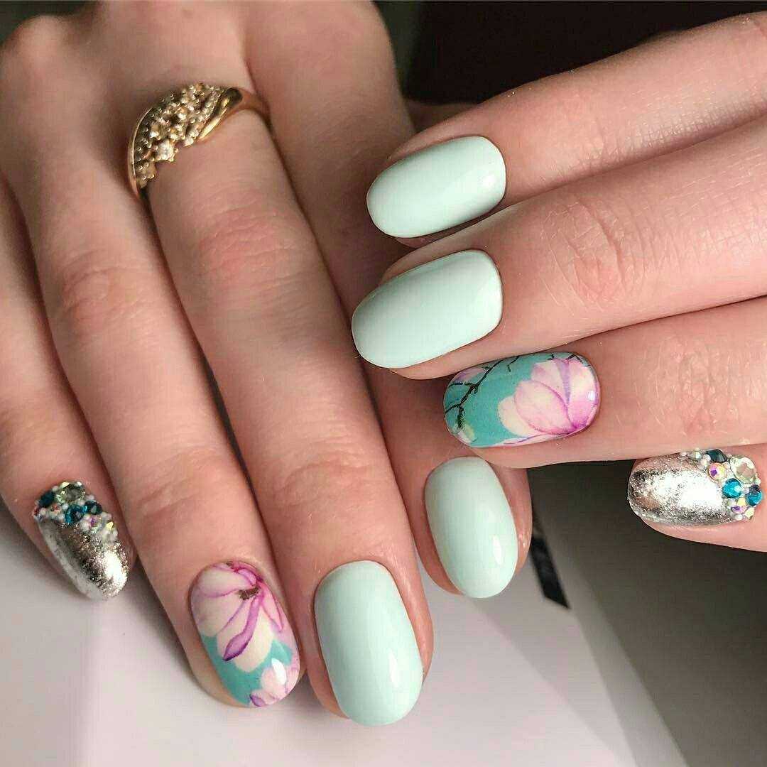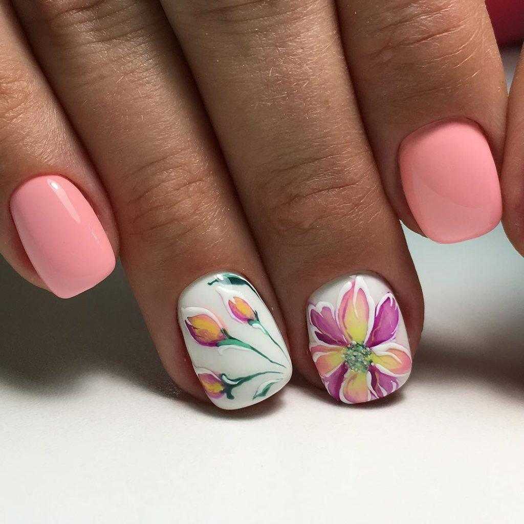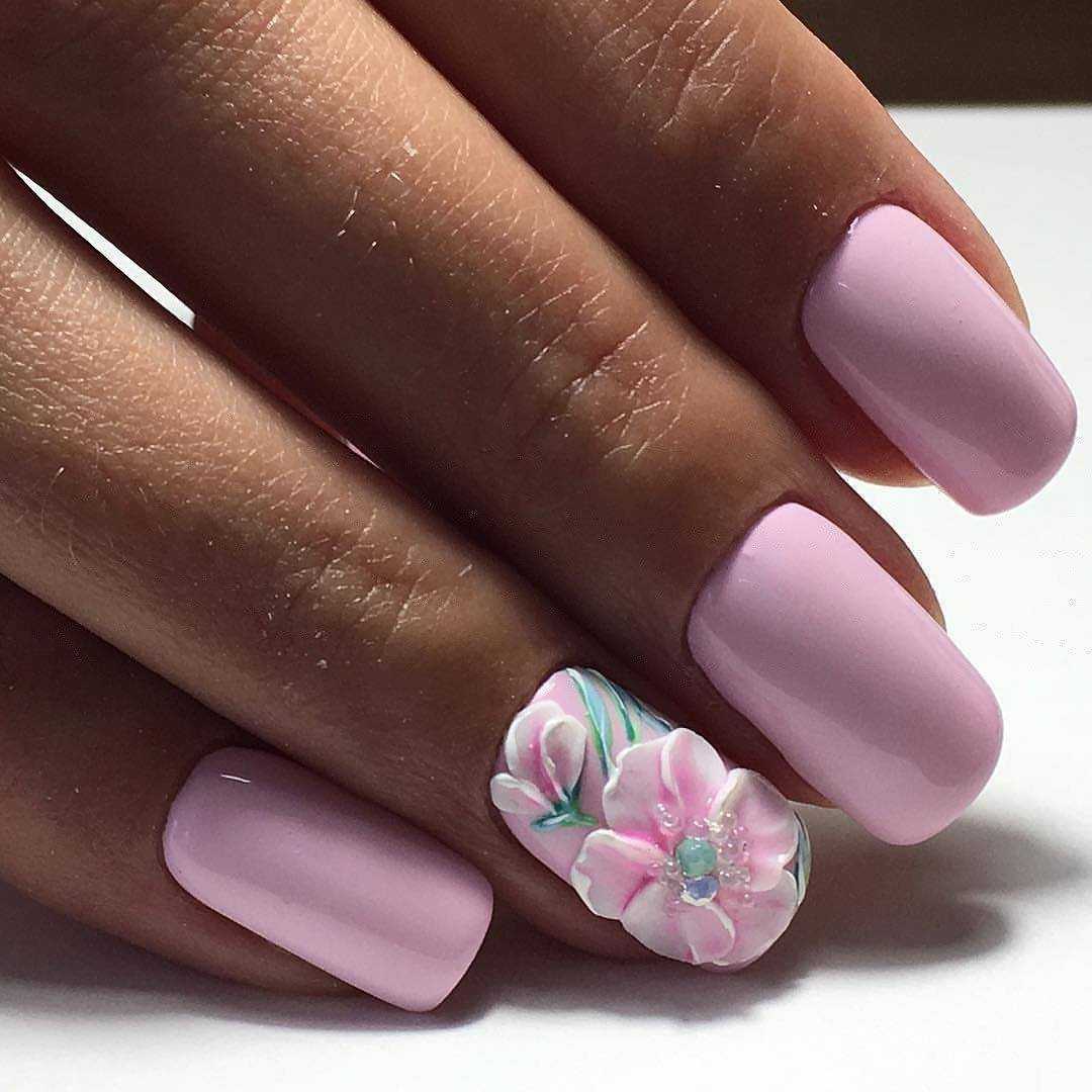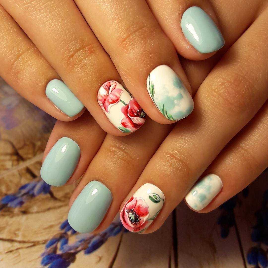 Короткая длина ногтей вовсе не преграда для создания романтичного цветочного маникюра. Опытный мастер без проблем реализует любую понравившуюся идеи. Ведь главное — придерживаться баланса. То есть рисунок должен быть соответствующего размера по отношению к размеру ногтевой пластины. Декоративный детали можно смело использовать, но только в небольшом количестве.