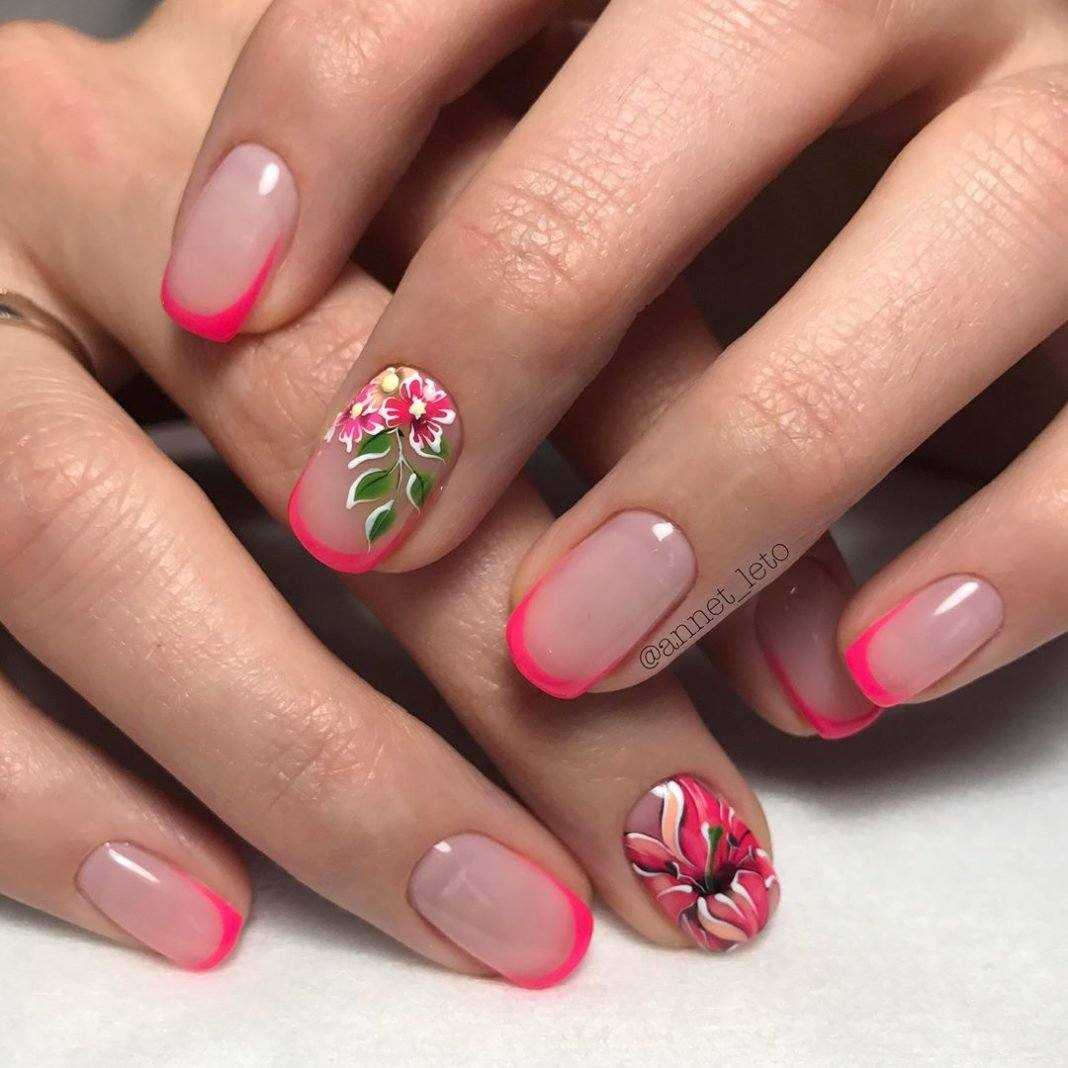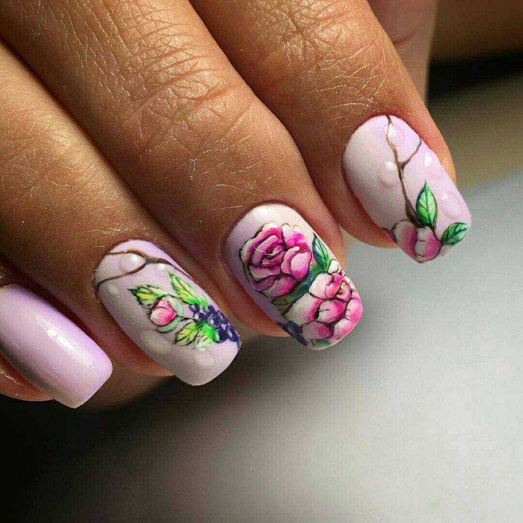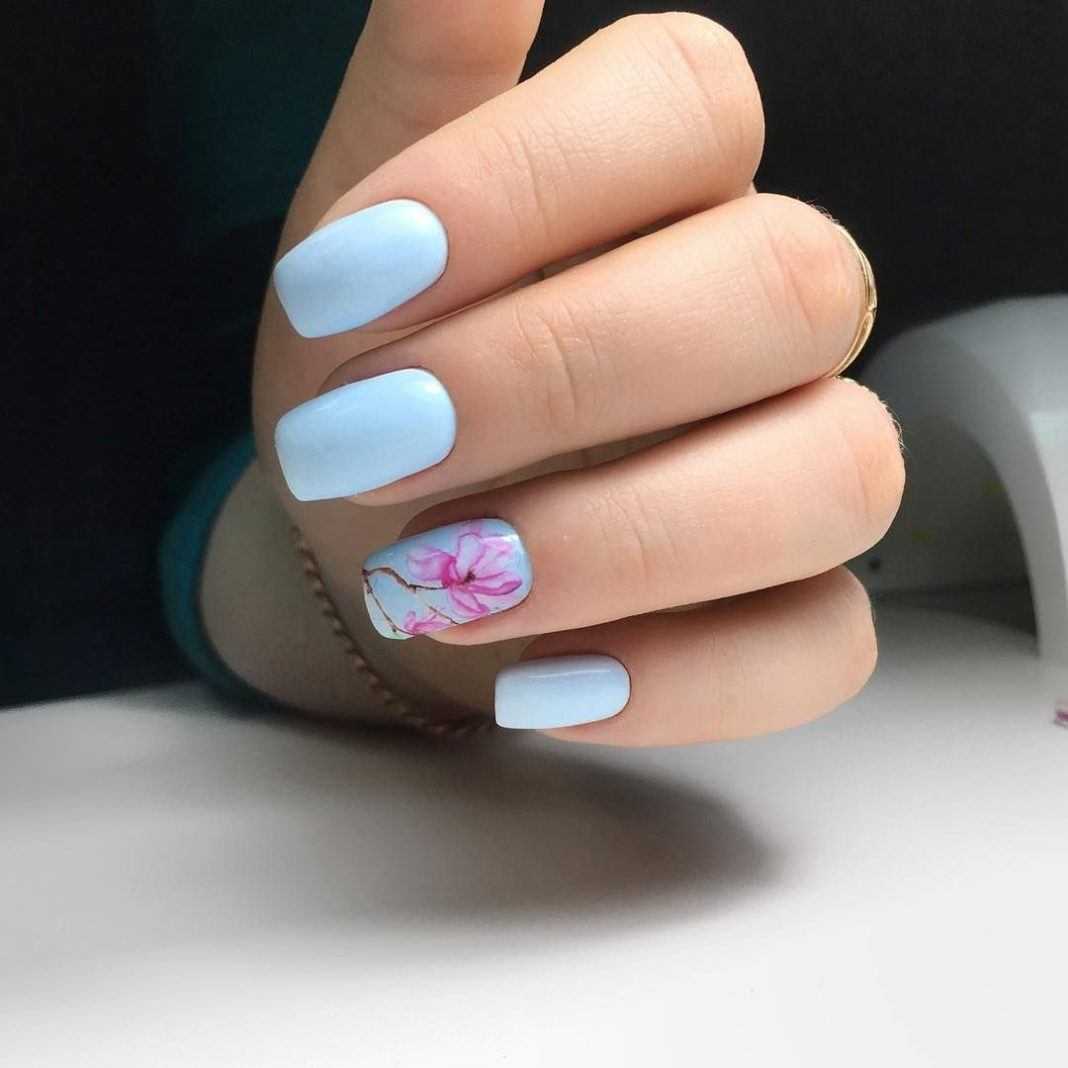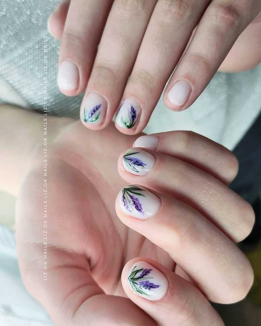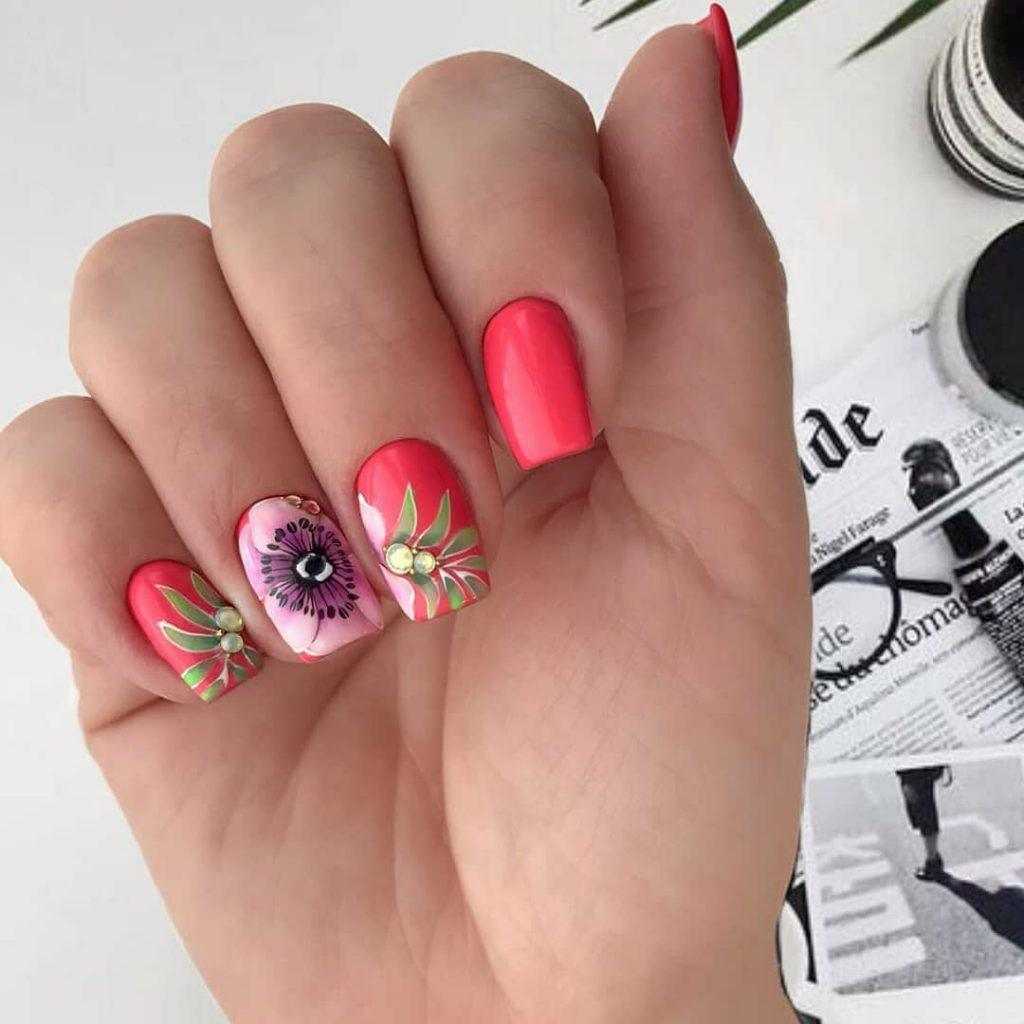 Короткая длина ногтей вовсе не преграда для создания романтичного цветочного маникюра. Опытный мастер без проблем реализует любую понравившуюся идеи. Ведь главное — придерживаться баланса. То есть рисунок должен быть соответствующего размера по отношению к размеру ногтевой пластины. Декоративный детали можно смело использовать, но только в небольшом количестве.