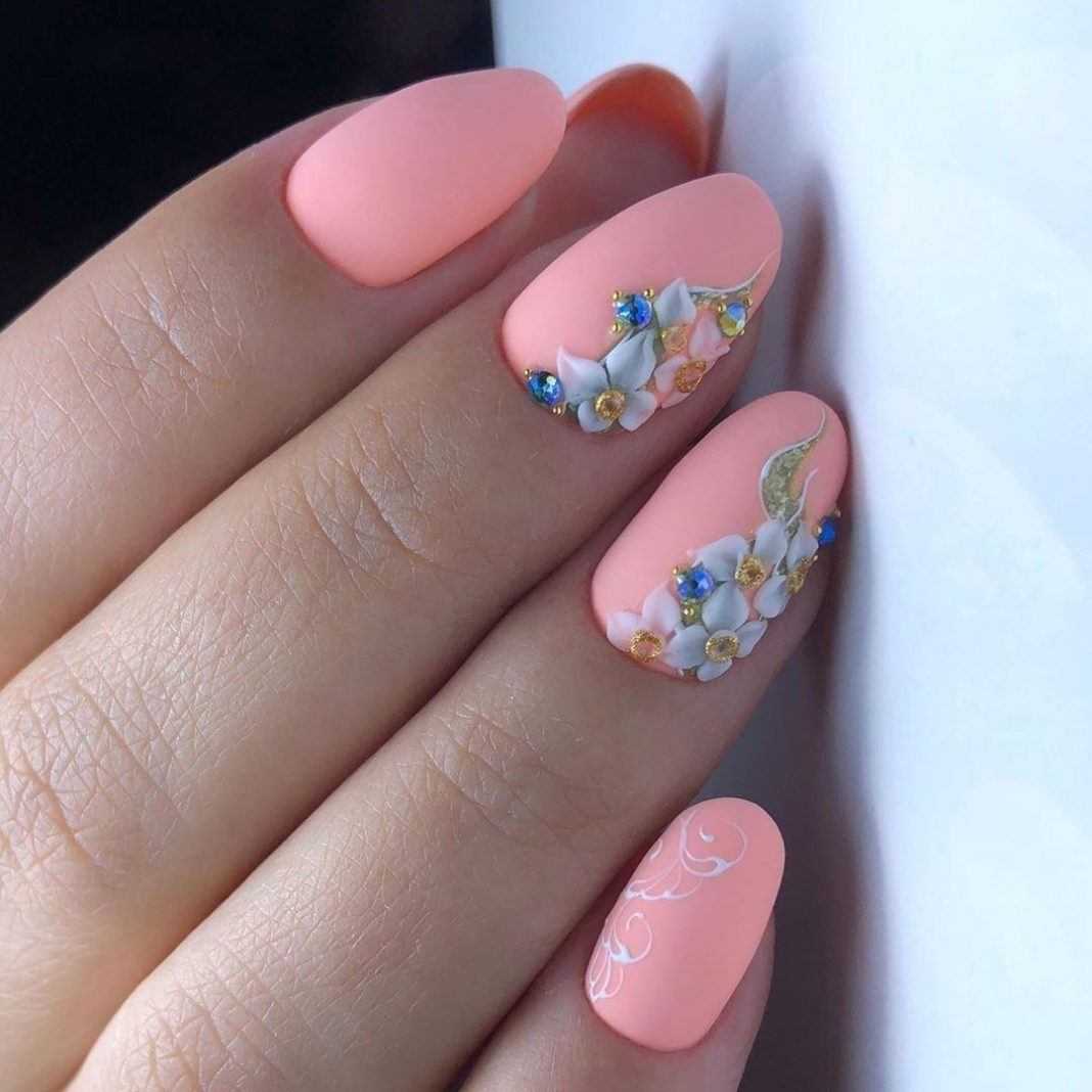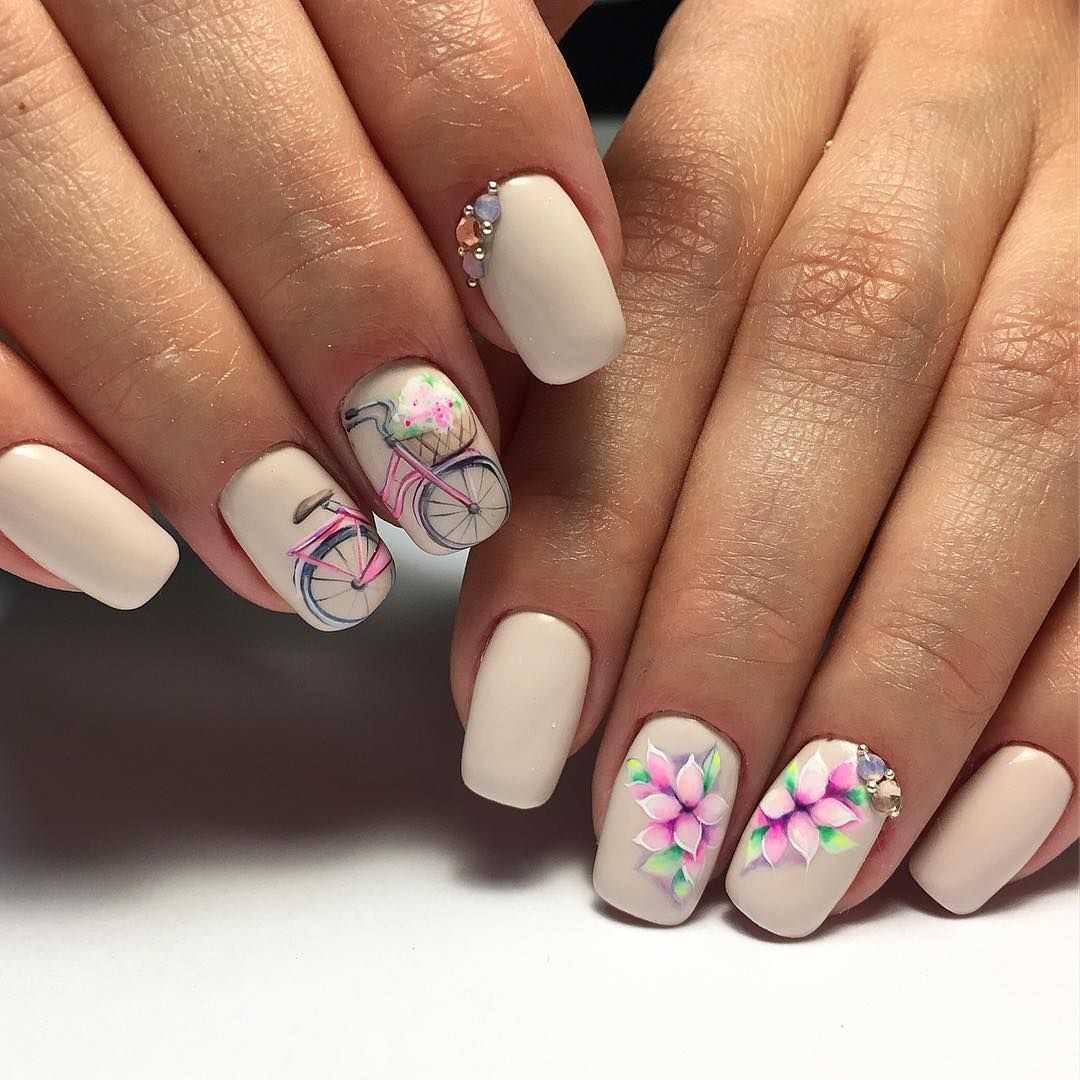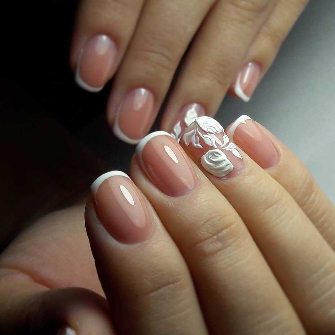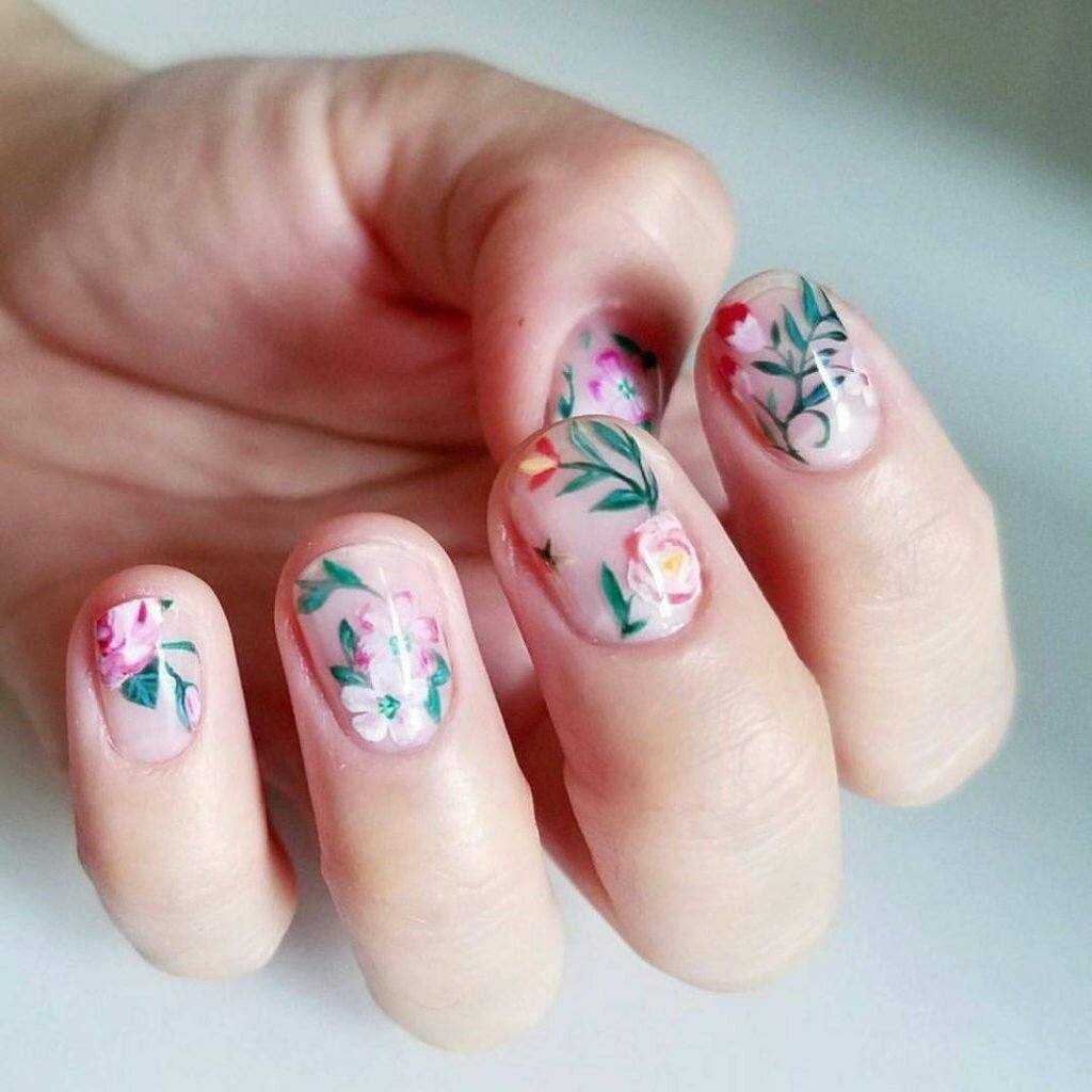 Короткая длина ногтей вовсе не преграда для создания романтичного цветочного маникюра. Опытный мастер без проблем реализует любую понравившуюся идеи. Ведь главное — придерживаться баланса. То есть рисунок должен быть соответствующего размера по отношению к размеру ногтевой пластины. Декоративный детали можно смело использовать, но только в небольшом количестве.