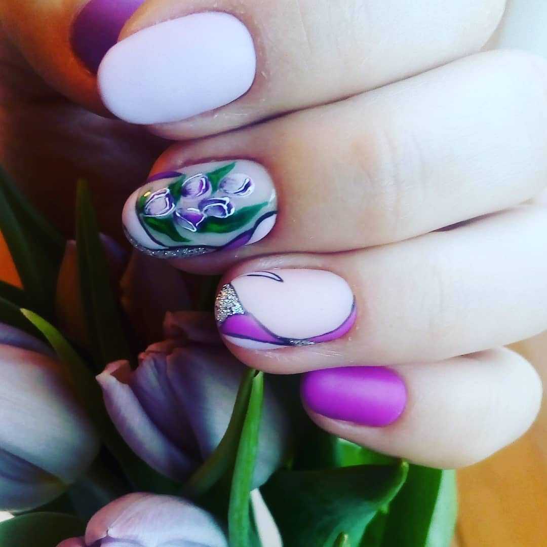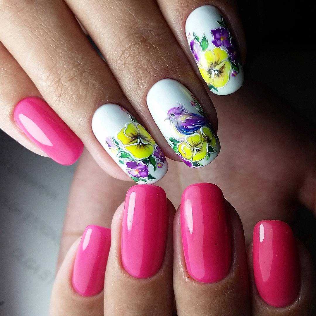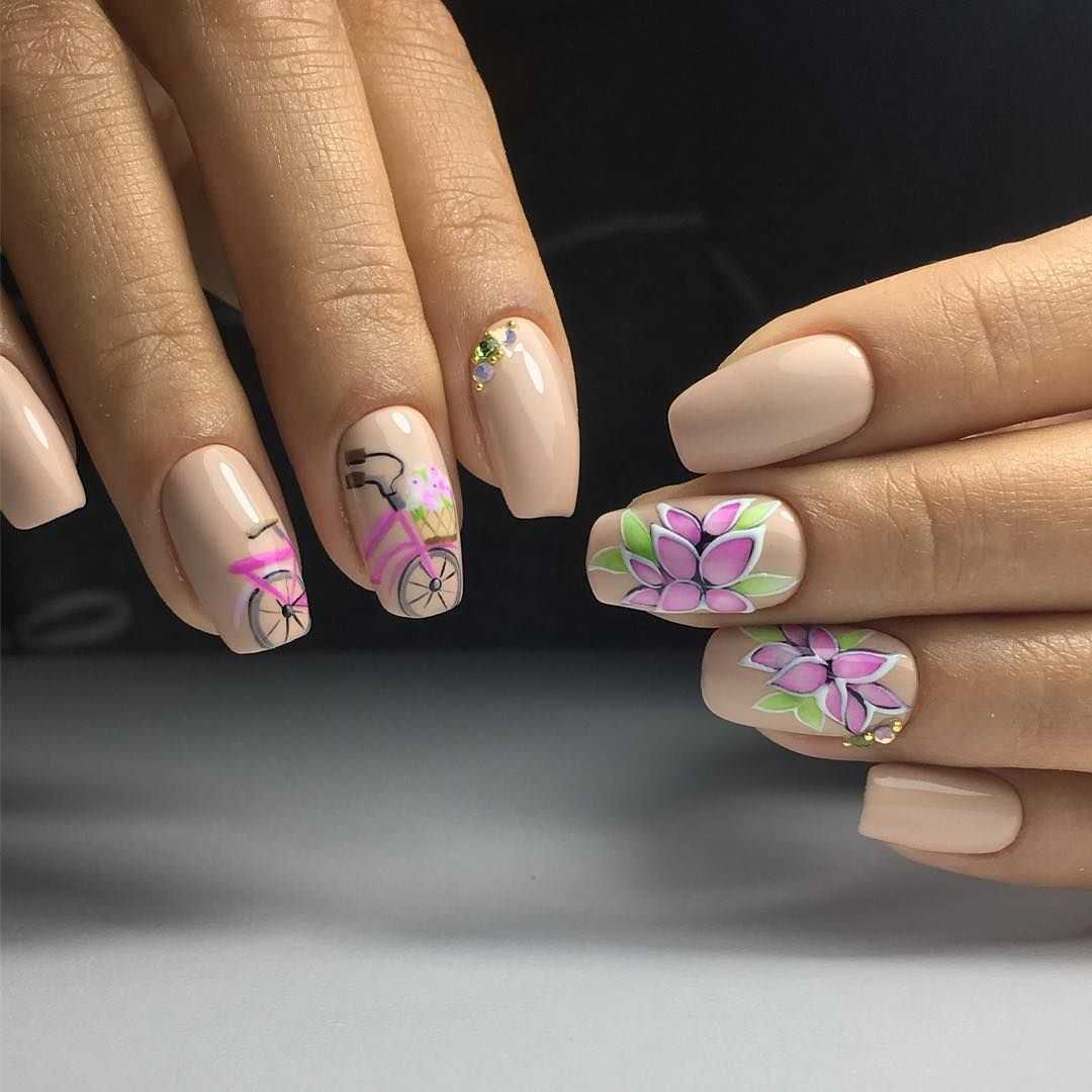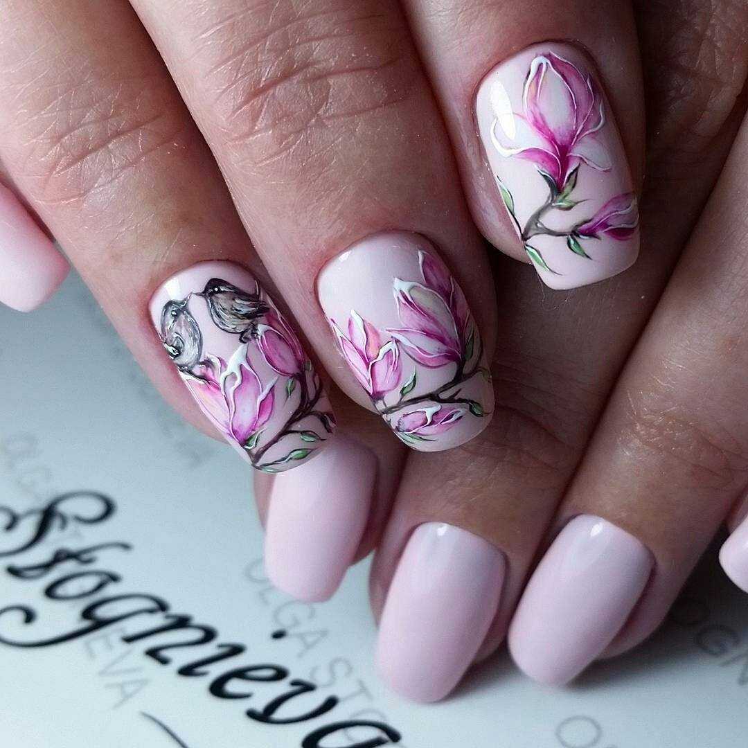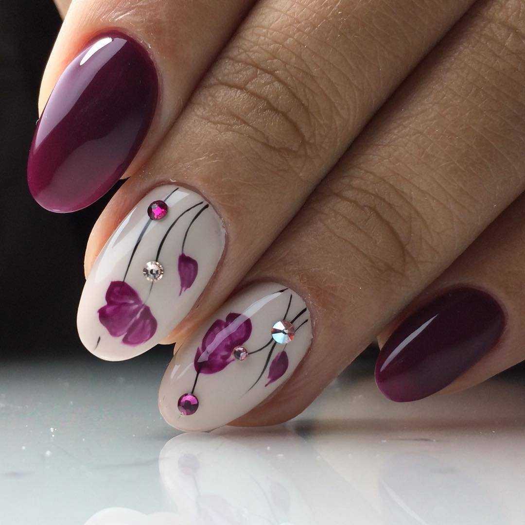 Короткая длина ногтей вовсе не преграда для создания романтичного цветочного маникюра. Опытный мастер без проблем реализует любую понравившуюся идеи. Ведь главное — придерживаться баланса. То есть рисунок должен быть соответствующего размера по отношению к размеру ногтевой пластины. Декоративный детали можно смело использовать, но только в небольшом количестве.
