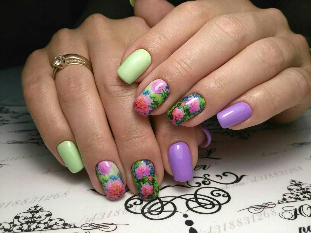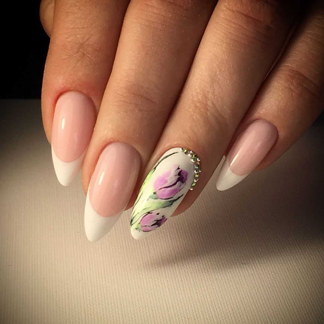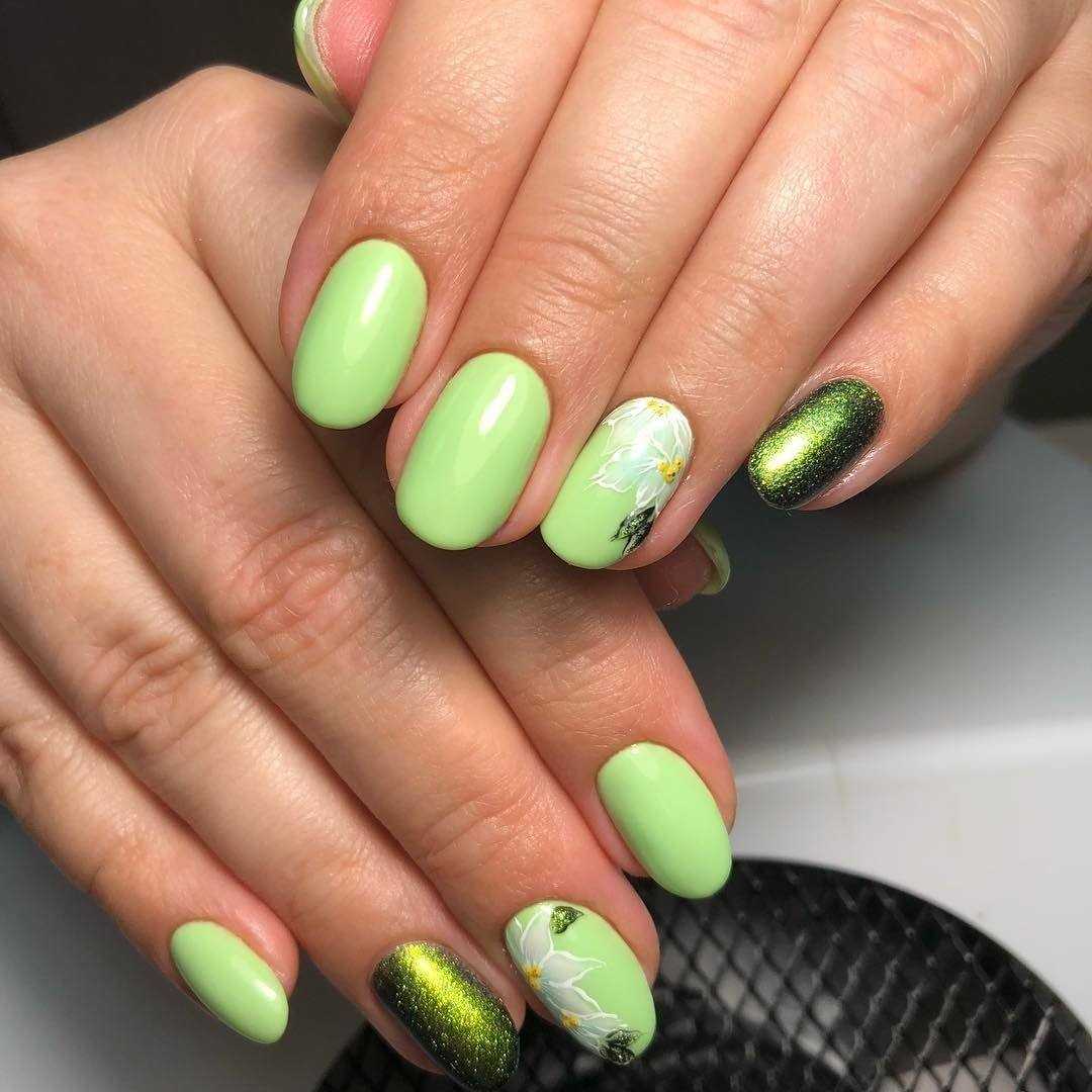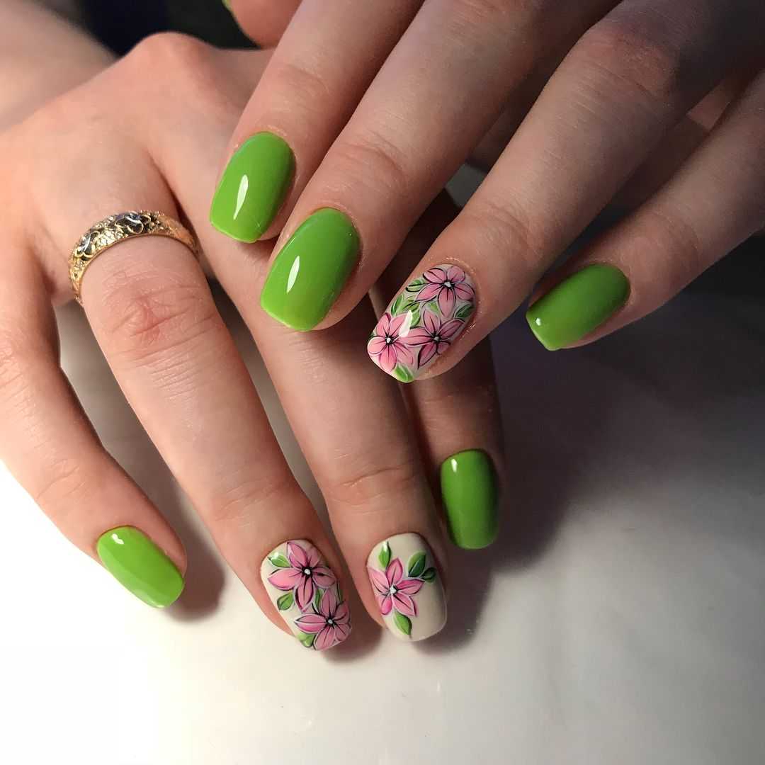 Короткая длина ногтей вовсе не преграда для создания романтичного цветочного маникюра. Опытный мастер без проблем реализует любую понравившуюся идеи. Ведь главное — придерживаться баланса. То есть рисунок должен быть соответствующего размера по отношению к размеру ногтевой пластины. Декоративный детали можно смело использовать, но только в небольшом количестве.