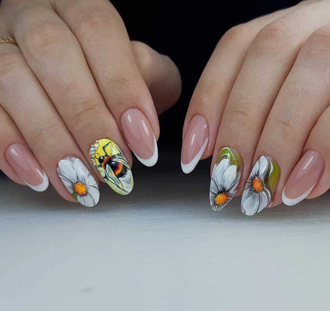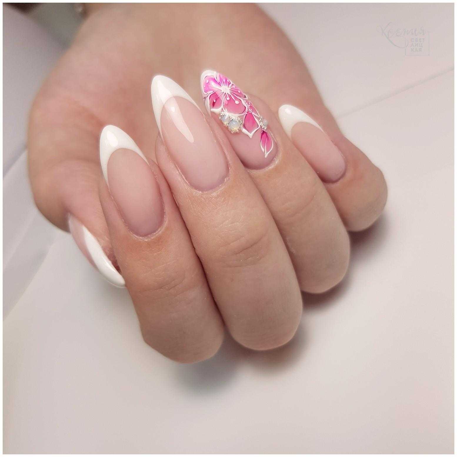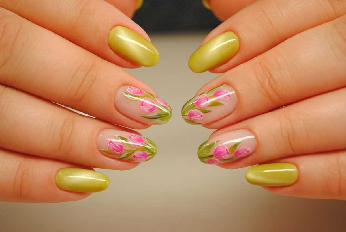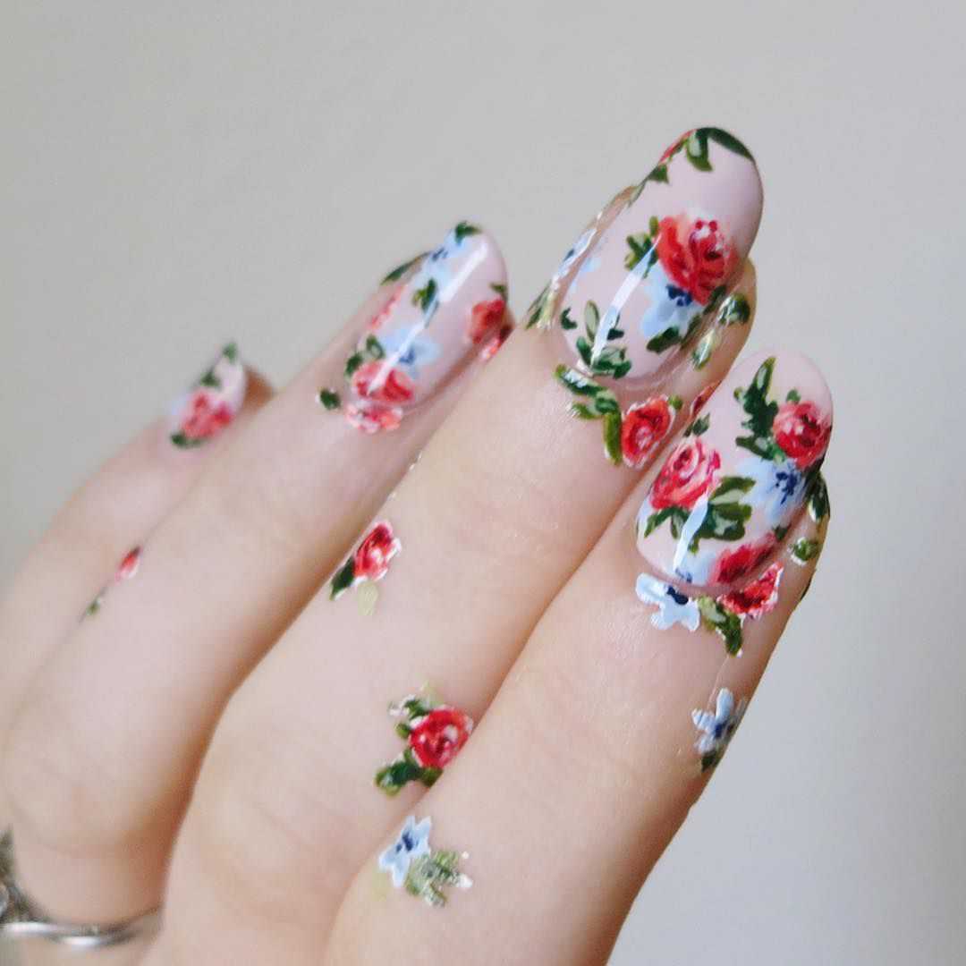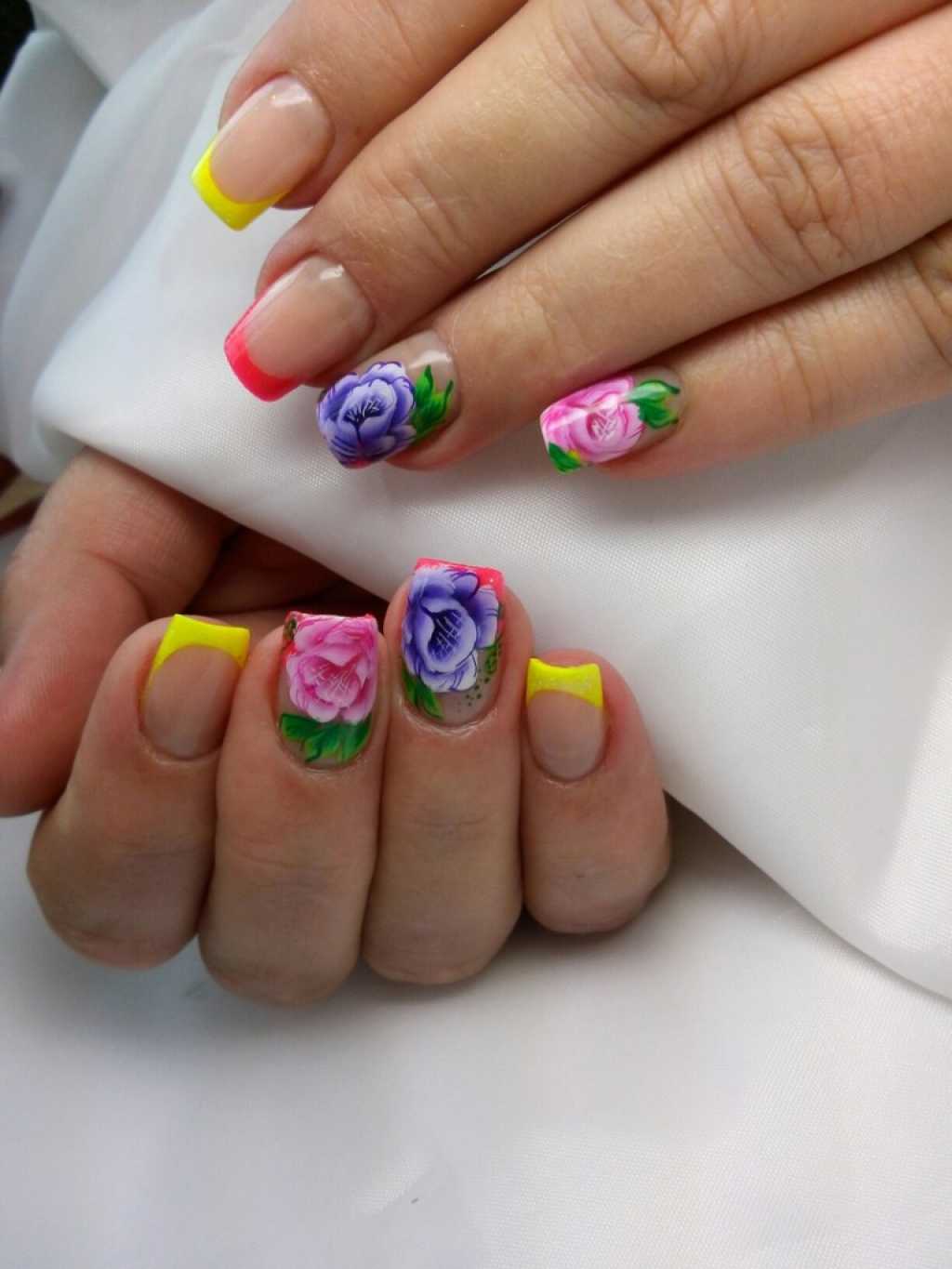 Короткая длина ногтей вовсе не преграда для создания романтичного цветочного маникюра. Опытный мастер без проблем реализует любую понравившуюся идеи. Ведь главное — придерживаться баланса. То есть рисунок должен быть соответствующего размера по отношению к размеру ногтевой пластины. Декоративный детали можно смело использовать, но только в небольшом количестве.