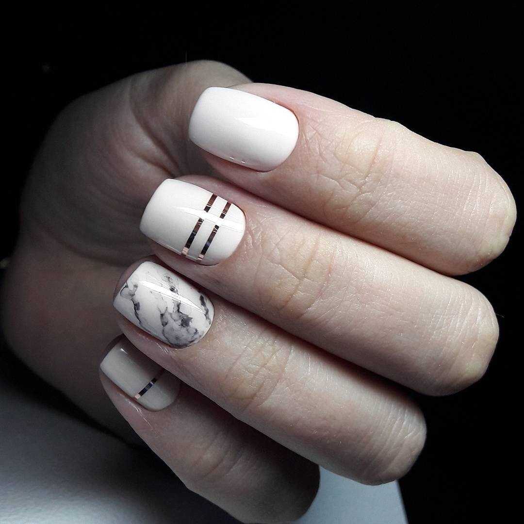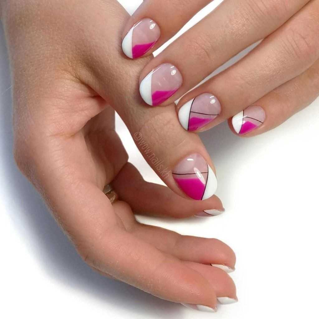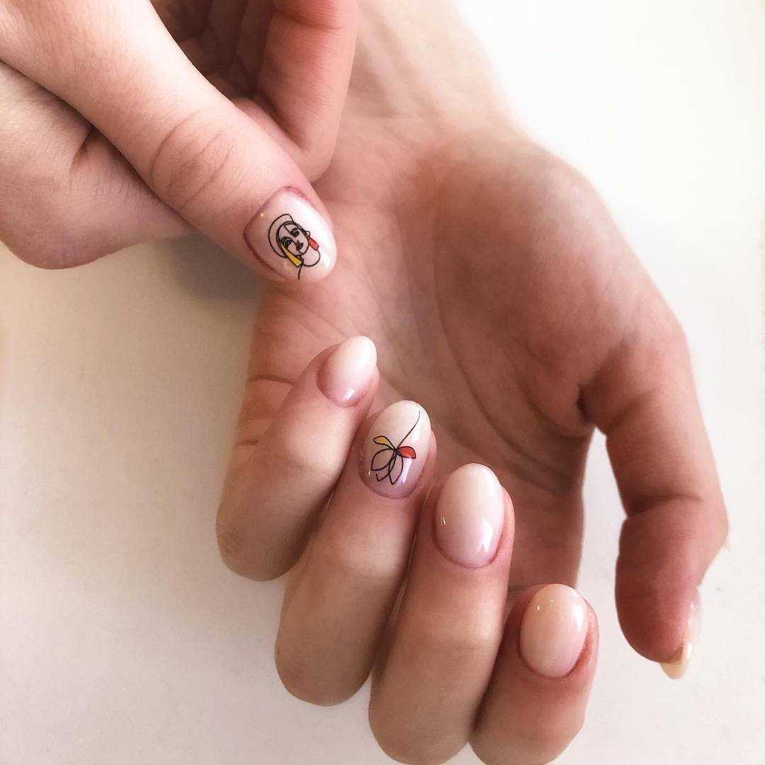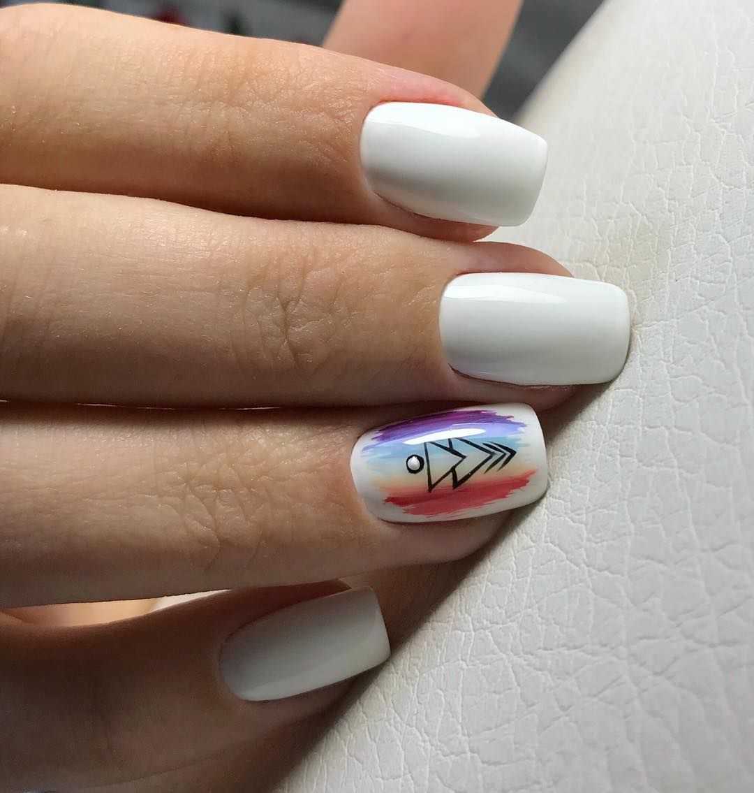 Каждая девушка знакома стилем минимализм, но в летнем сезоне предлагаем его немного разнообразить. Для основы лучше использовать нюдовые или полупрозрачные оттенки гель-лака. Дизайн должен быть непритязательным. То есть тонкие прямые или изогнутые линии, пунктир, точки или стрелки. В результате вы получите универсальный, практичный, но в то же время необычный маникюр.
