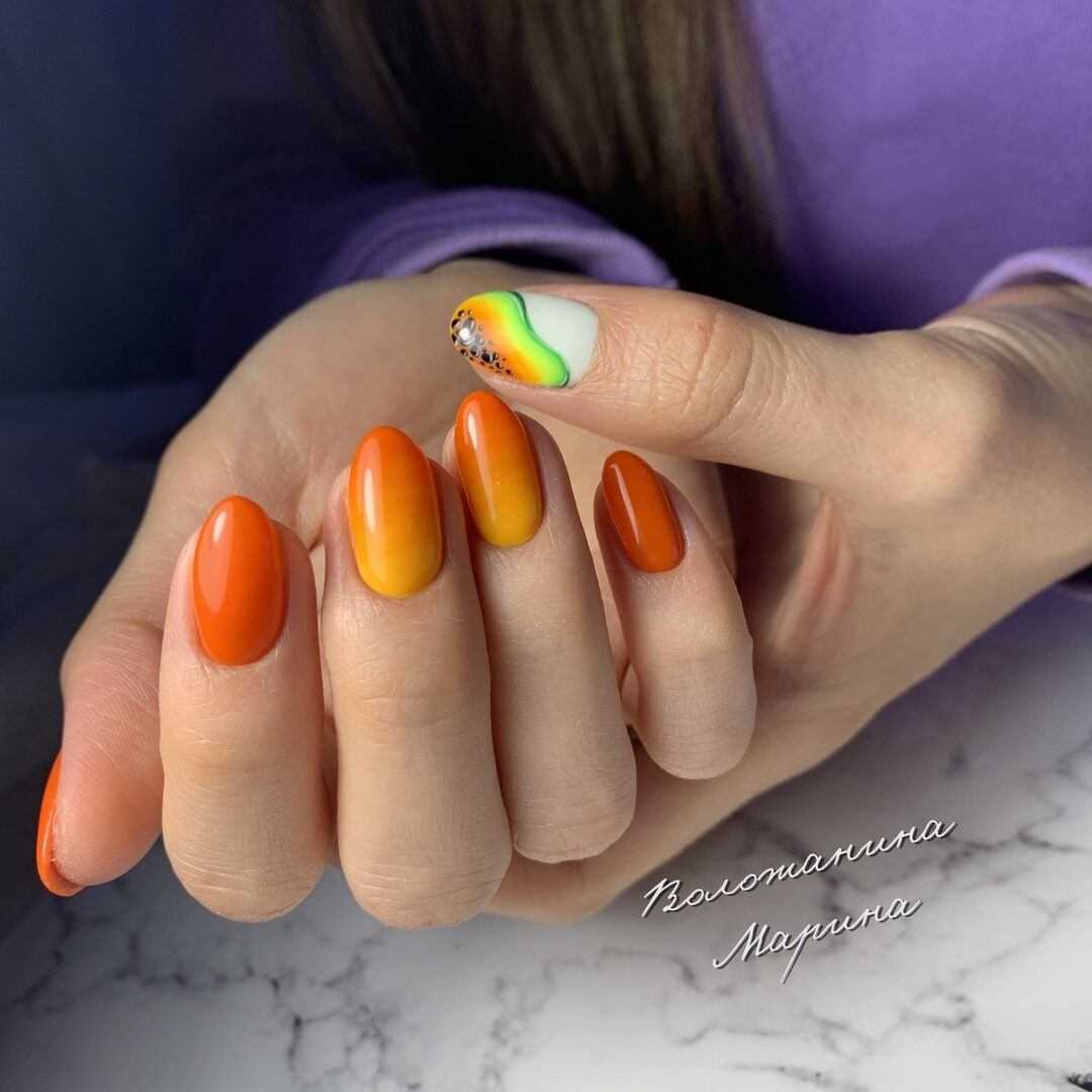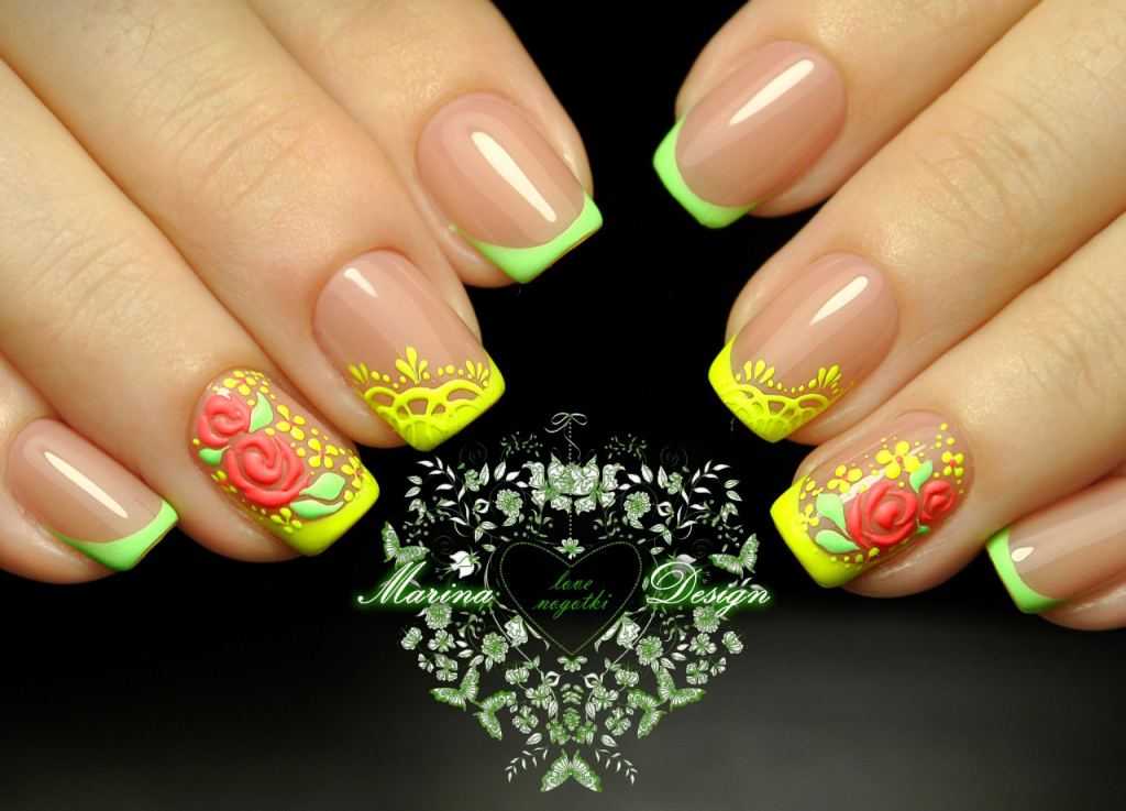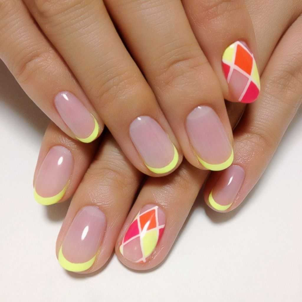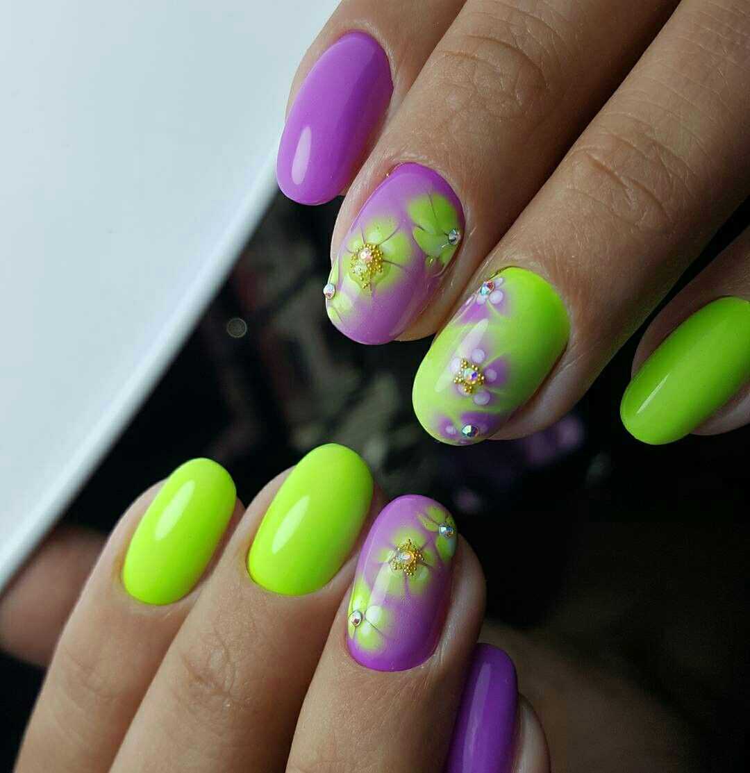 Лето можно уверенно назвать самым ярким временем года, когда каждая модница может уверенно экспериментировать с выбором цветового исполнения составляющих деталей своего образа. Яркие неоновые акценты на ноготках в этом случае станут идеальным решением. Сущность подобного предложения заключается в нанесении на покрытие нейтрального цвета ярких неоновых узоров в виде мазков, клякс и потёков. Рисунки могут выполняться в одном цвете или демонстрировать впечатляющую растяжку оттенков. Любой из вариантов не останется незамеченным и позволит ноготкам выглядеть по-летнему свежо.