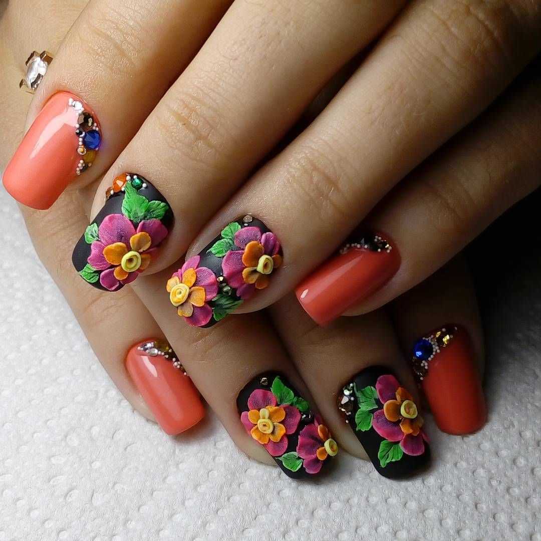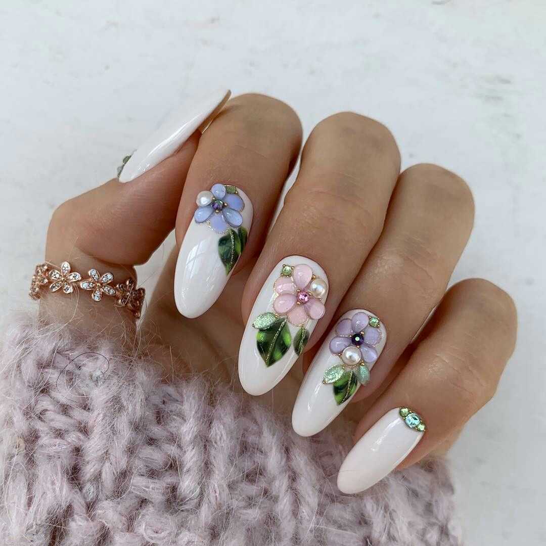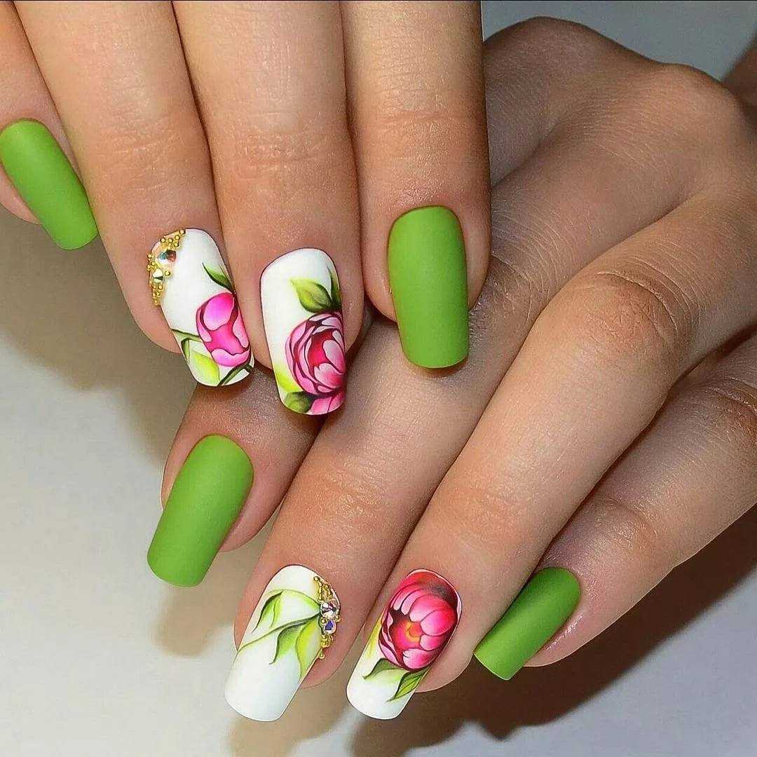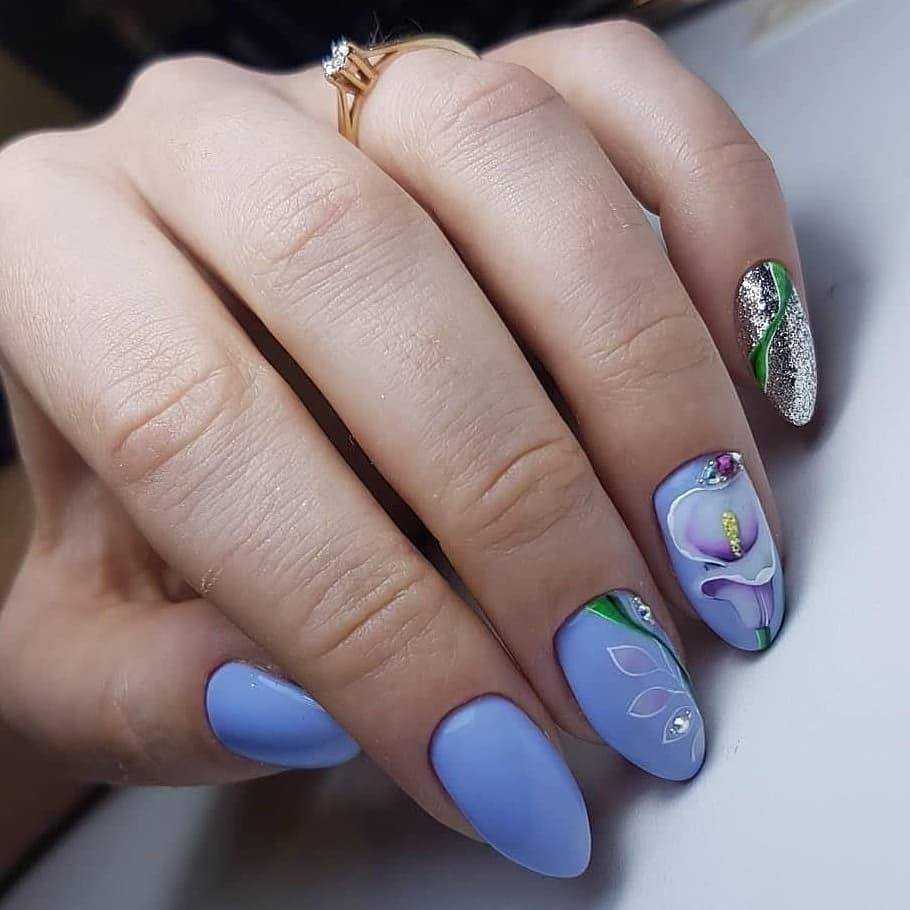 Как весной, так и летом одним из наиболее актуальных видов дизайна считается цветочный рисунок. В тренде 2020 года не только маленькие бутоны и веточки, но и крупные, объемные цветы. Каждый из них создает совершенно разный эффект на ноготках. Тем более, многое зависит от основного покрытия. При желании всегда можно добавить небольшое количество страз или блесток, чтобы подчеркнуть красоту дизайна.