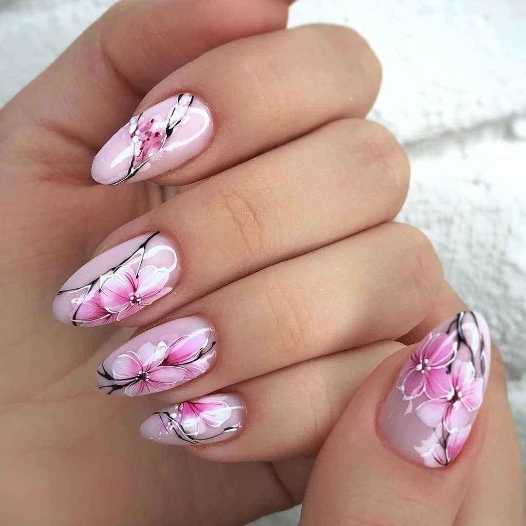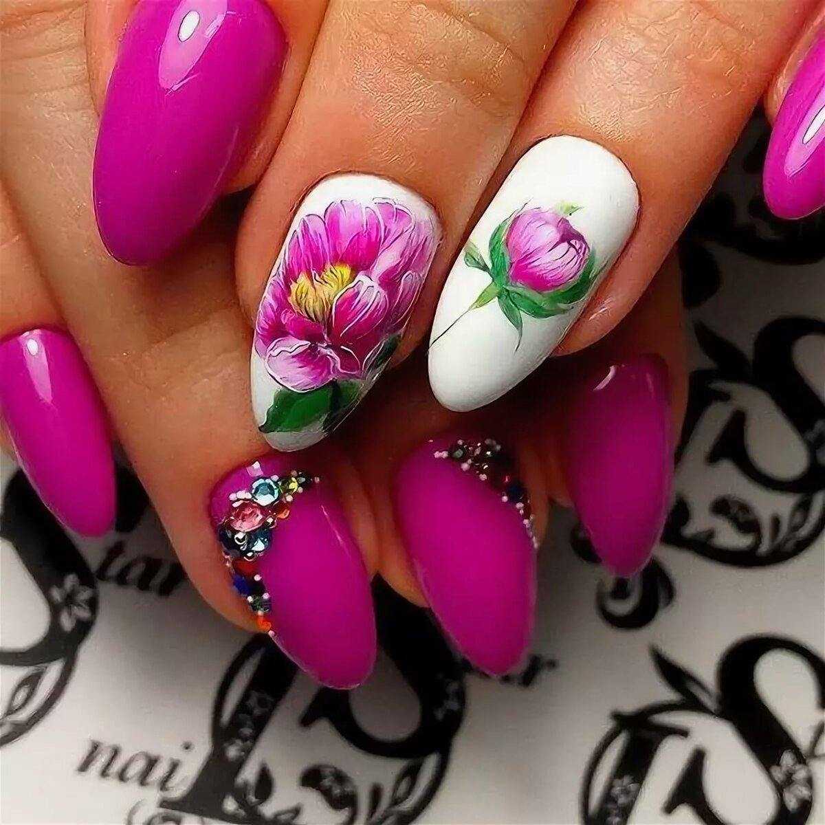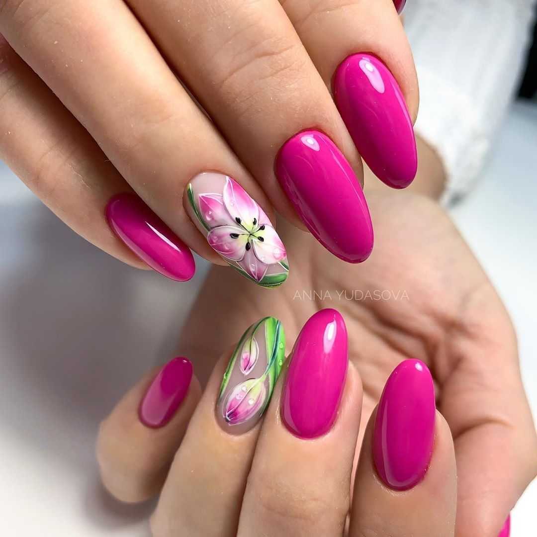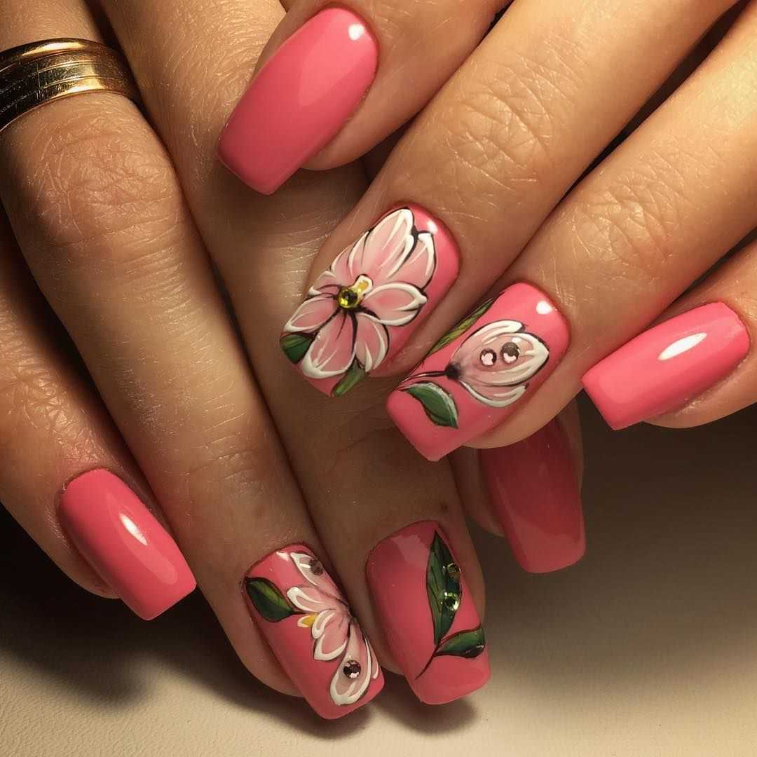 Как весной, так и летом одним из наиболее актуальных видов дизайна считается цветочный рисунок. В тренде 2020 года не только маленькие бутоны и веточки, но и крупные, объемные цветы. Каждый из них создает совершенно разный эффект на ноготках. Тем более, многое зависит от основного покрытия. При желании всегда можно добавить небольшое количество страз или блесток, чтобы подчеркнуть красоту дизайна.