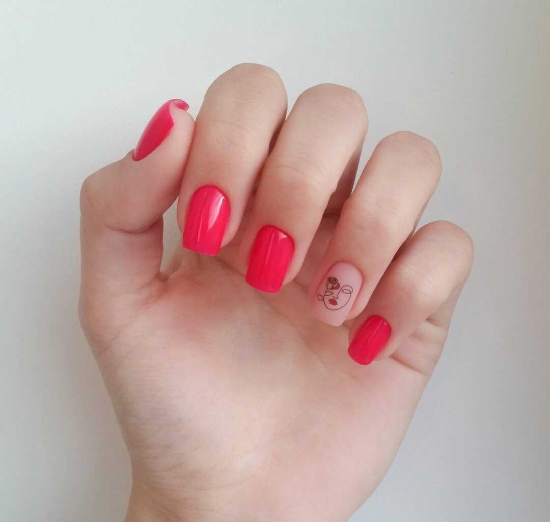 Но как сделать так, чтобы ваш монохромных дизайн привлекал внимание и выдавал в вас практичную и стильную натуру? Достаточно потрудиться над одним пальчиком, украсить его интересными нейл-артами или просто окрасить в отличный от всего маникюра цвет