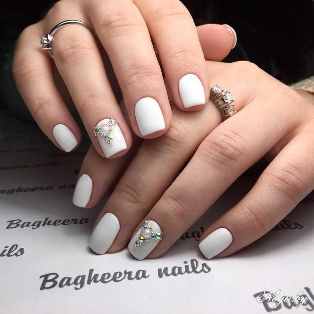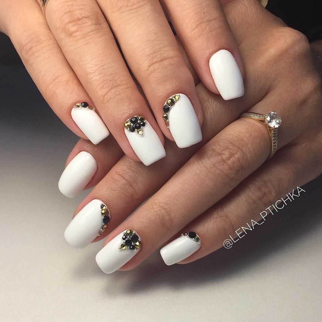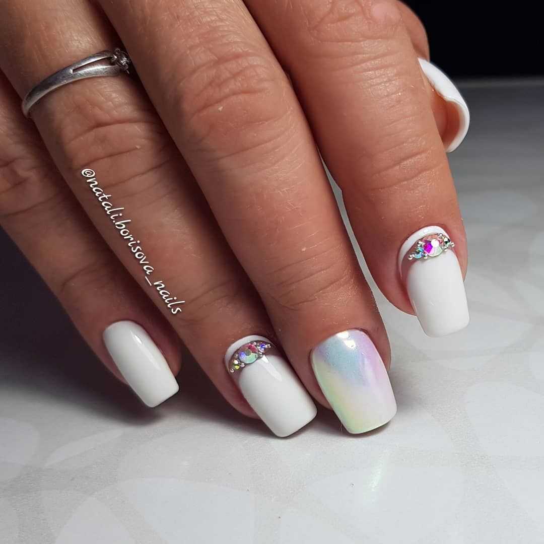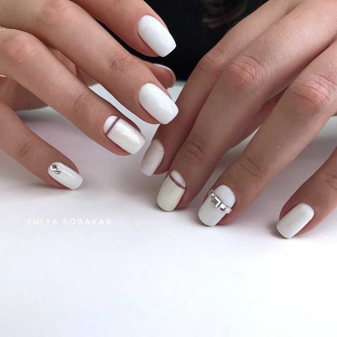 Можете убедиться, что маникюр в белом цвете может выглядеть по-разному. Большую роль играет не только выбранный дизайн, но и дополнительные элементы нейл-арта
