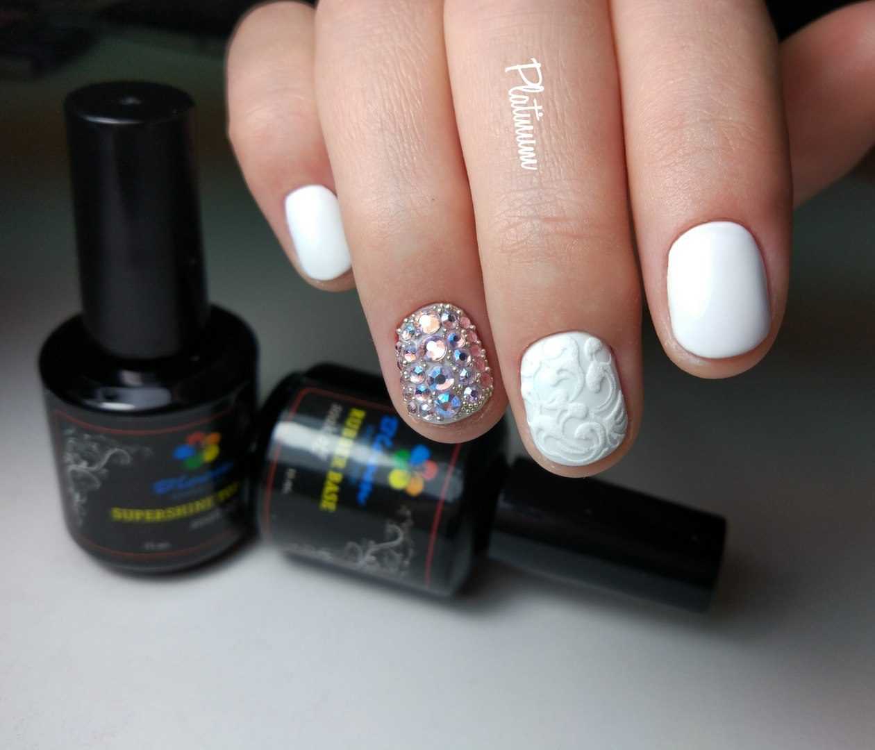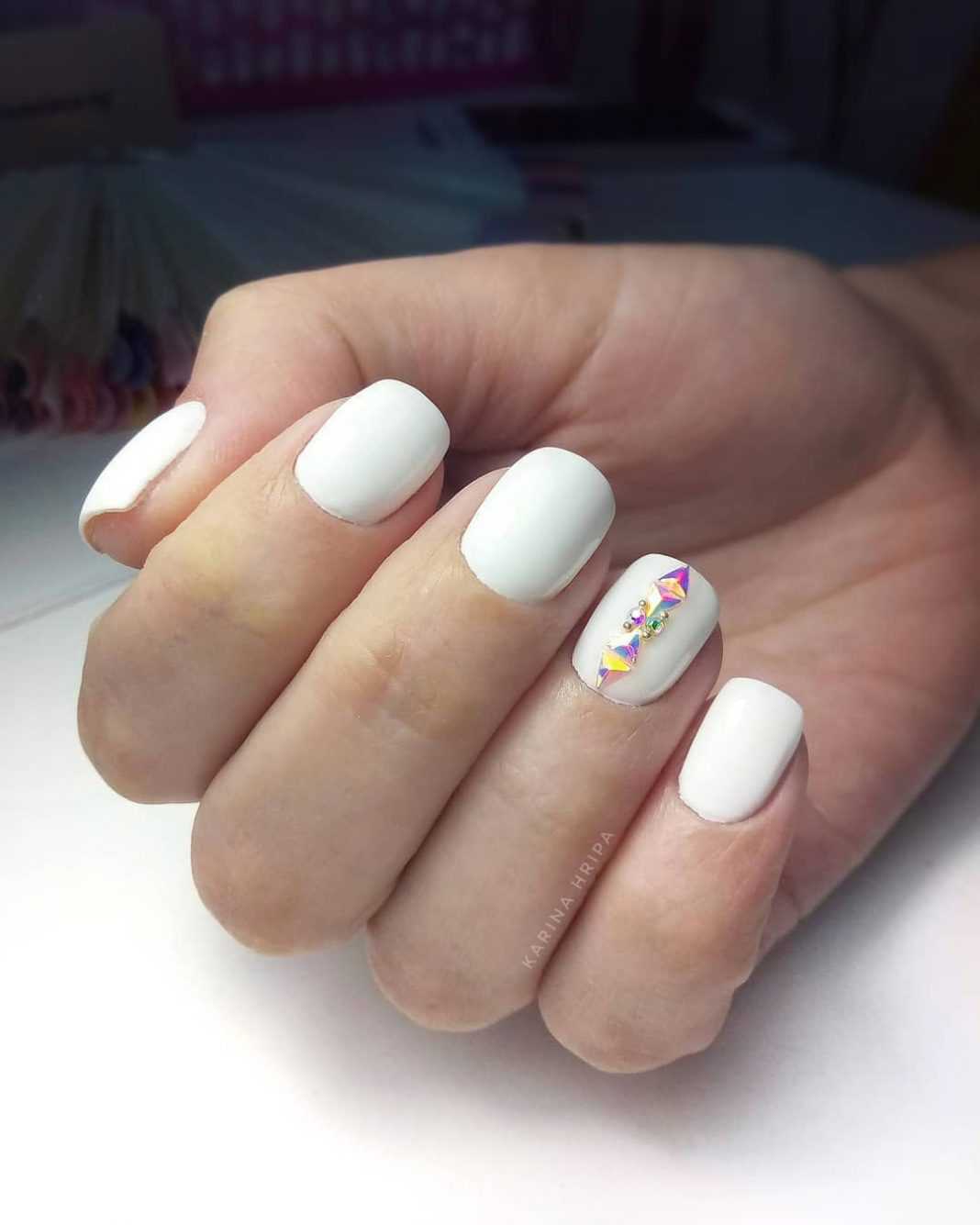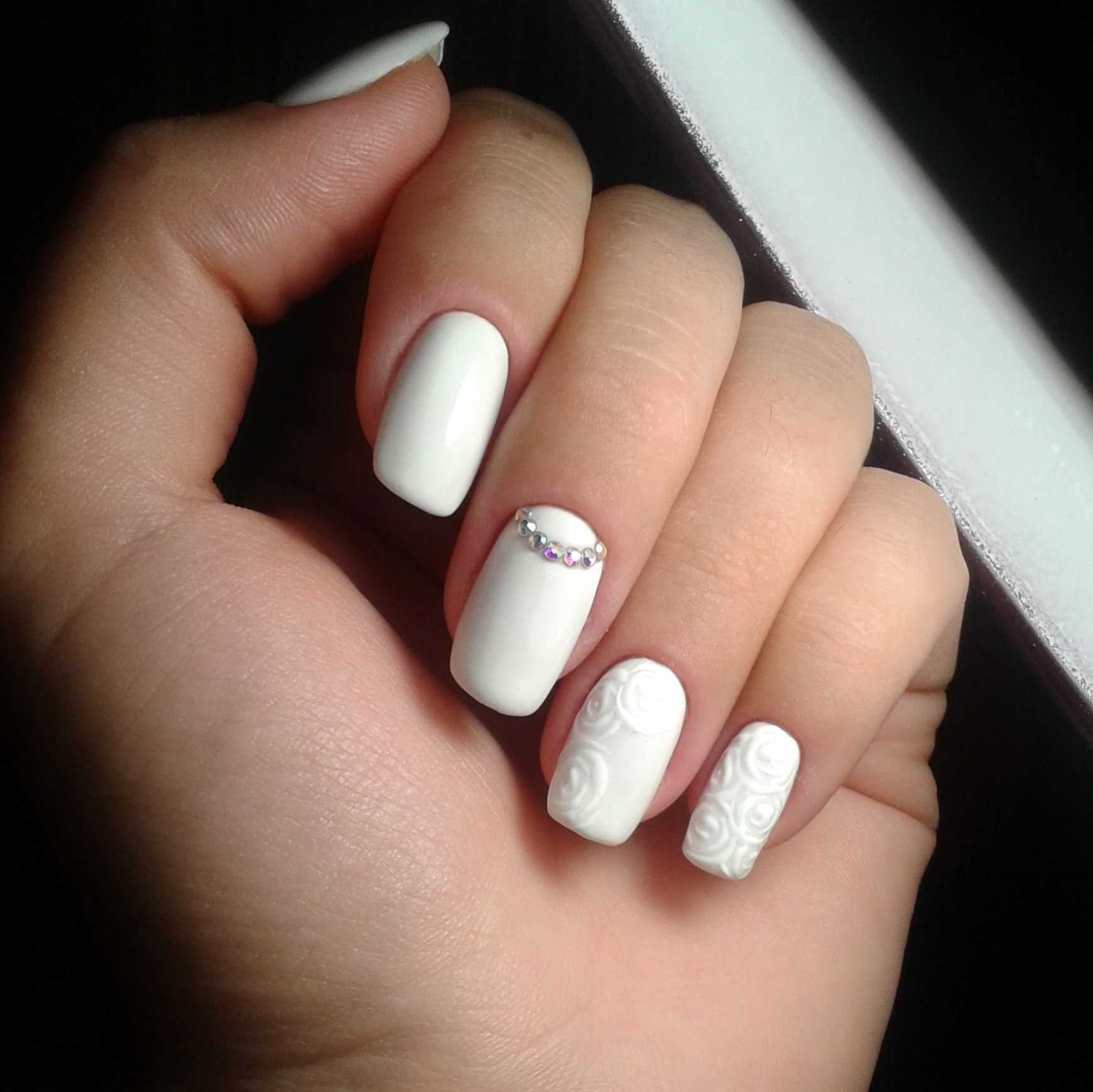 Можете убедиться, что маникюр в белом цвете может выглядеть по-разному. Большую роль играет не только выбранный дизайн, но и дополнительные элементы нейл-арта