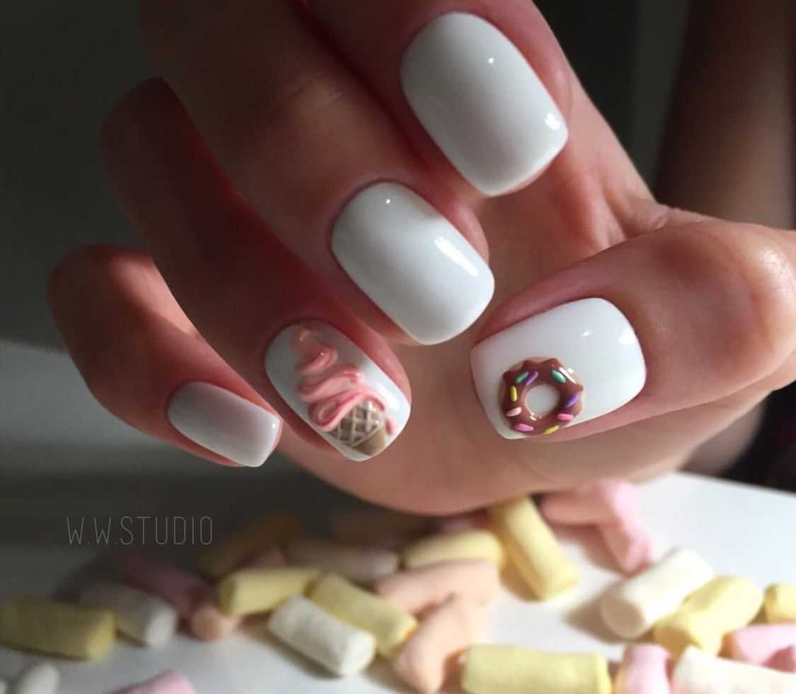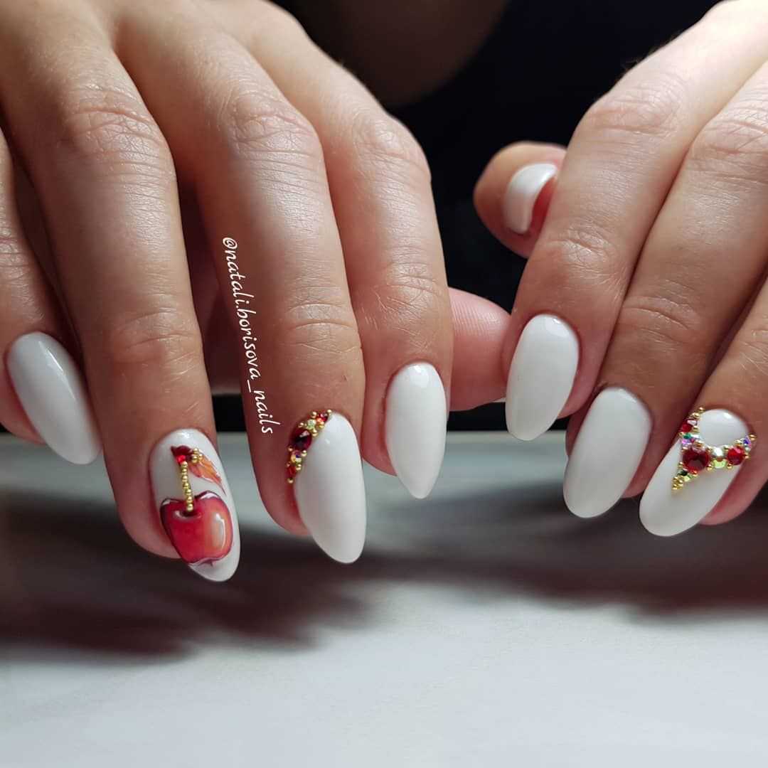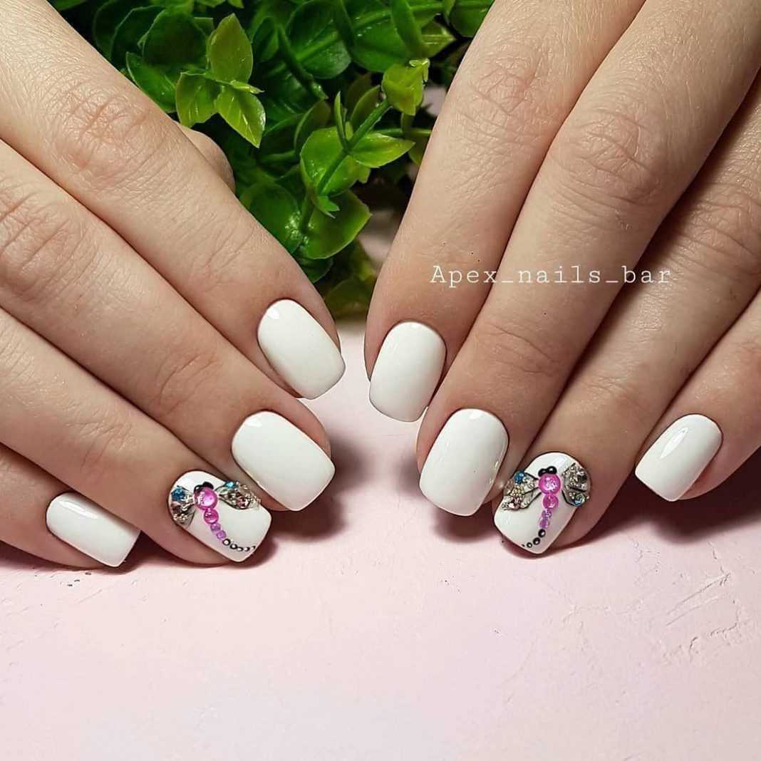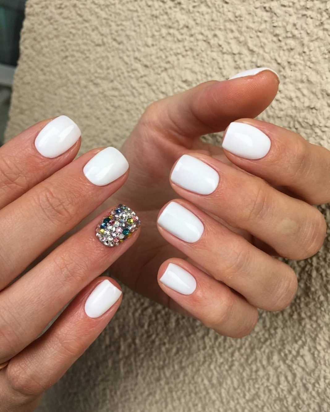 Можете убедиться, что маникюр в белом цвете может выглядеть по-разному. Большую роль играет не только выбранный дизайн, но и дополнительные элементы нейл-арта