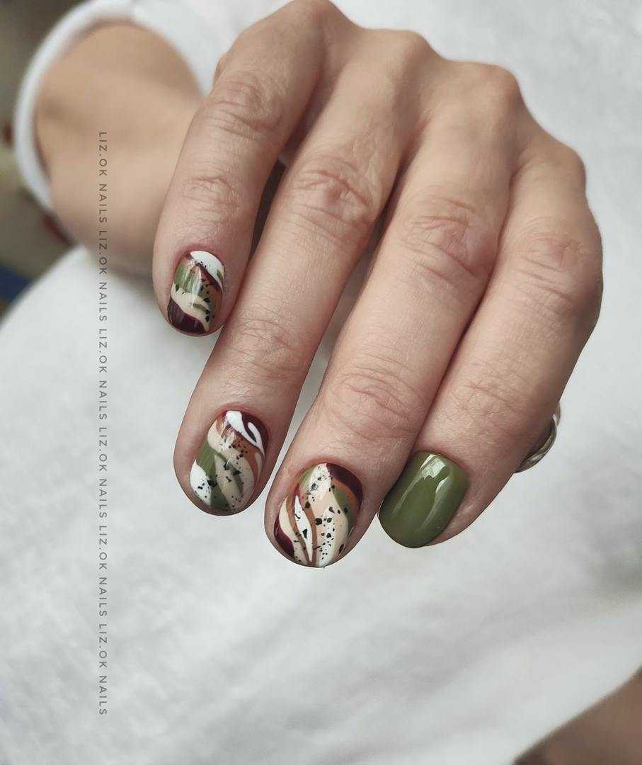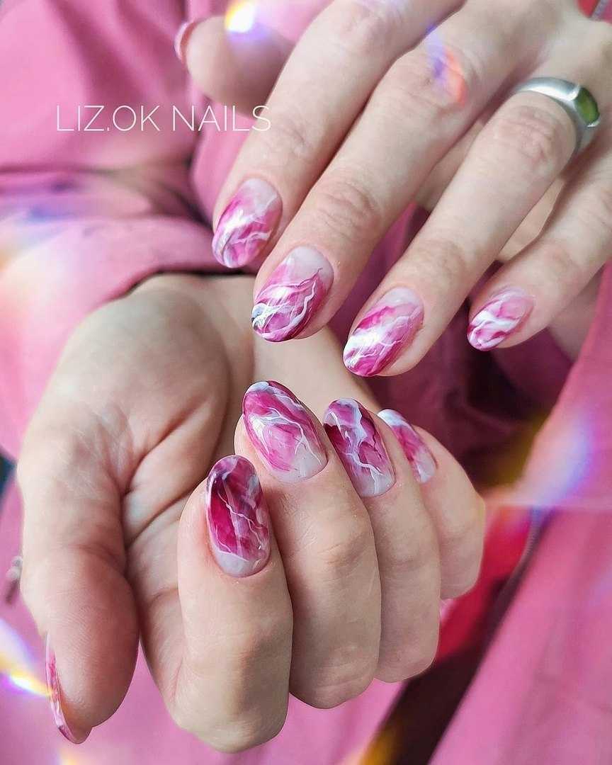 Любительницам необычных решений однозначно стоит присмотреться к пенному дизайну. Это уникальное оформление, которое делают всего лишь с простой мыльной пеной. Кстати несмотря на это, его нередко сочетают с втиркой, абстракцией и стразами. Такие детали делают его еще более ярким и заметным. Неоспоримым преимуществом пенного маникюра является возможность нанесения дизайна сразу на все ноготки.