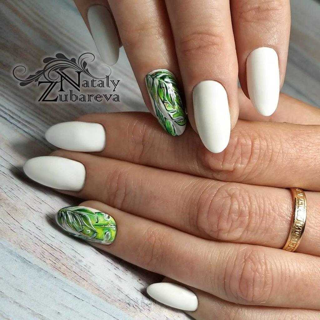 Особое внимание заслуживает белый маникюр на длинных ноготках с матовым покрытием. Стильным летним решением 2020 стало выполнение белого маникюра с неоновыми рисунками или абстрактными изображениями