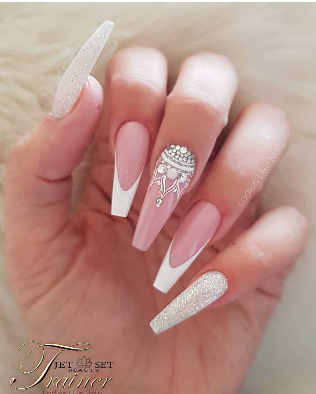 Несмотря на тренд натуральности, у длинных ногтей есть ряд своих поклонниц. На такой ногтевой пластине можно смело применять любой дизайн и украшать его различным декором. Стоит попробовать применить сразу несколько техник в одном дизайне