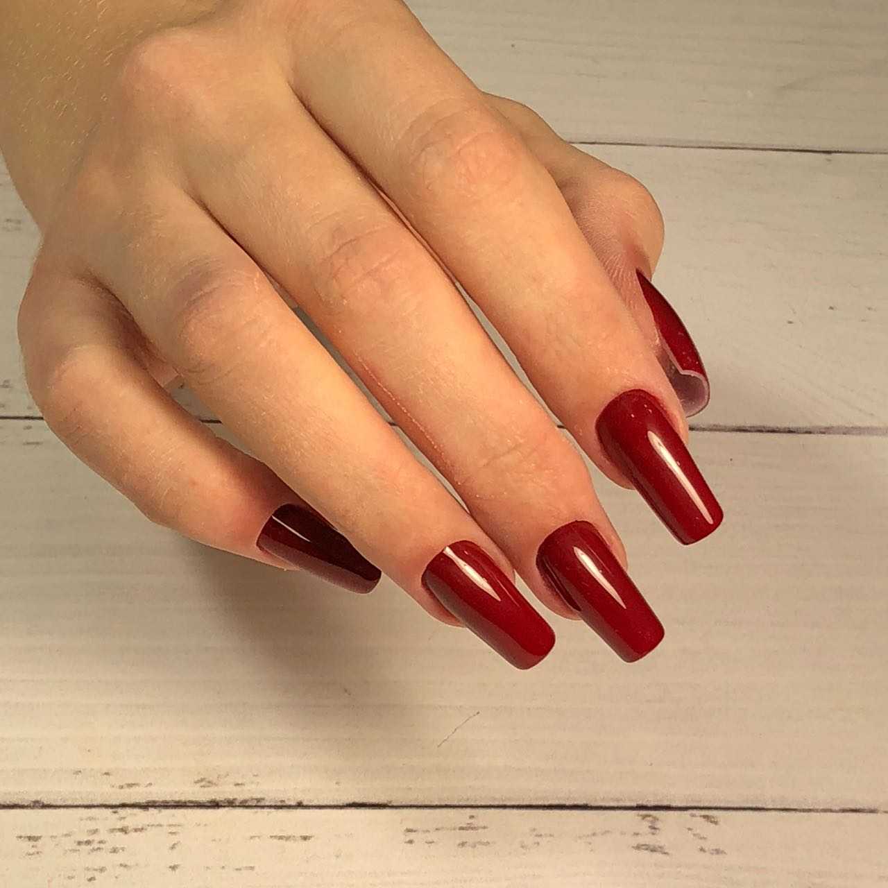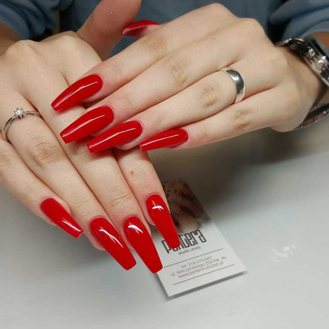 Самое простое и универсальное решение для длинных ногтей – это однотонное покрытие. Оно смотрится уместно на любой форме, даже самой необычной